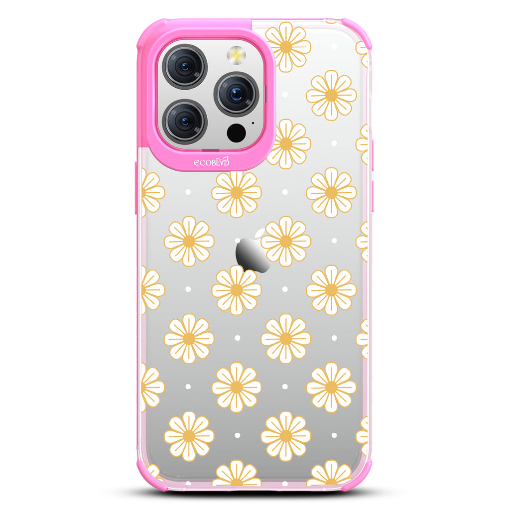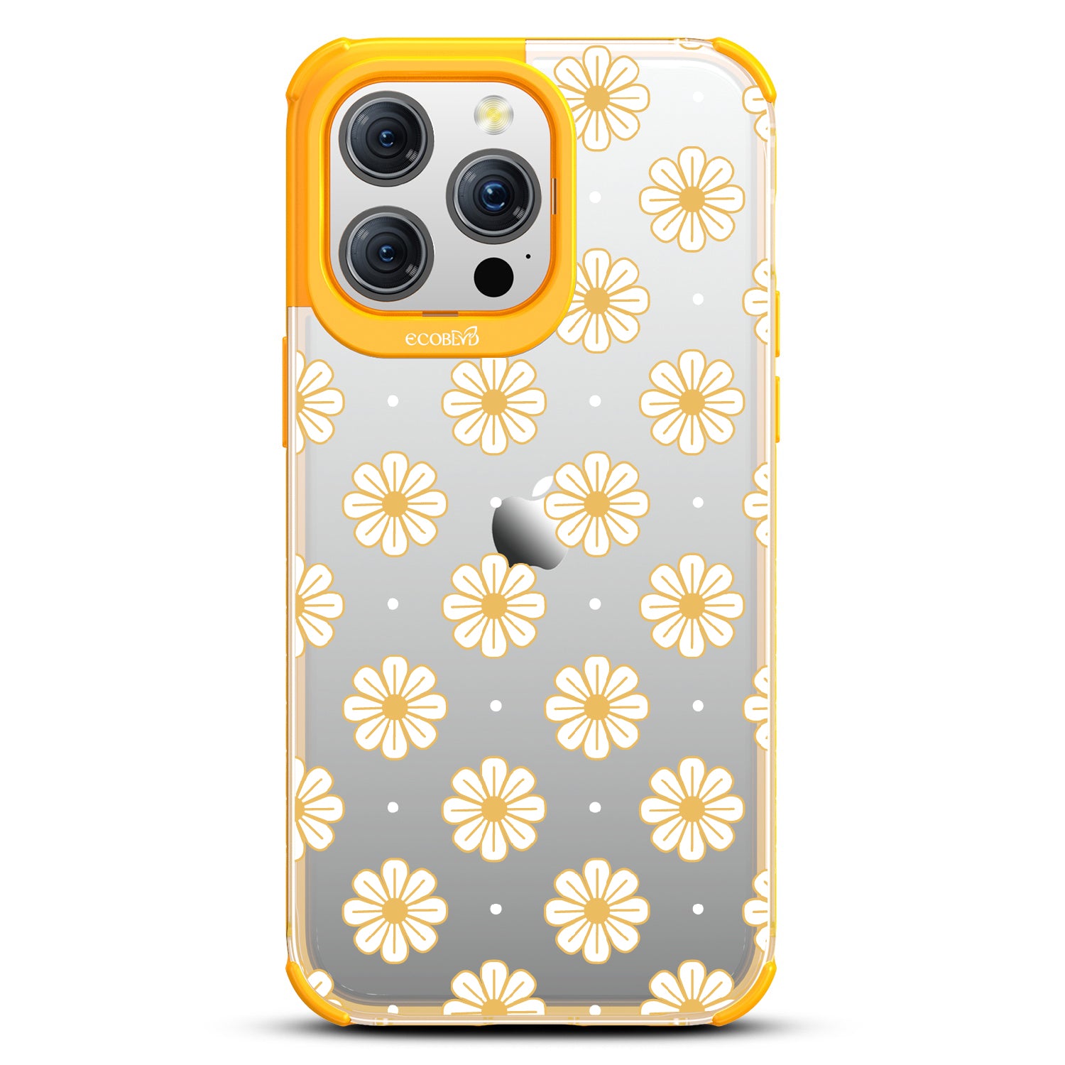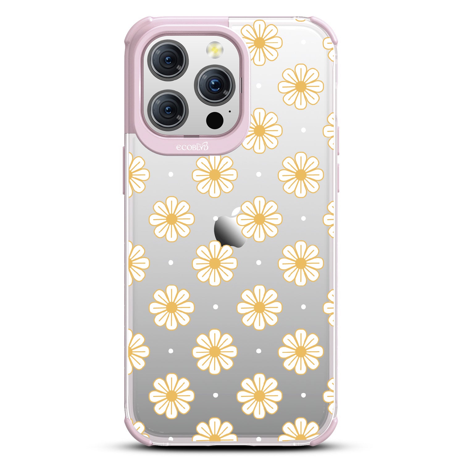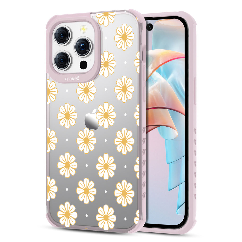 Add some fresh floral style to keep your phone's beauty blooming with the yellow Daisy design on our Laguna clear iPhone 15 Pro Max case. Available in five vibrant colors: Midnight Black, Cascade Blue, Pastel Lilac, Illuminating Yellow, and Wildflower Pink.