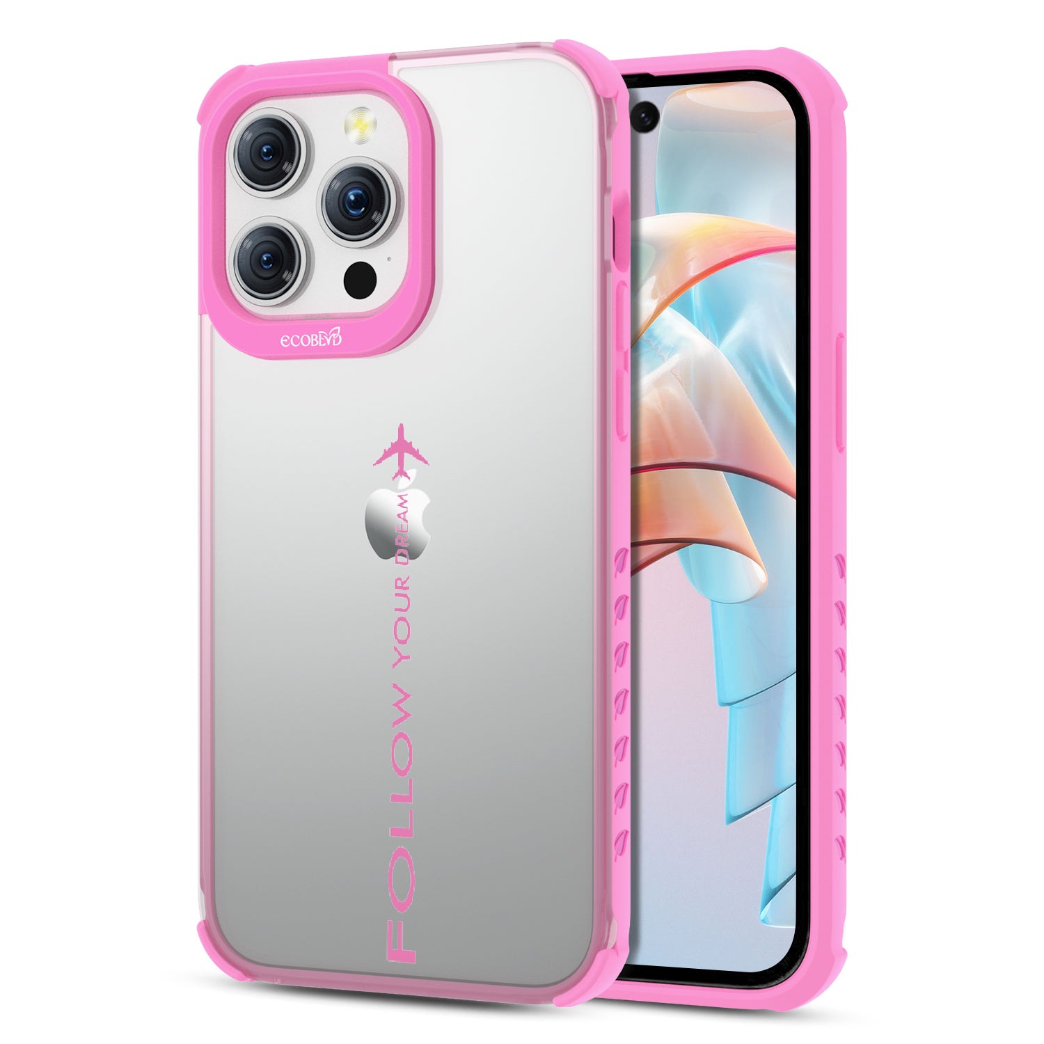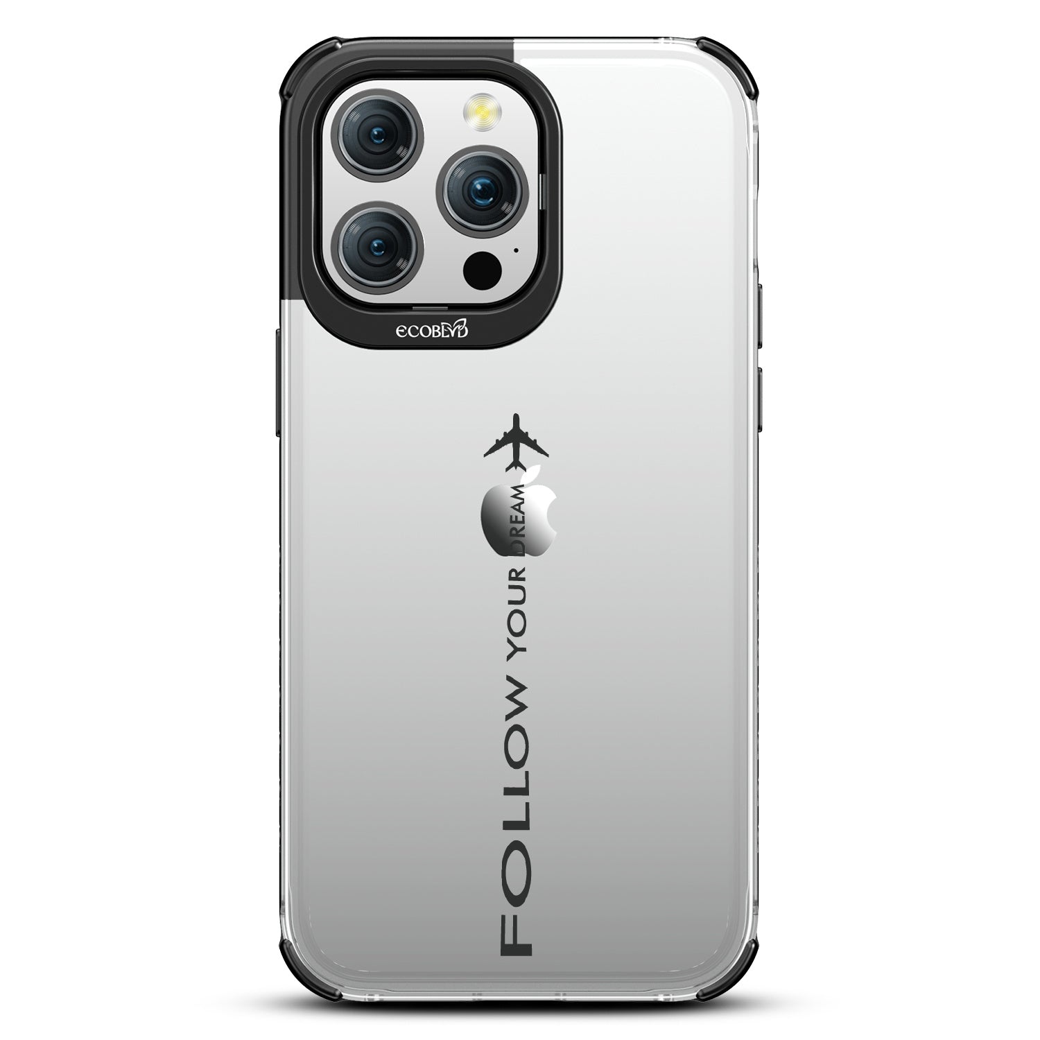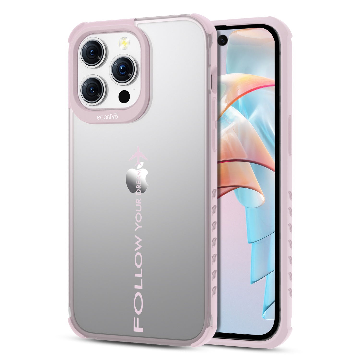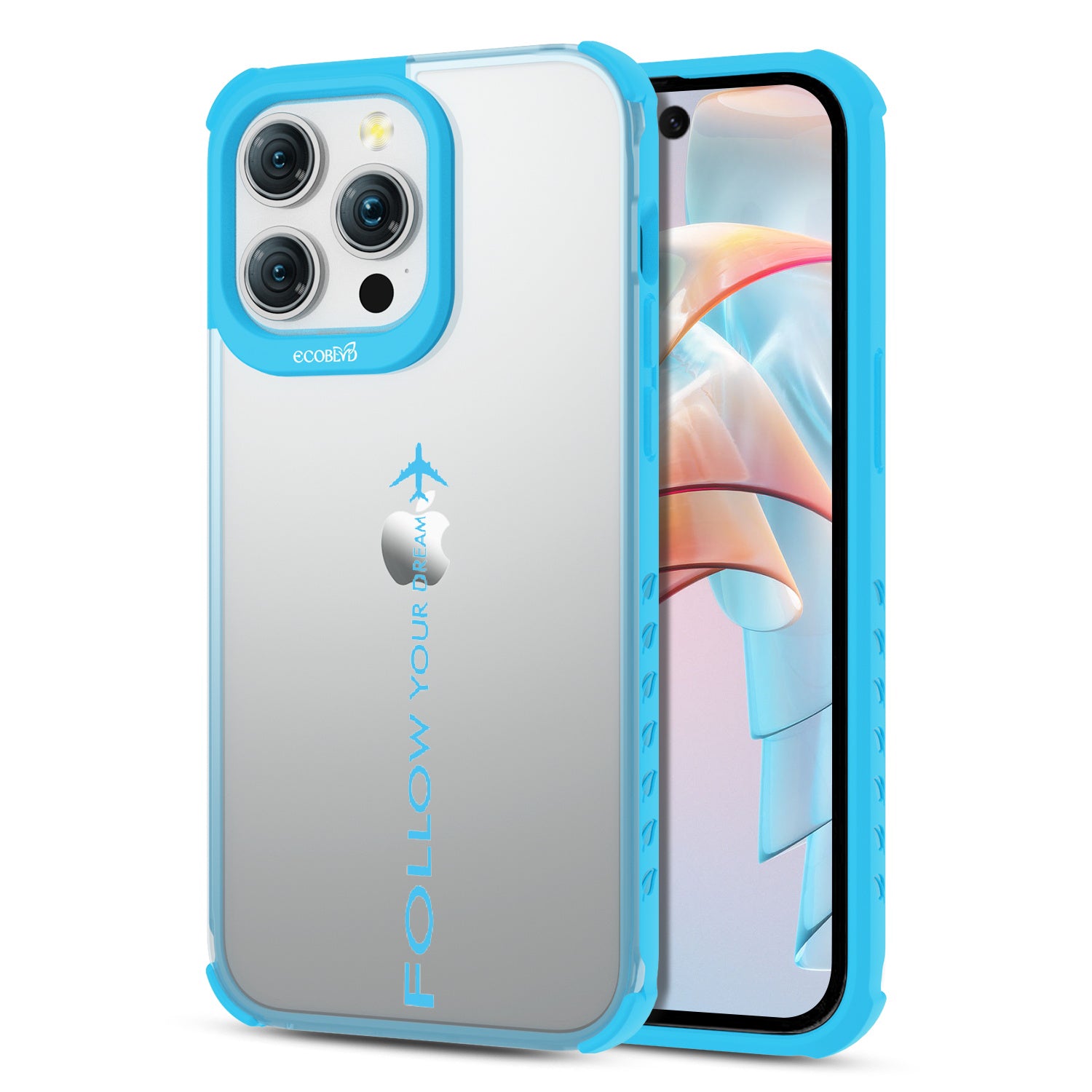 Let your aspirations take flight with the Follow Your Dreams design on our Laguna clear iPhone 15 Pro Max case. As the airplane streaks across the design, trailing empowering words behind it, envision yourself soaring to new heights and exploring the destinations of your dreams. Whether it's wandering through ancient ruins, lounging on tropical beaches, or marveling at breathtaking landscapes.