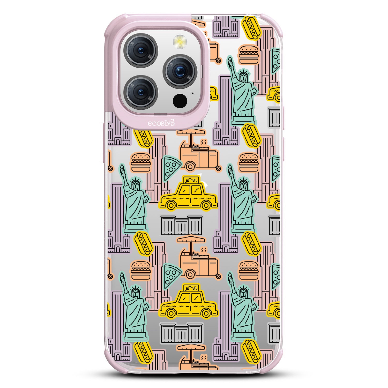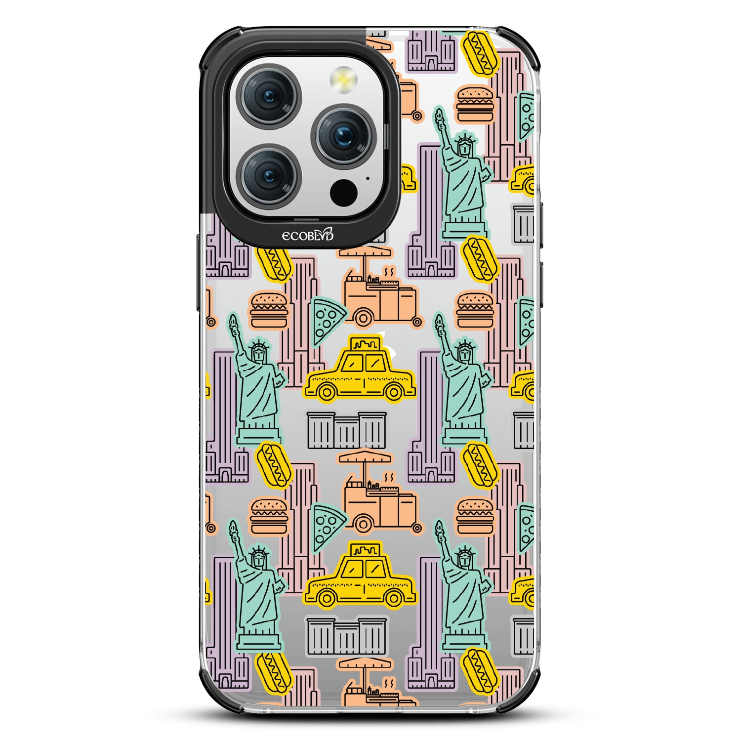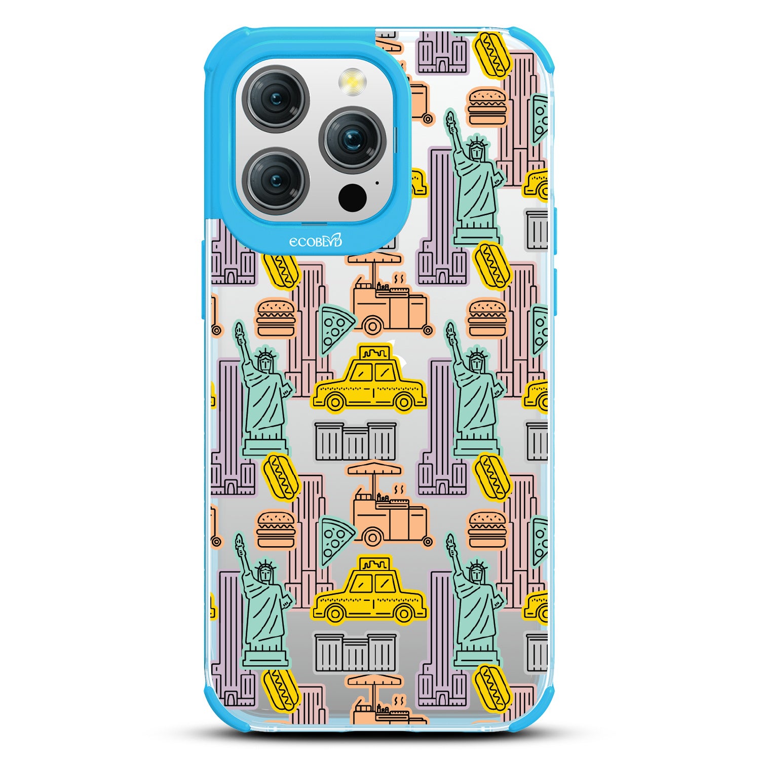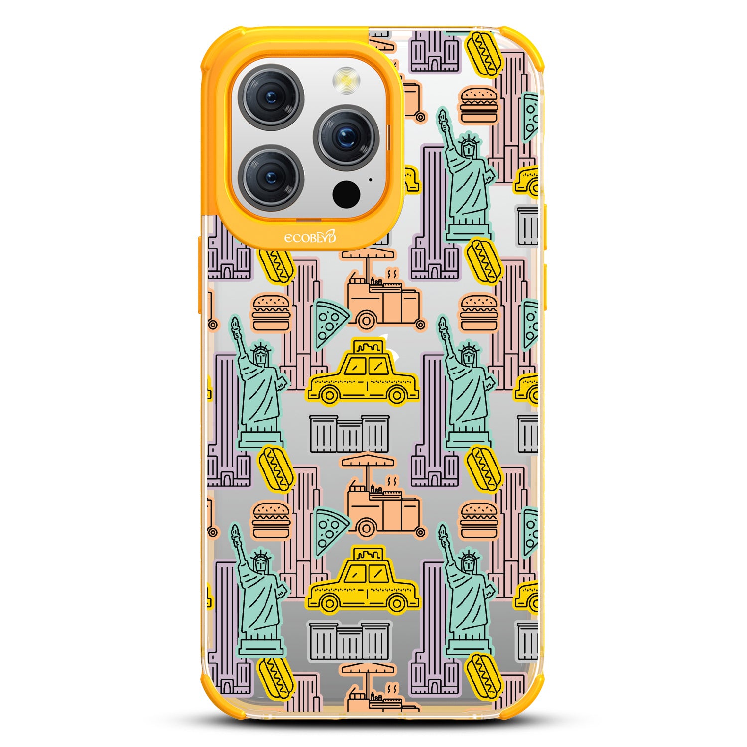 Capture the buzz of the city that never sleeps with the New York Minute design on our Laguna clear iPhone 15 Pro Max phone case. It's a slice of the Big Apple, with iconic yellow cabs, steaming hotdogs, and Lady Liberty herself, all wrapped up in that unmistakable NYC rhythm.
