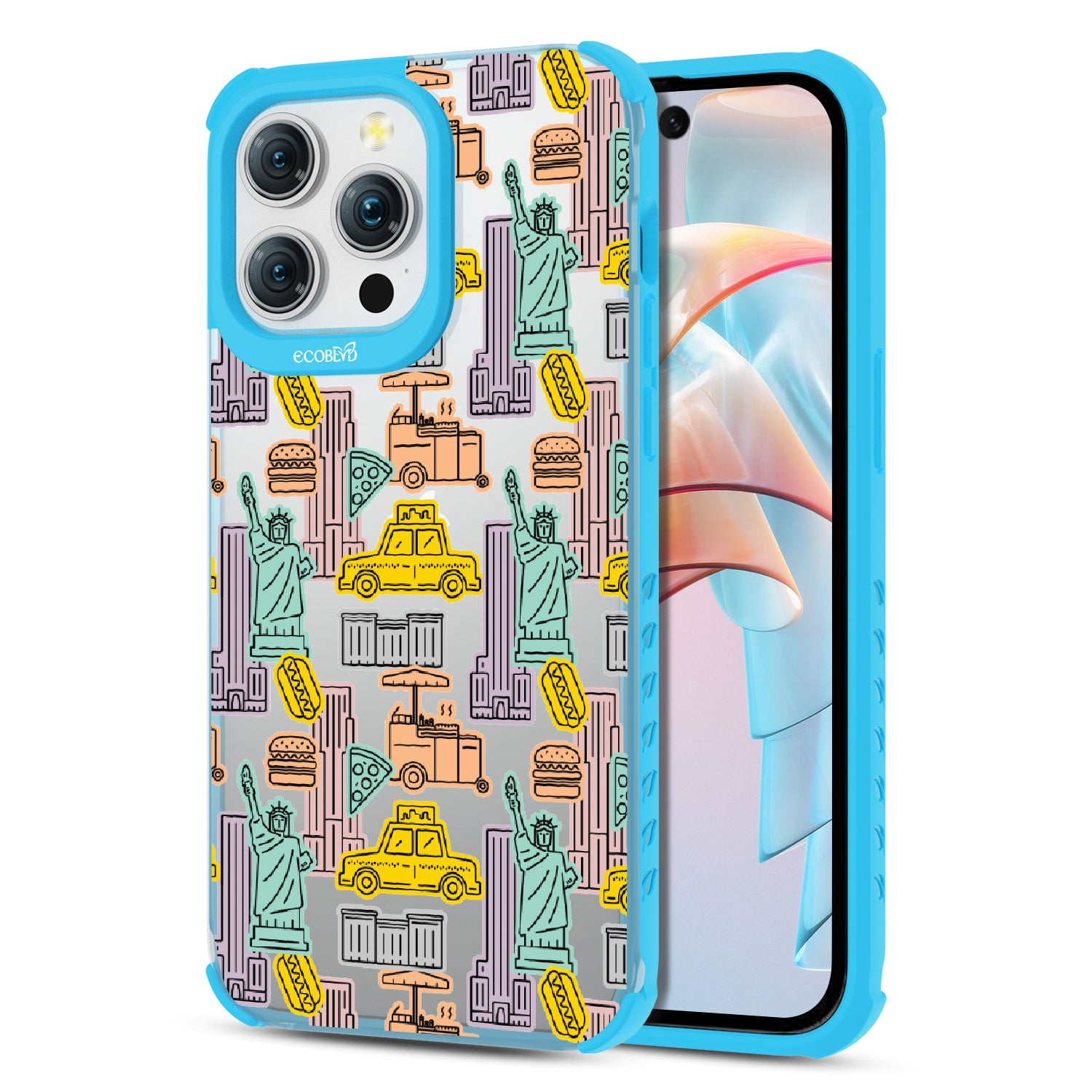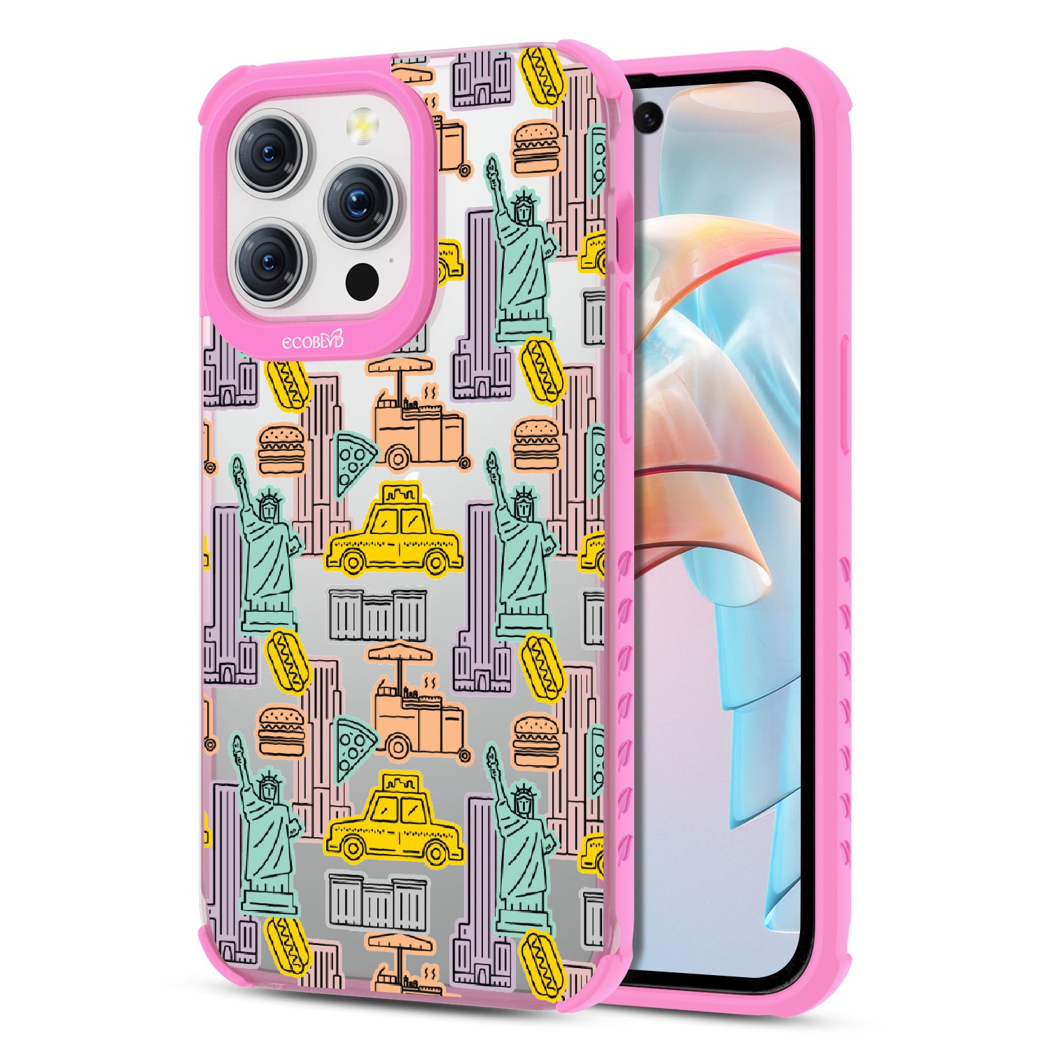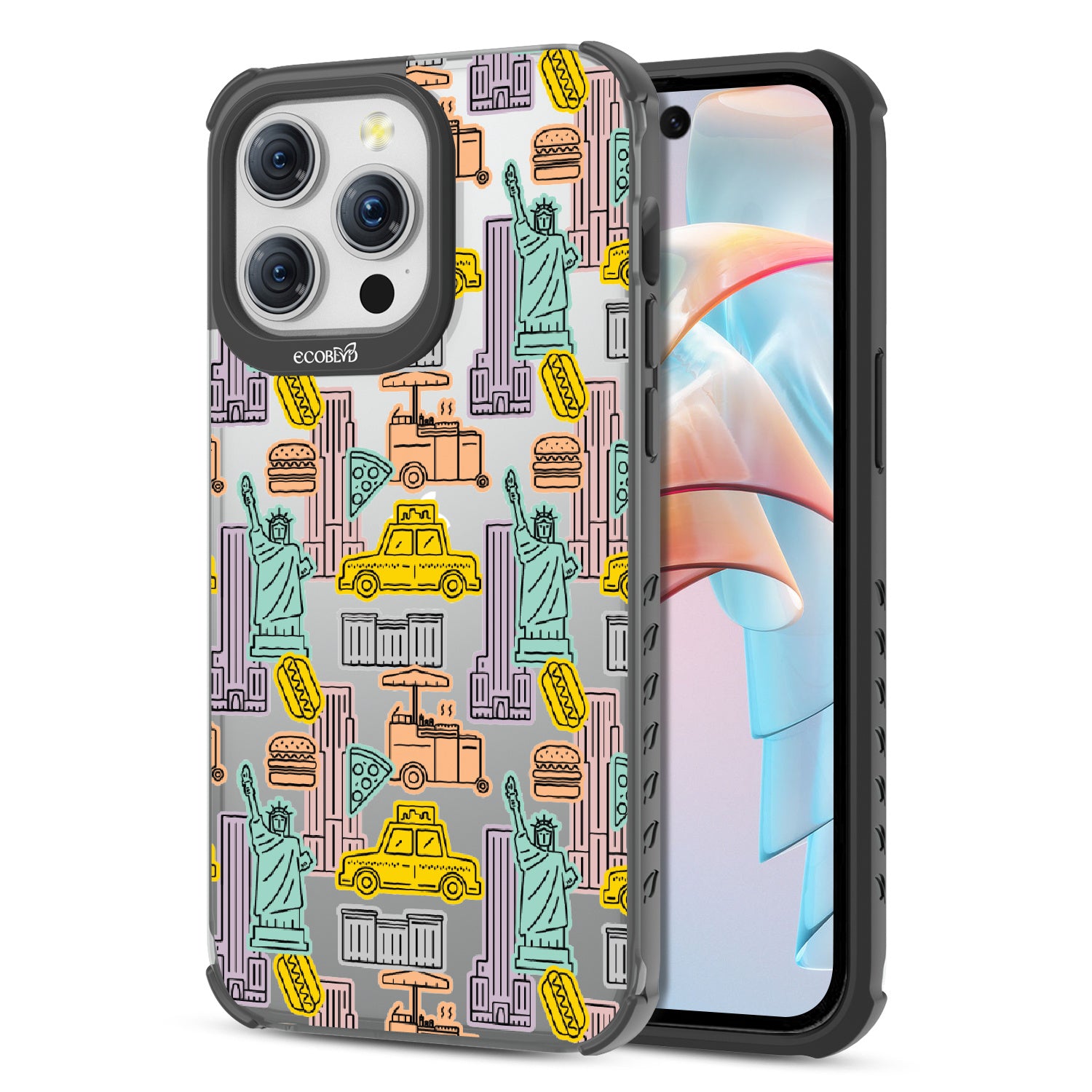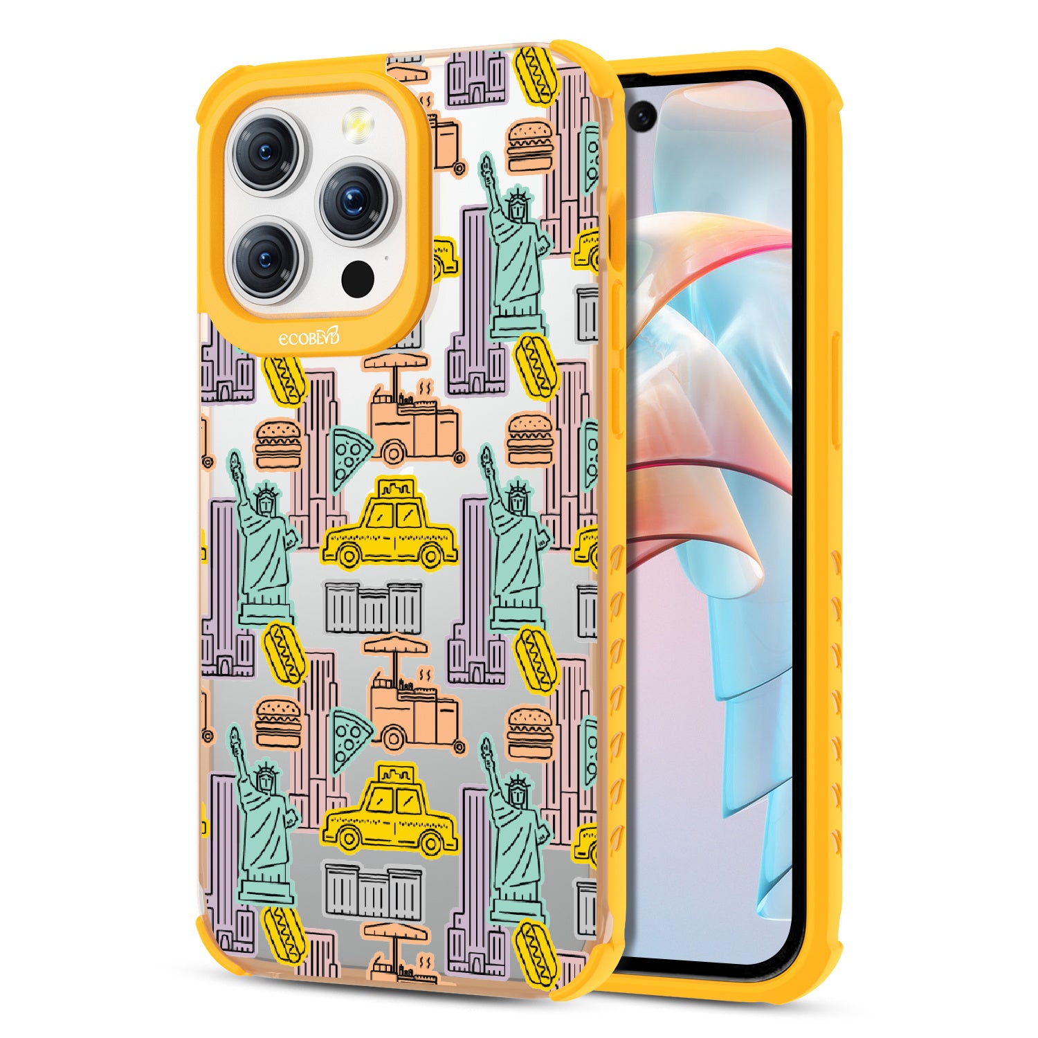 Capture the buzz of the city that never sleeps with the New York Minute design on our Laguna clear iPhone 15 Pro Max phone case. It's a slice of the Big Apple, with iconic yellow cabs, steaming hotdogs, and Lady Liberty herself, all wrapped up in that unmistakable NYC rhythm.
