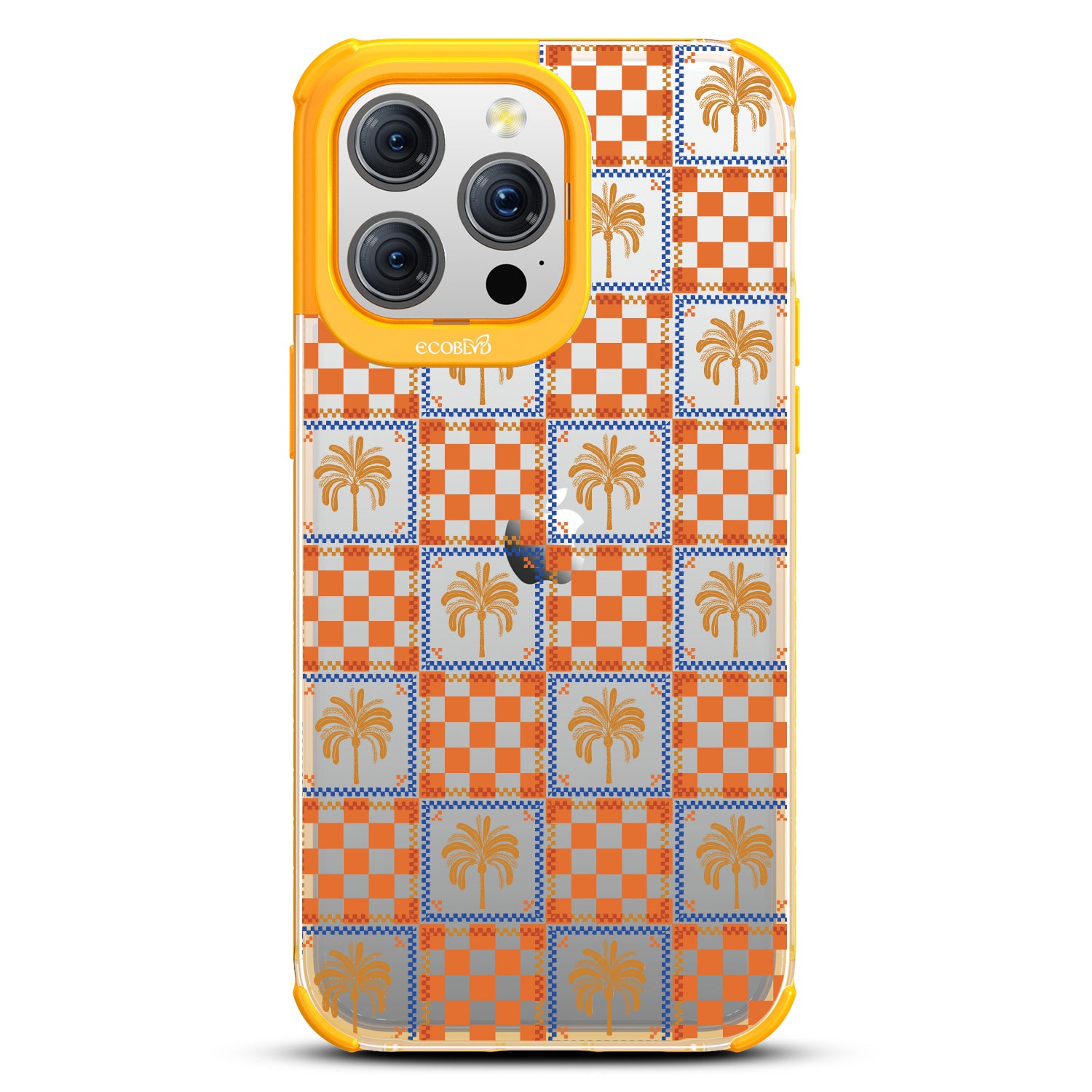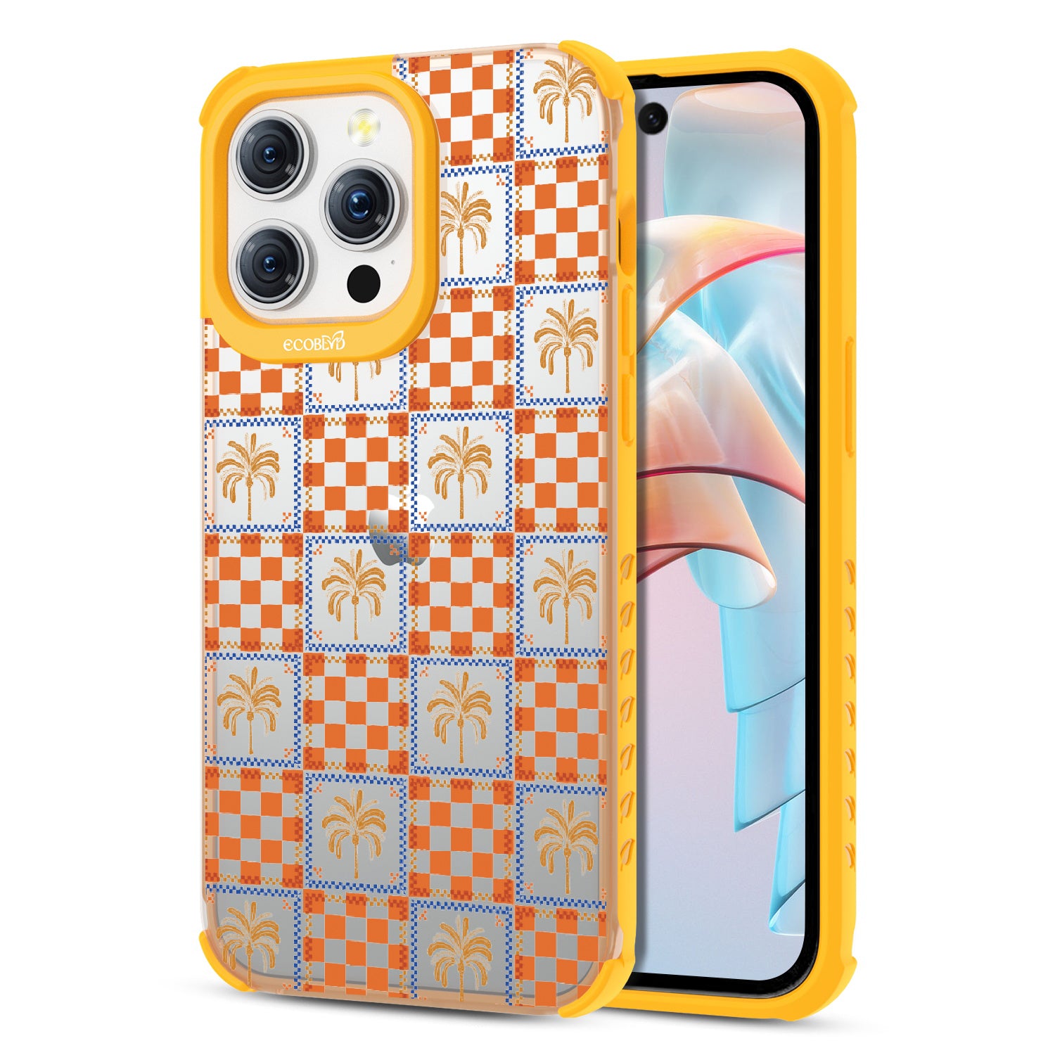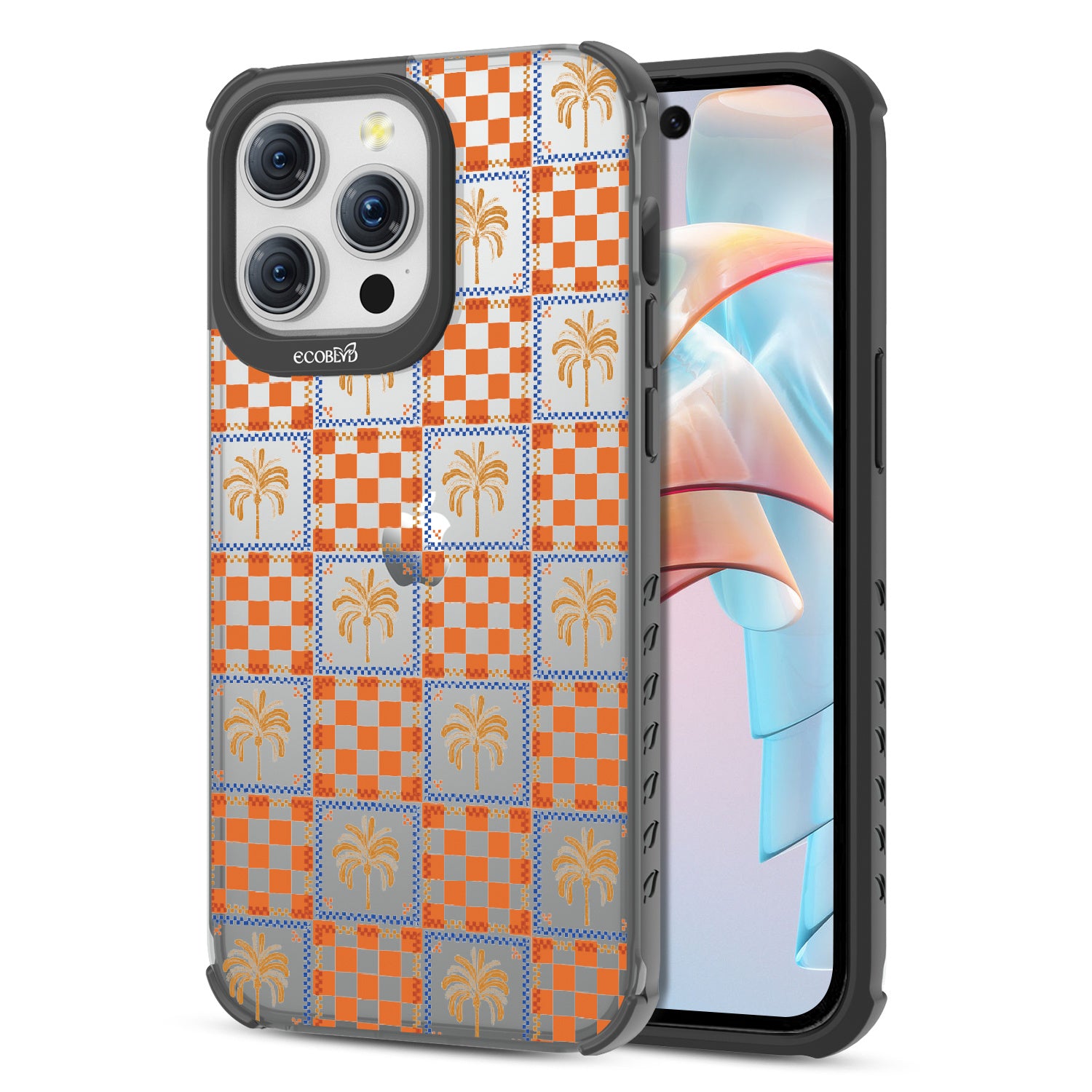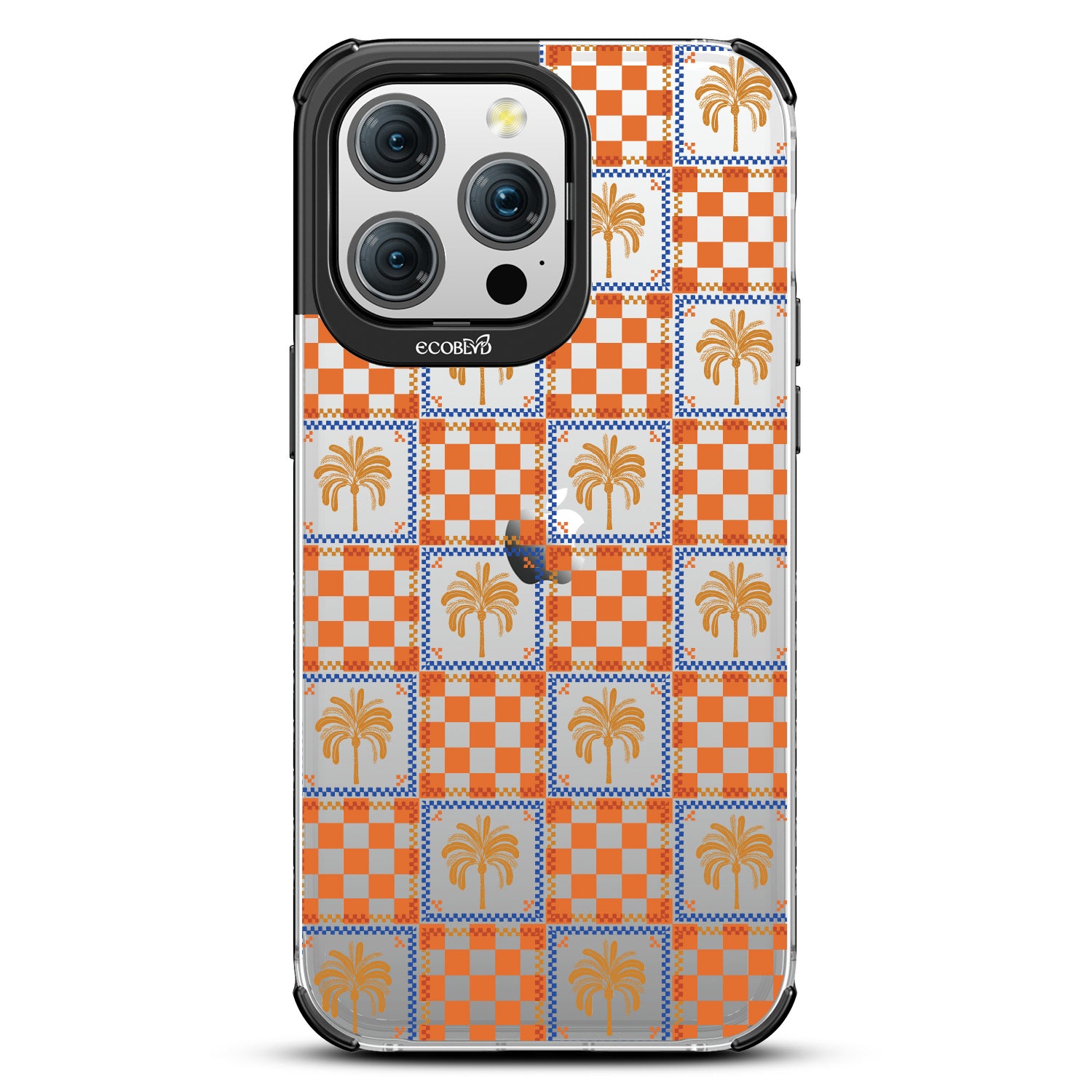 Relax and unwind with the Under The Palms design on our Laguna clear iPhone 15 Pro Max phone case, where the carefree spirit of palm trees meets the ageless appeal of checkerboard patterns. This design captures the essence of a retro beach getaway, combining classic style with a modern twist. Let your phone take you to a place where the sun shines brighter and the palms sway gently in the breeze.