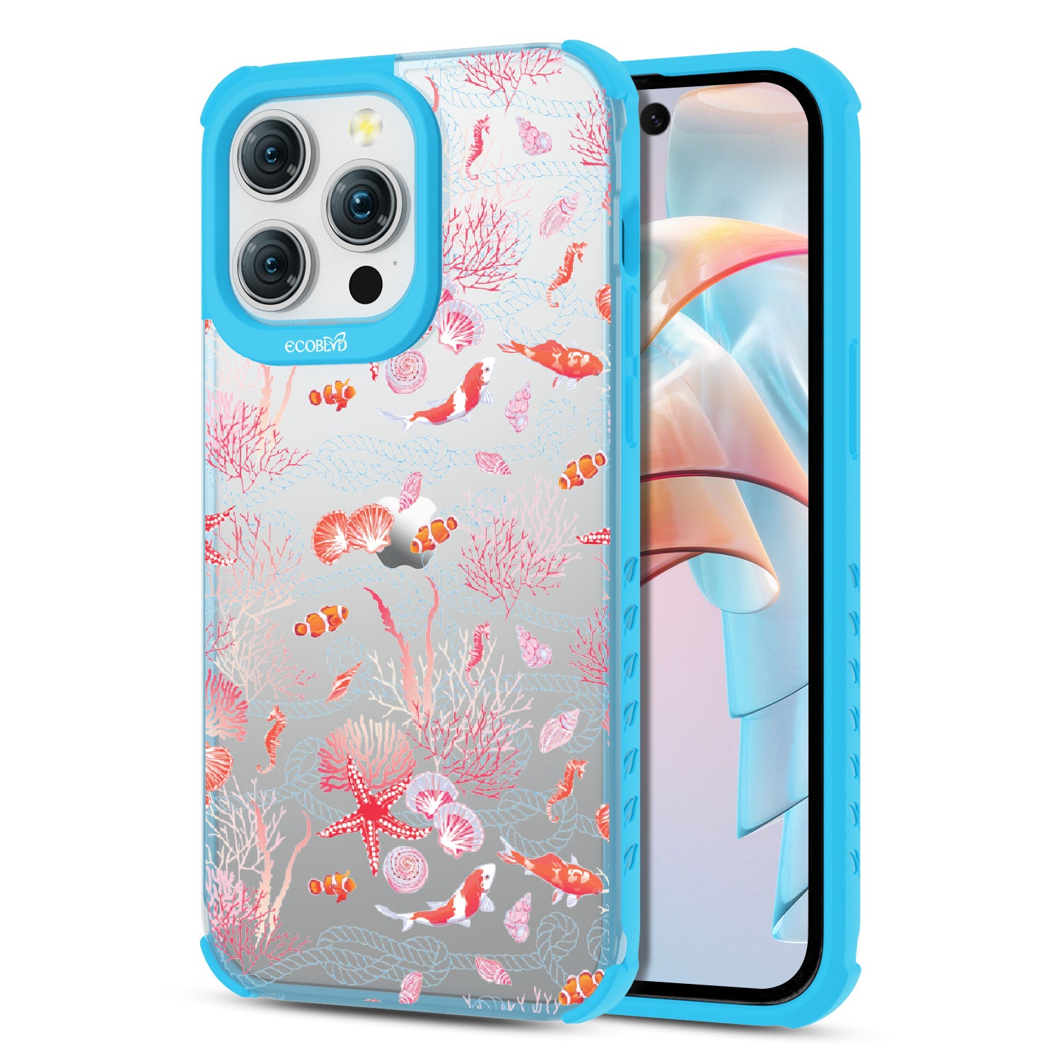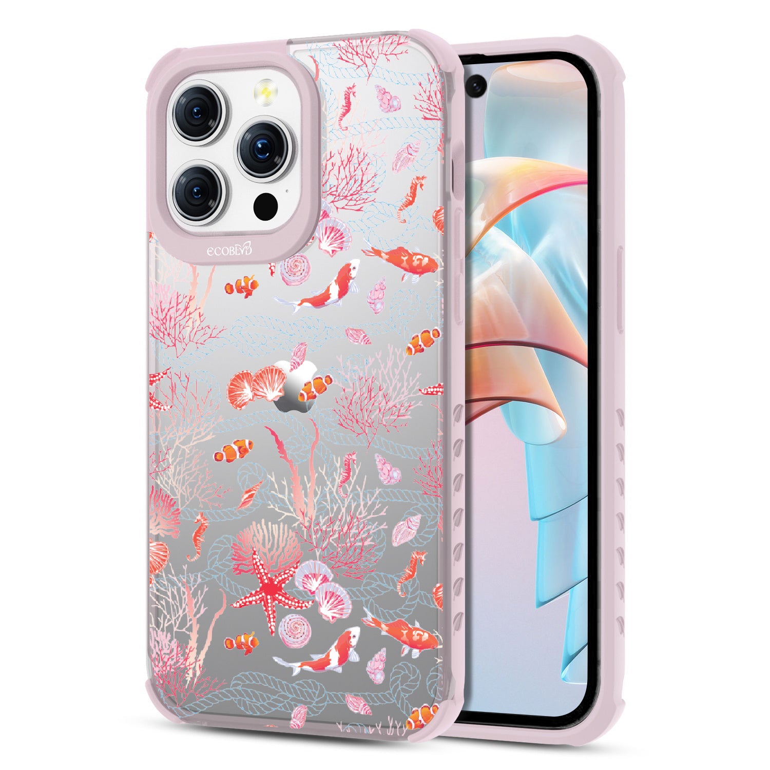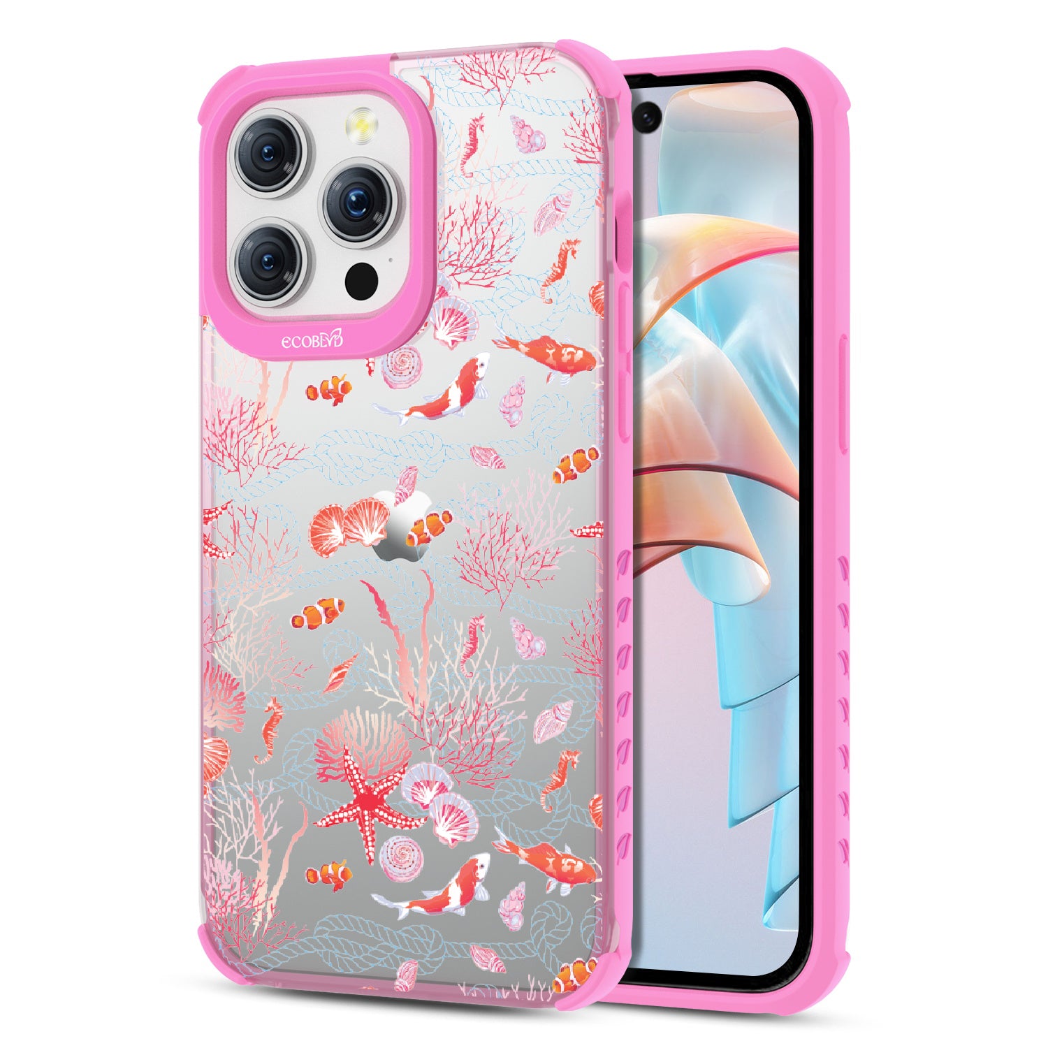 iPhone 15 Pro Max phone case, you'll see, your phone’s full of glee, under the sea! Coral and critters, they all come together, swirling in hues, pinks, and blues, where life’s better wetter, take it from me! Your phone will be dancing, twirling, and prancing, carrying the magic of the ocean so fancy! So let your phone be, full of joy and glee, under the sea.