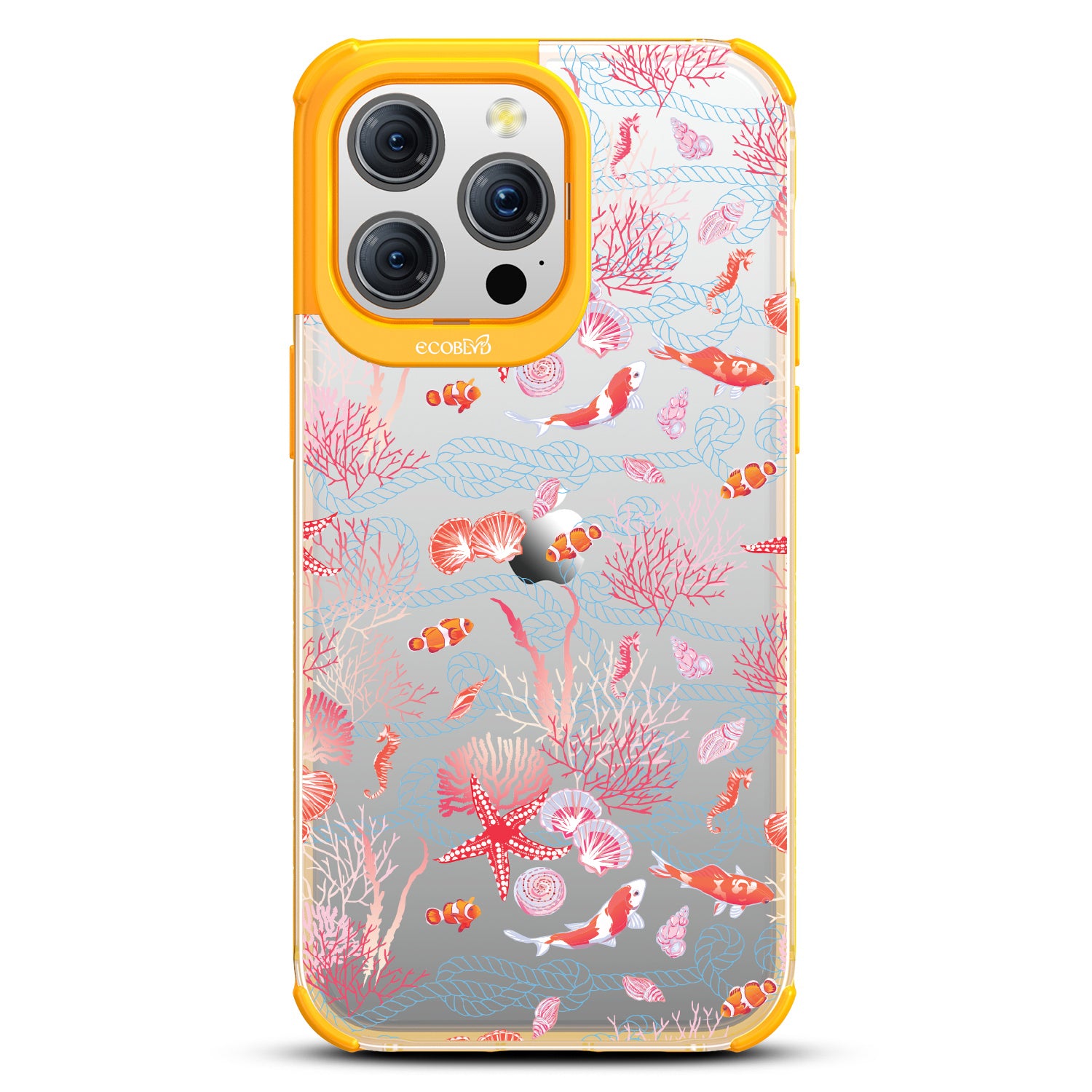 The coral is always brighter, Under the Sea! With this design our Laguna clear iPhone 15 Pro Max phone case, you'll see, your phone’s full of glee, under the sea! Coral and critters, they all come together, swirling in hues, pinks, and blues, where life’s better wetter, take it from me! Your phone will be dancing, twirling, and prancing, carrying the magic of the ocean so fancy! So let your phone be, full of joy and glee, under the sea.