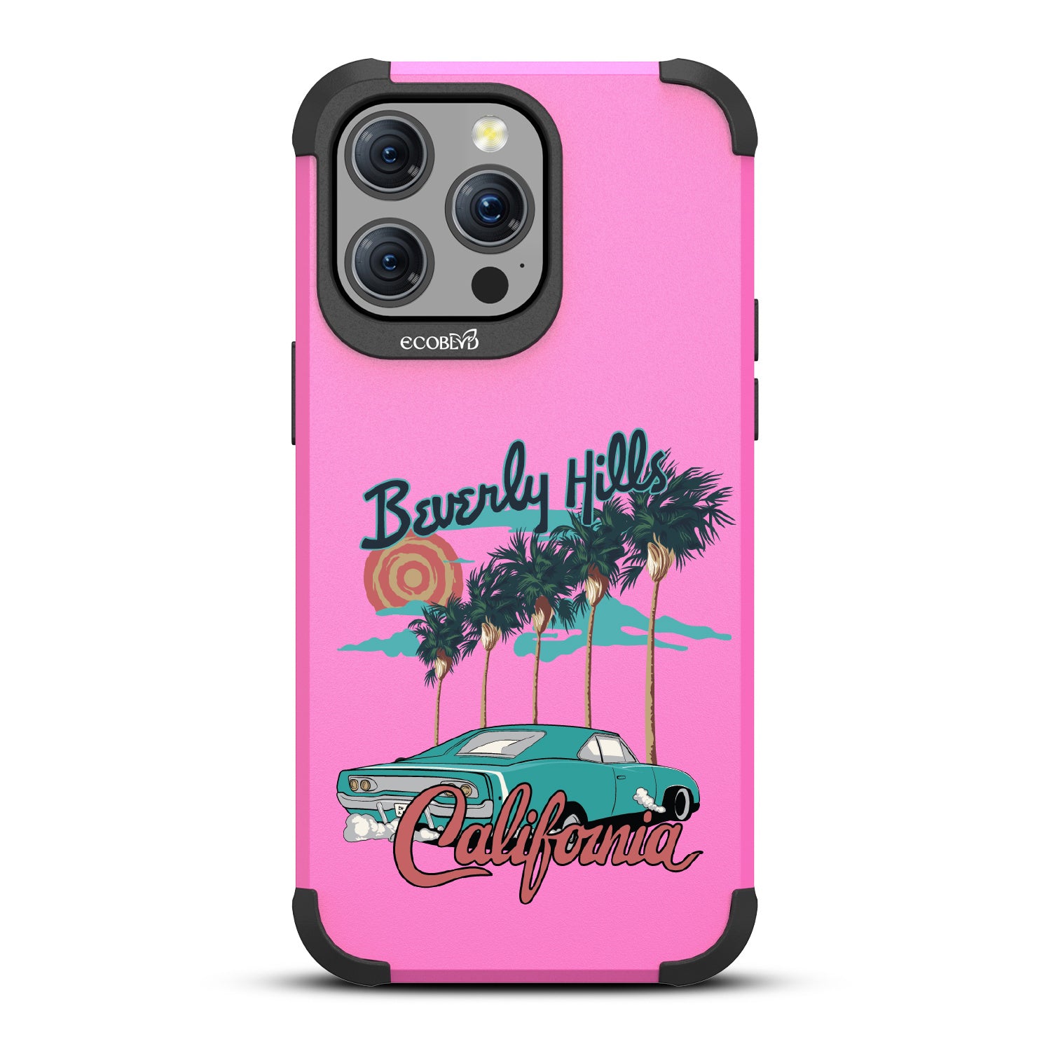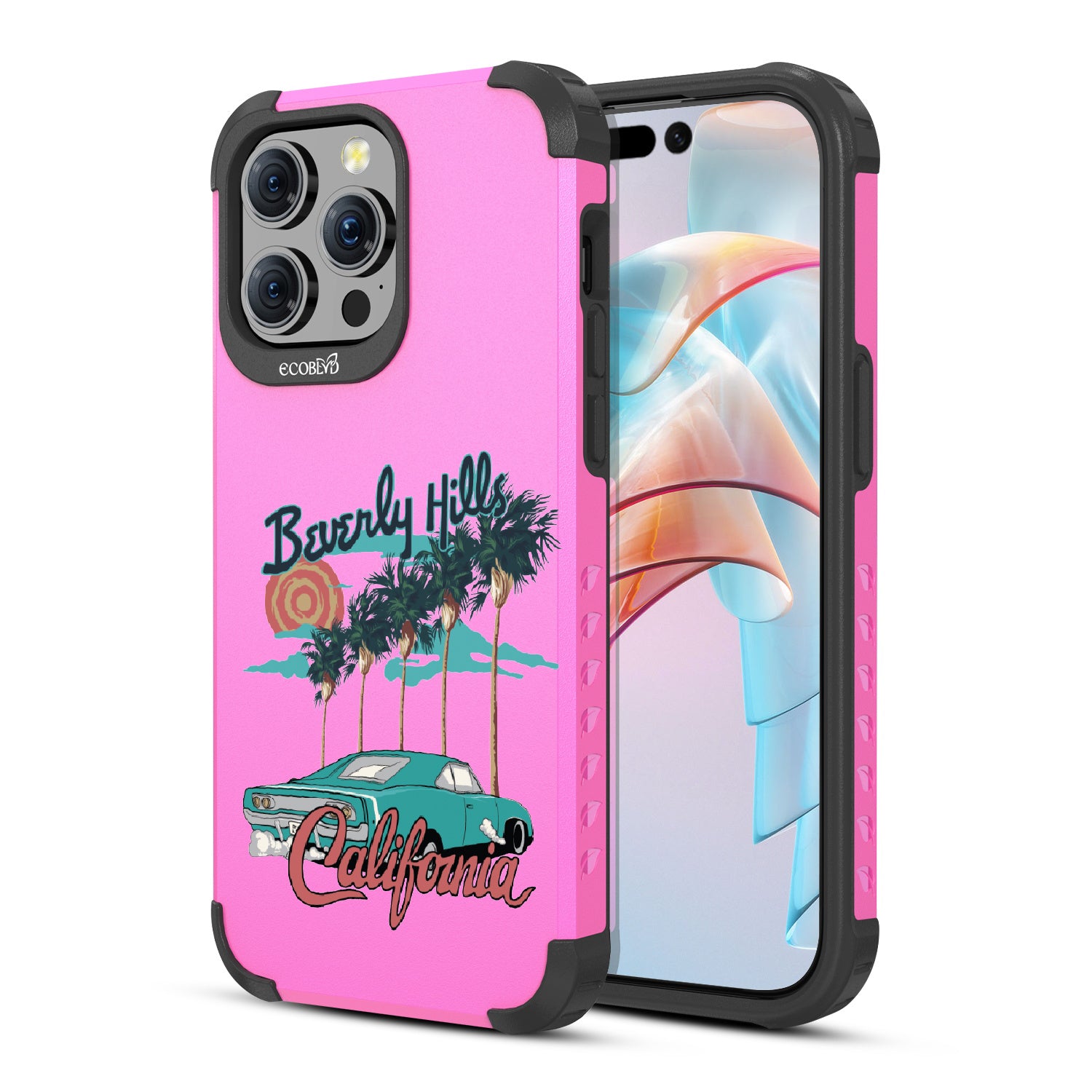 Get ready to roll down the streets of Beverly Hills in style with our 90210 design on Mojave rugged iPhone 15 Pro Max MagSafe case, where palm trees high-five and classic cars strut their stuff like they own the road. Your phone becomes the ultimate VIP pass to the land of glitz and glamor, where even the pigeons wear sunglasses. So, buckle up, and let's make your phone as star-studded as a Hollywood premiere.