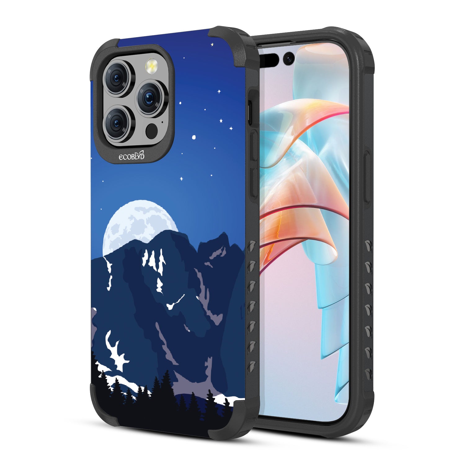 Bask in the ethereal glow of our Alpine Moon design on our Mojave rugged iPhone 15 Pro Max MagSafe case, where the moon hangs like a luminous pearl against the velvet canvas of the night sky, casting its soft radiance upon the rugged terrain below.