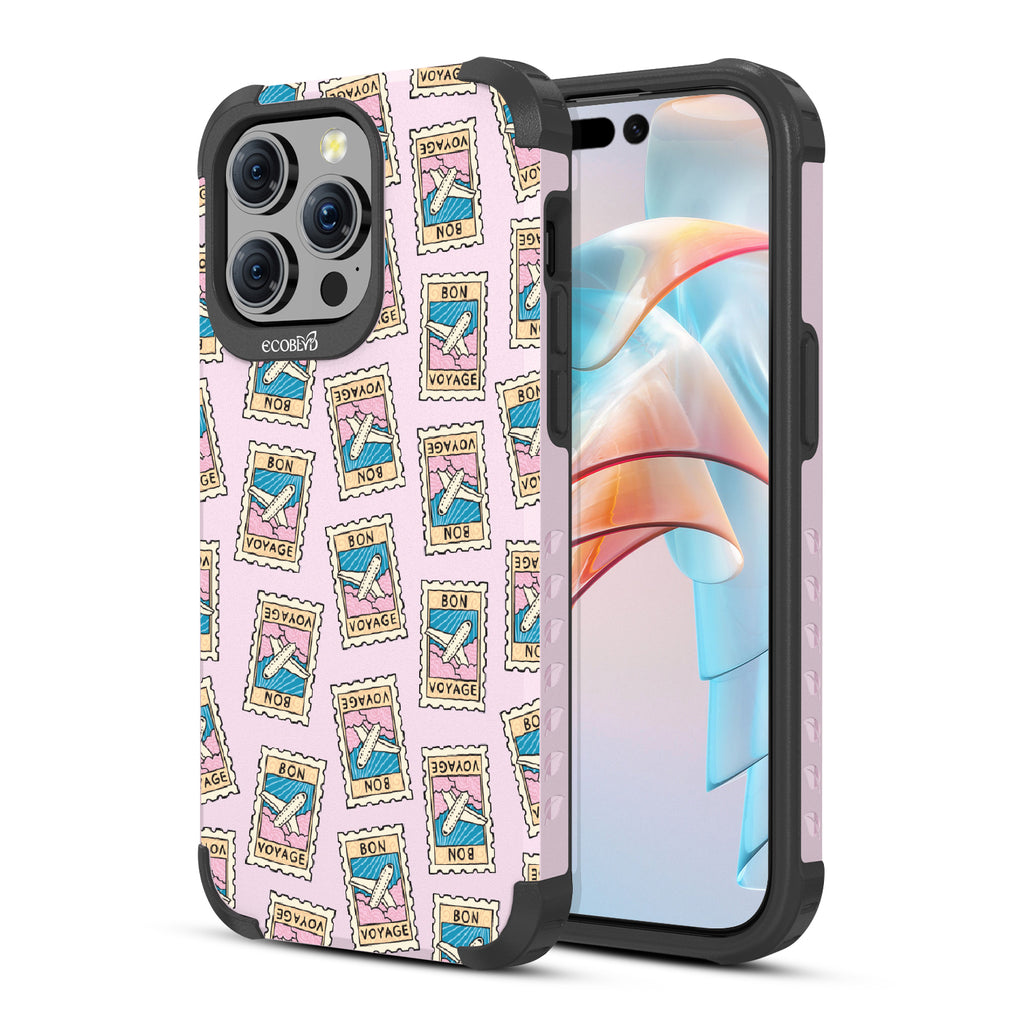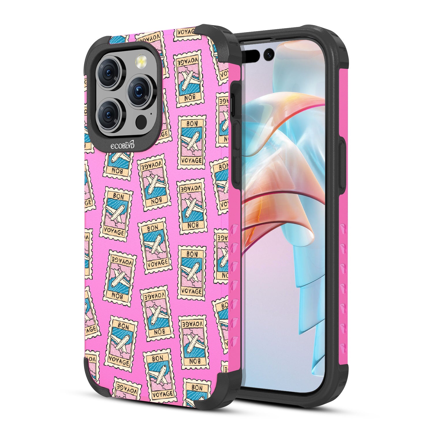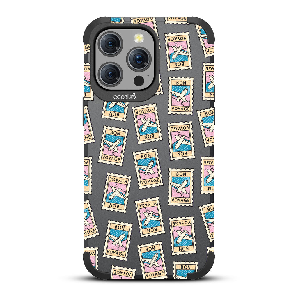 Ready for a stylish departure? The Bon Voyage design on our Mojave rugged iPhone 15 Pro Max MagSafe case, is your phone's own first-class upgrade, where every 'Bon Voyage' stamp is a nod to your next great getaway. It's like turning on flight mode with a twist of runway—your sidekick dressed for adventure. Snap this case on, and let your phone's wanderlust lead the way. Buckle up, traveler—your pocket-sized co-pilot is about to make every journey fashionably memorable.