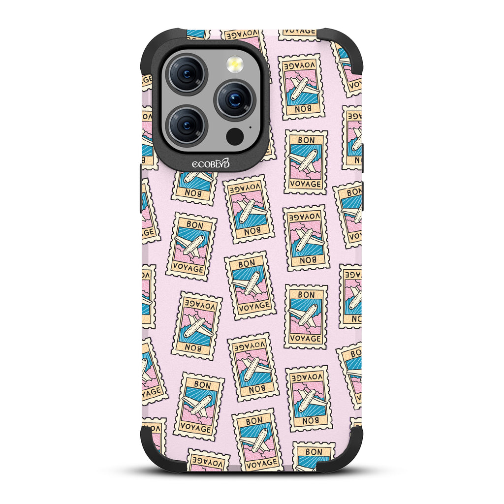 Ready for a stylish departure? The Bon Voyage design on our Mojave rugged iPhone 15 Pro Max MagSafe case, is your phone's own first-class upgrade, where every 'Bon Voyage' stamp is a nod to your next great getaway. It's like turning on flight mode with a twist of runway—your sidekick dressed for adventure. Snap this case on, and let your phone's wanderlust lead the way. Buckle up, traveler—your pocket-sized co-pilot is about to make every journey fashionably memorable.
