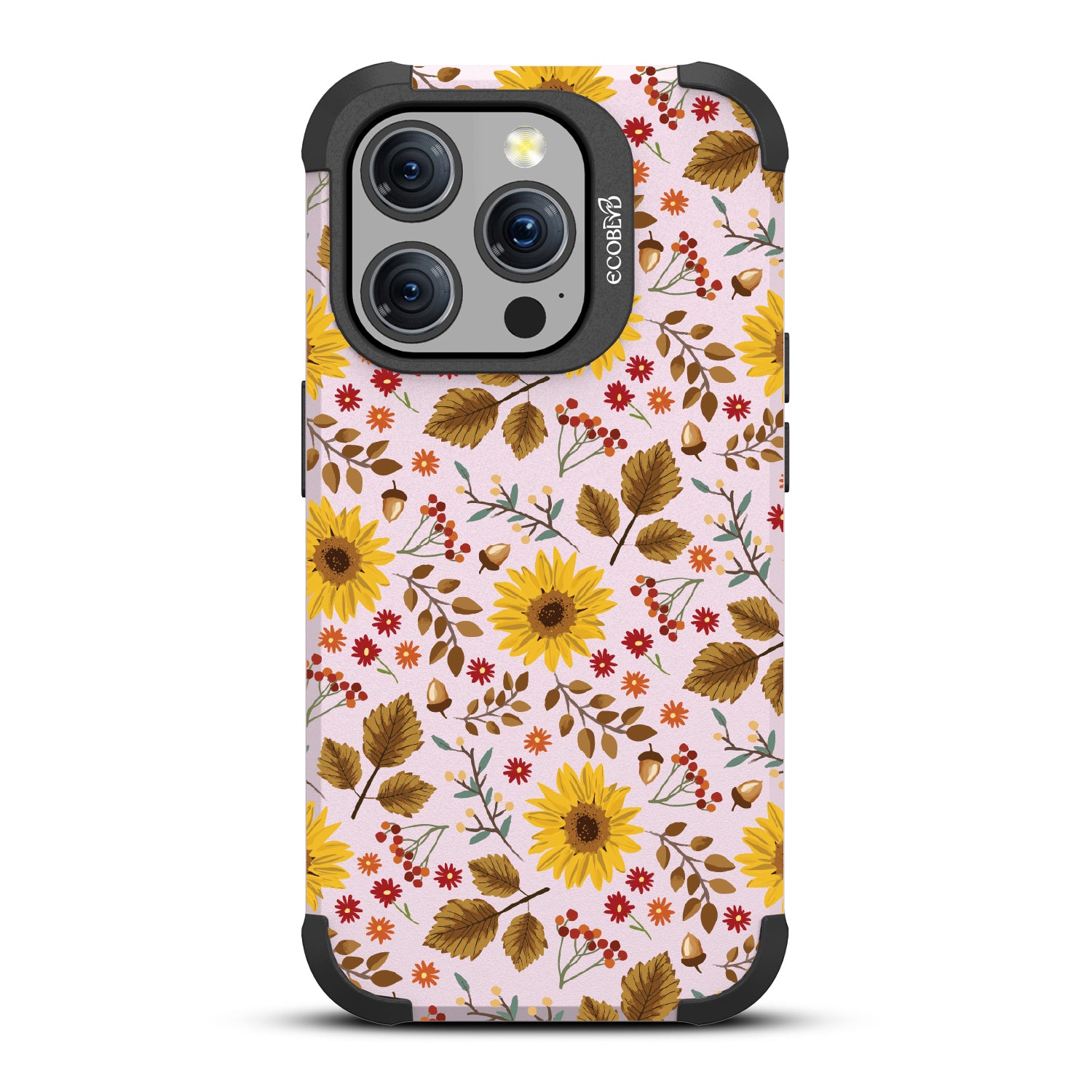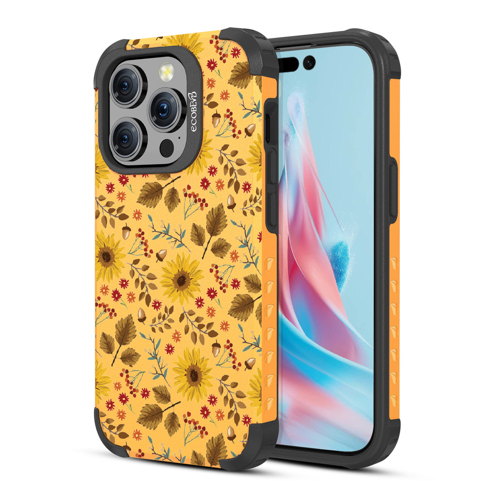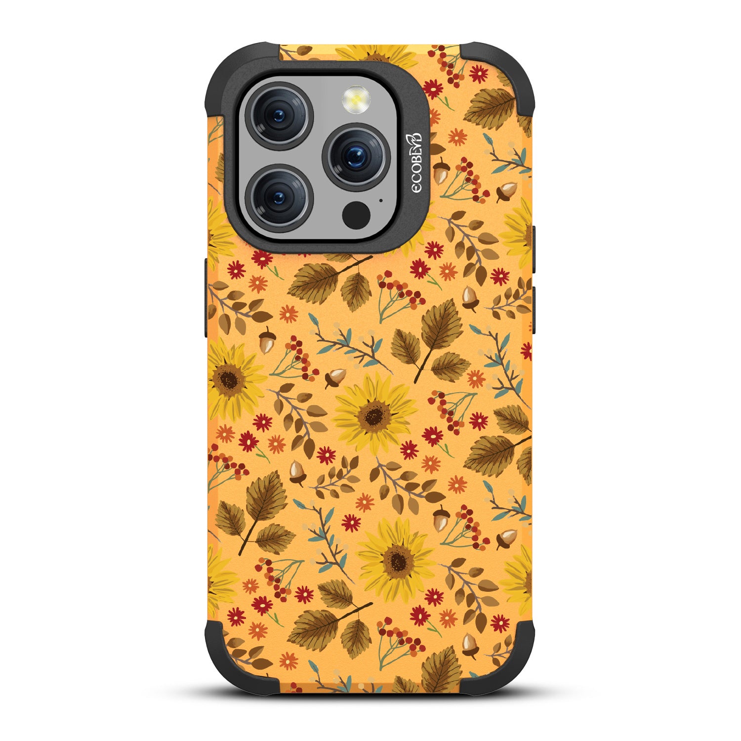 Fall in love with the Fall Florals design on our Mojave rugged and compostable iPhone 15 Pro Max case. Sunflowers, marigolds, and chrysanthemums blend together in a garden of earthly delights that brings a burst of inviting colors to your phone. Step into the new season with this refreshing, crisp look.