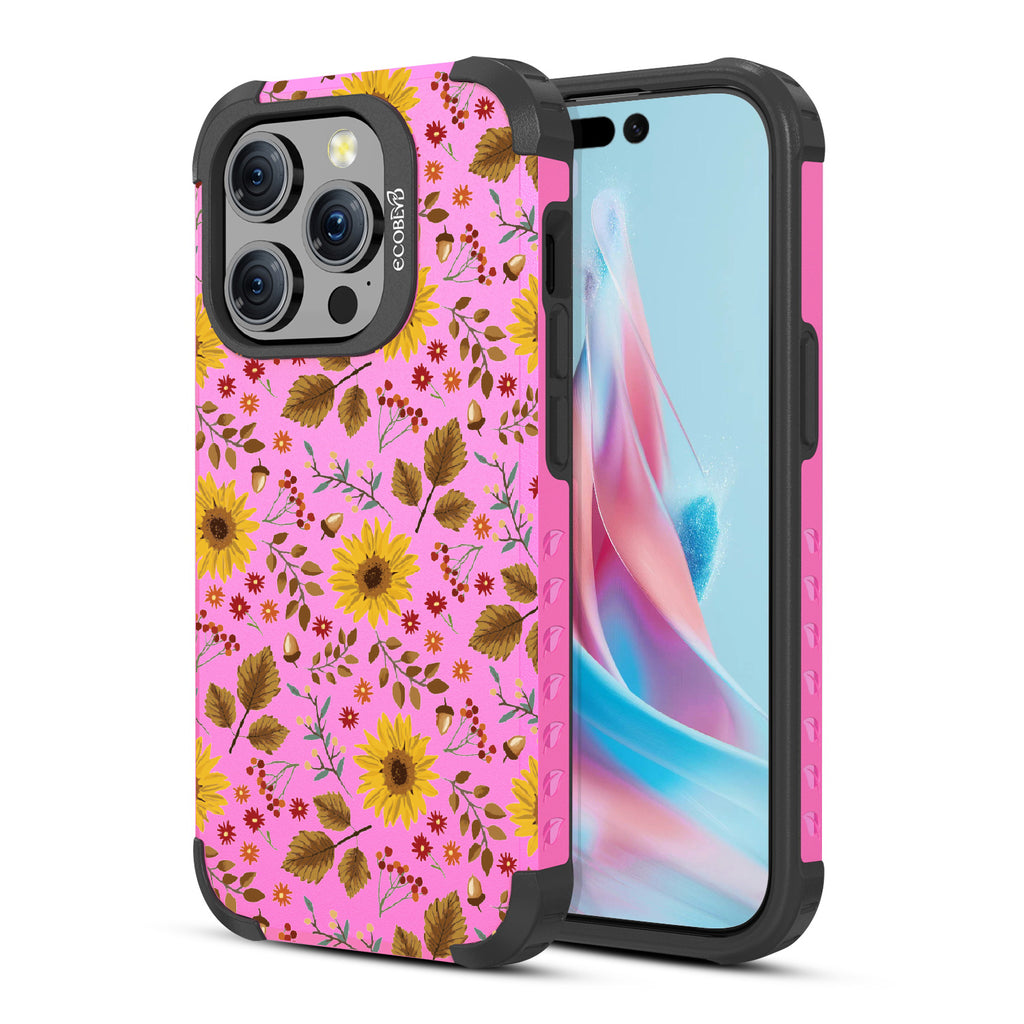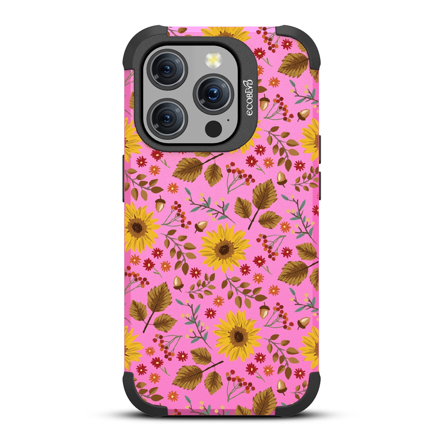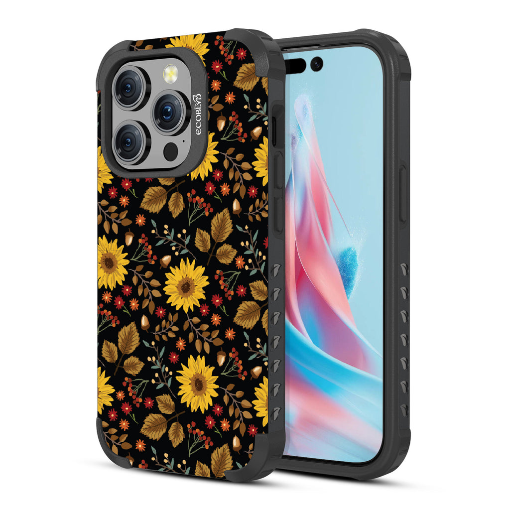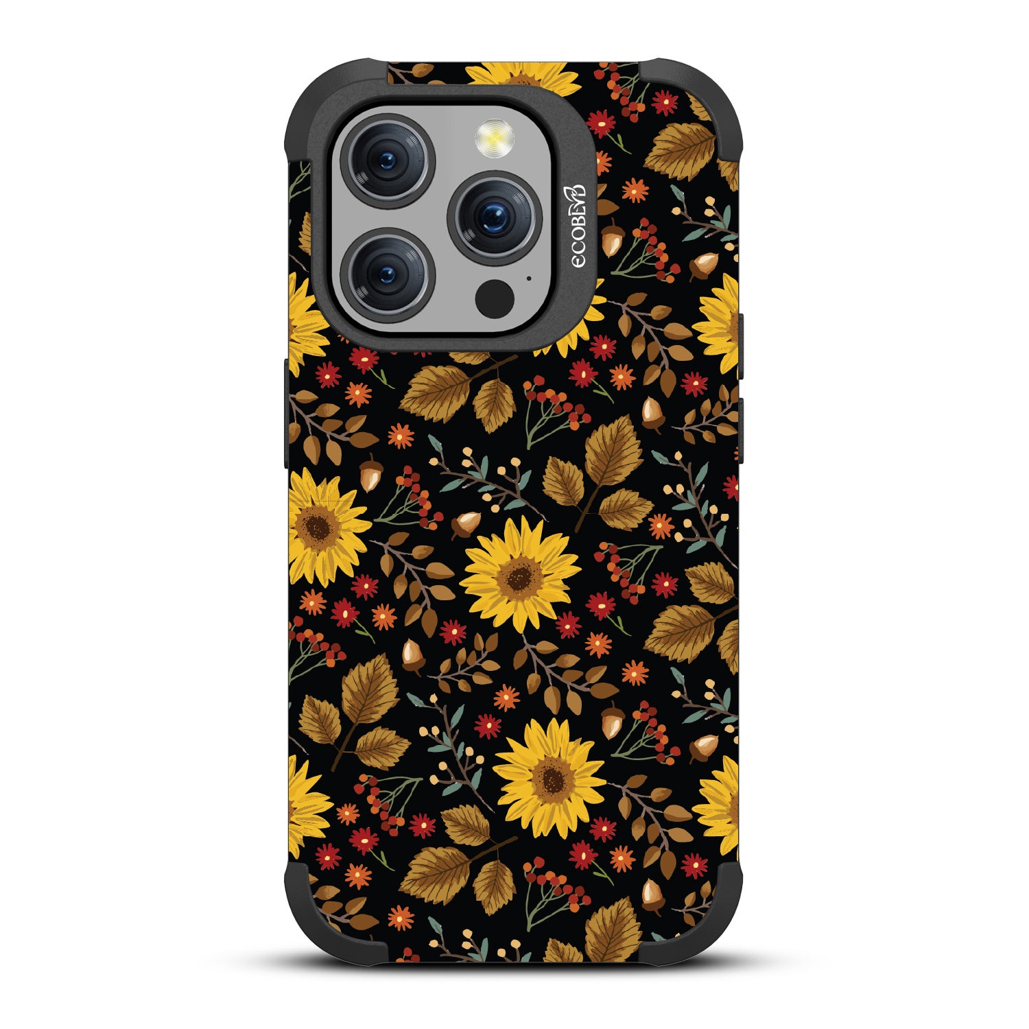 Fall in love with the Fall Florals design on our Mojave rugged and compostable iPhone 15 Pro Max case. Sunflowers, marigolds, and chrysanthemums blend together in a garden of earthly delights that brings a burst of inviting colors to your phone. Step into the new season with this refreshing, crisp look.