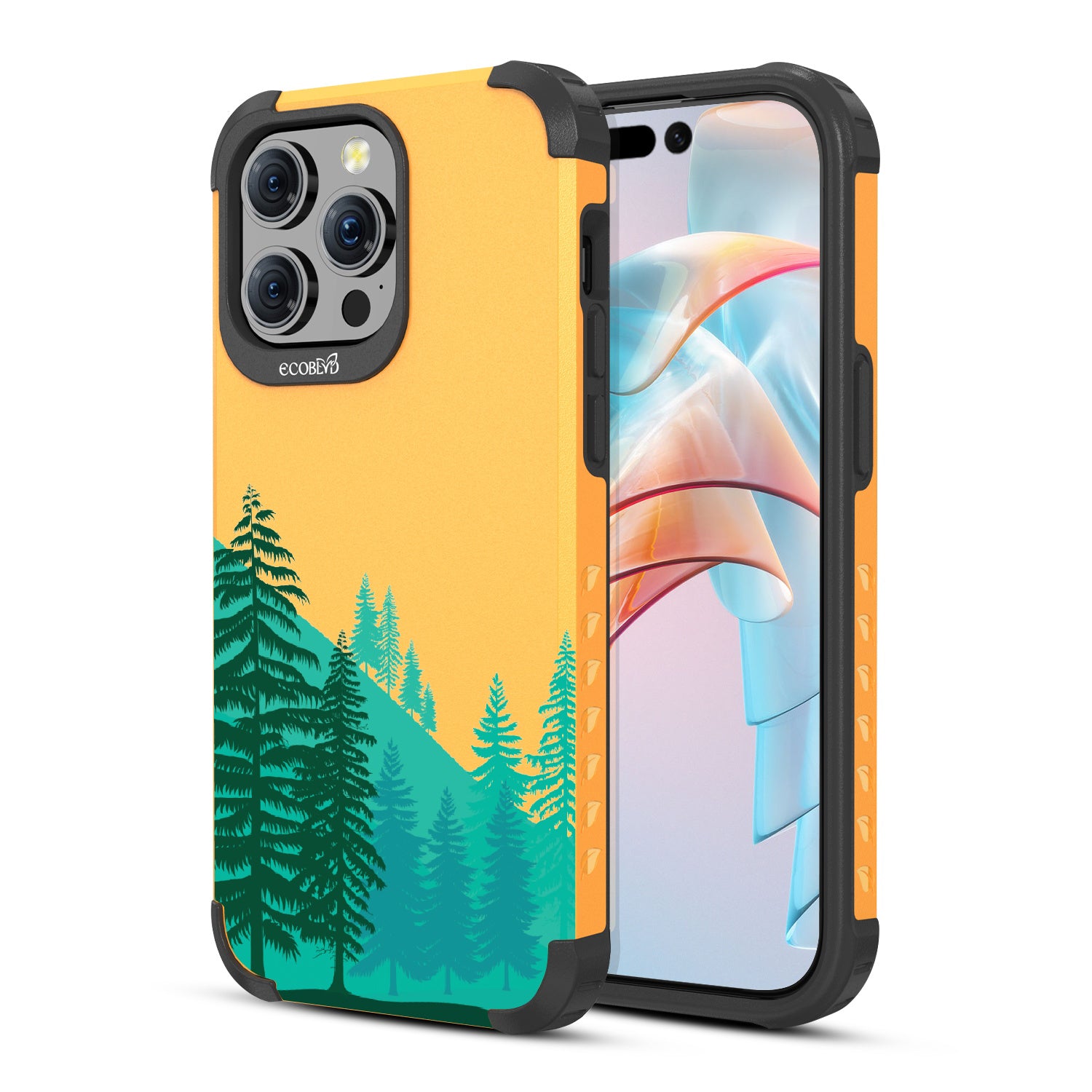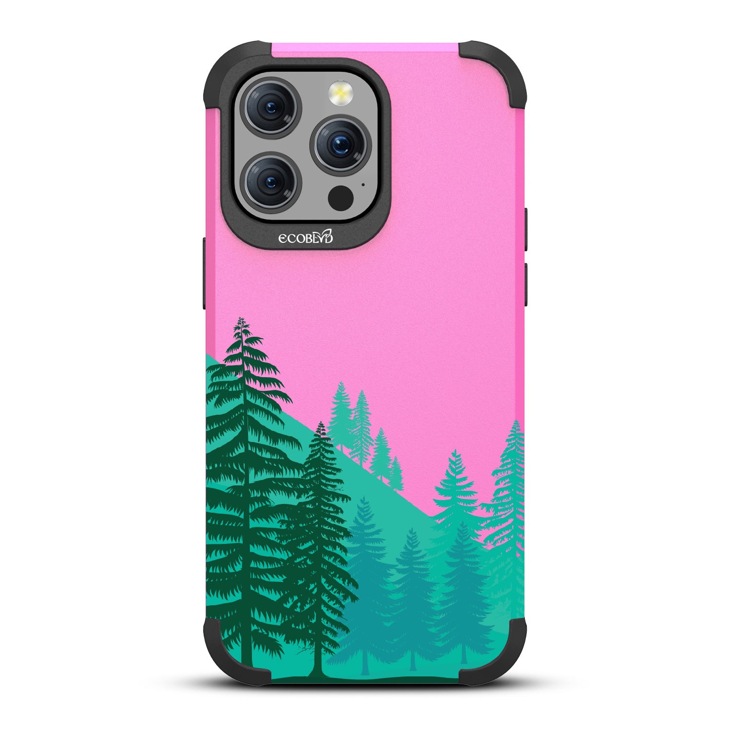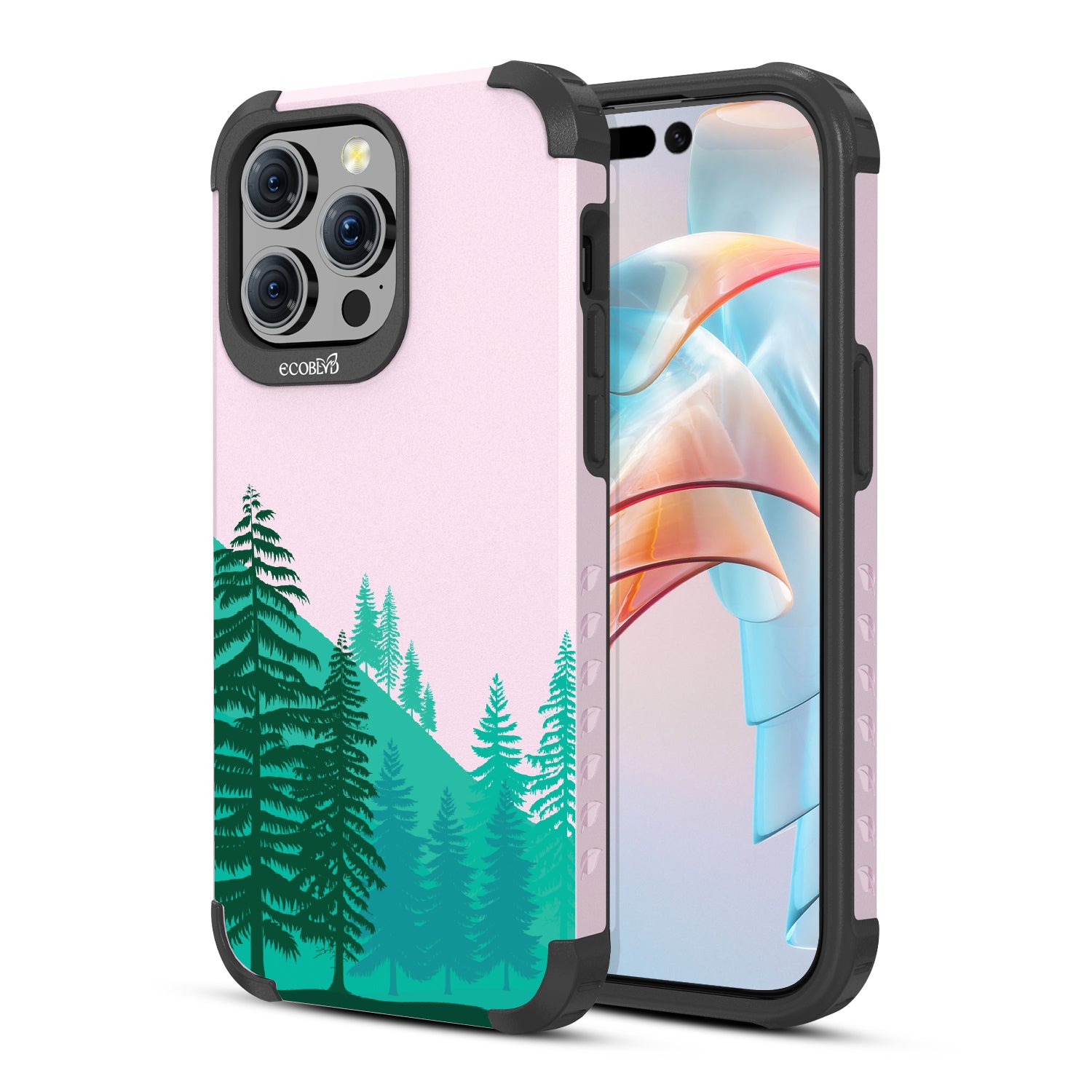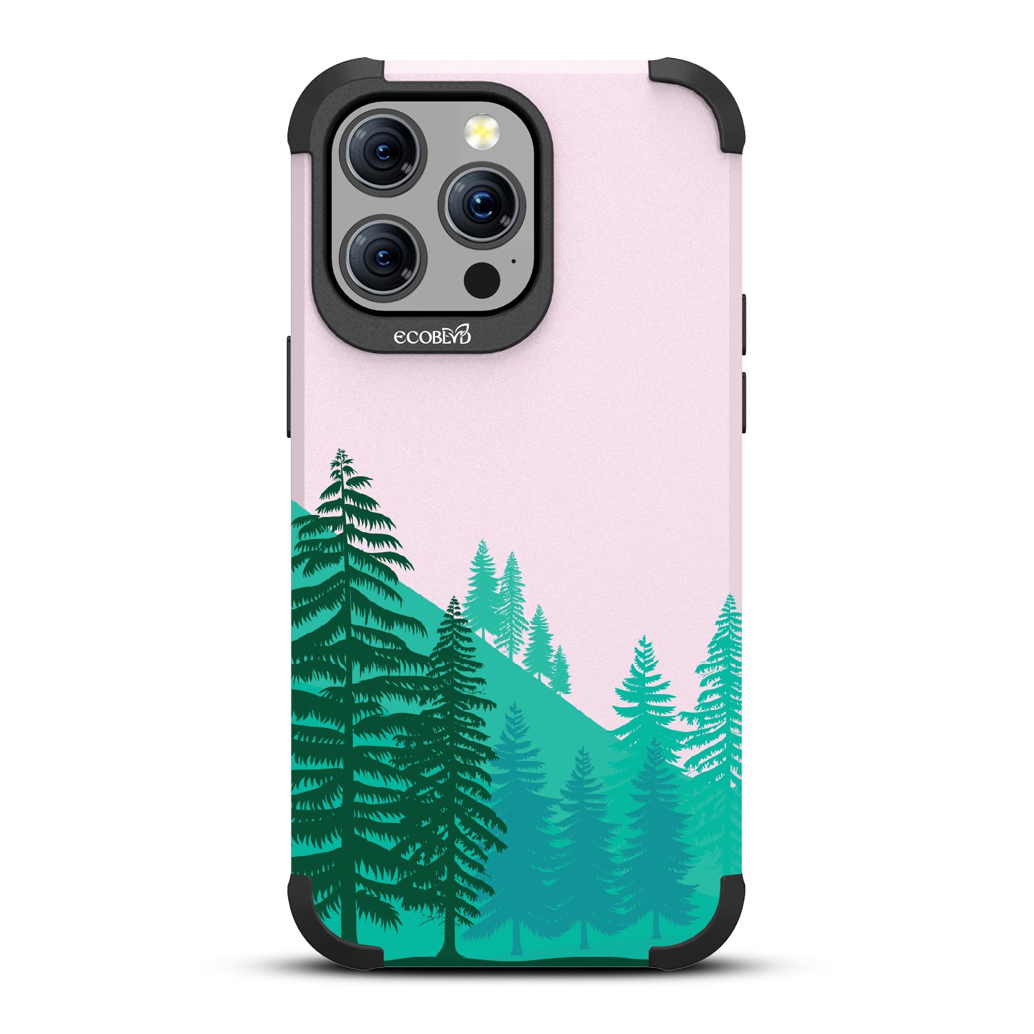 Get dialed into the wonder of nature as the Forest design on our Mojave rugged and compostable iPhone 15 Pro Max case surrounds your phone. Explore the great outdoors with a lush forest of fir trees in five colorways: Midnight Black, Cascade Blue, Wildflower Pink, Illuminating Yellow, and the exclusive Pastel Lilac!