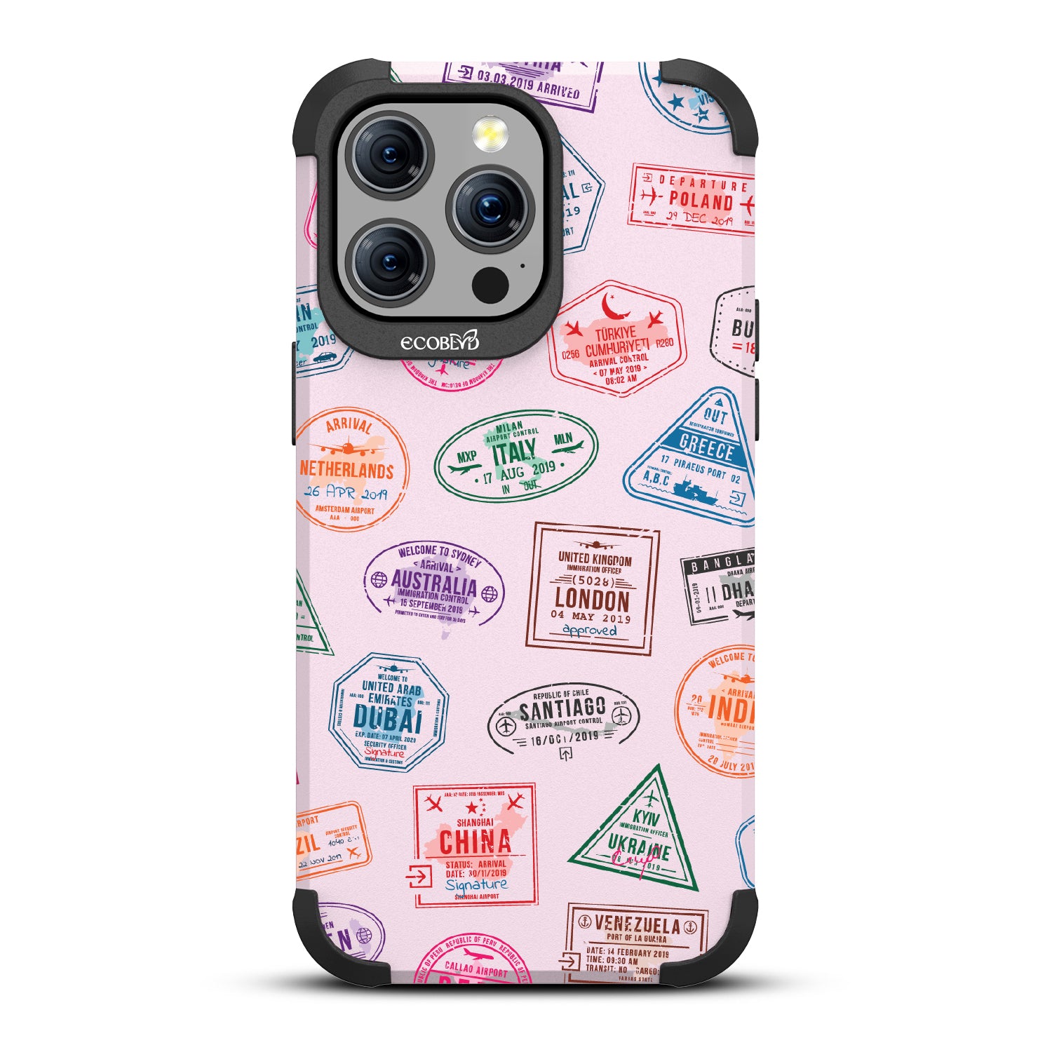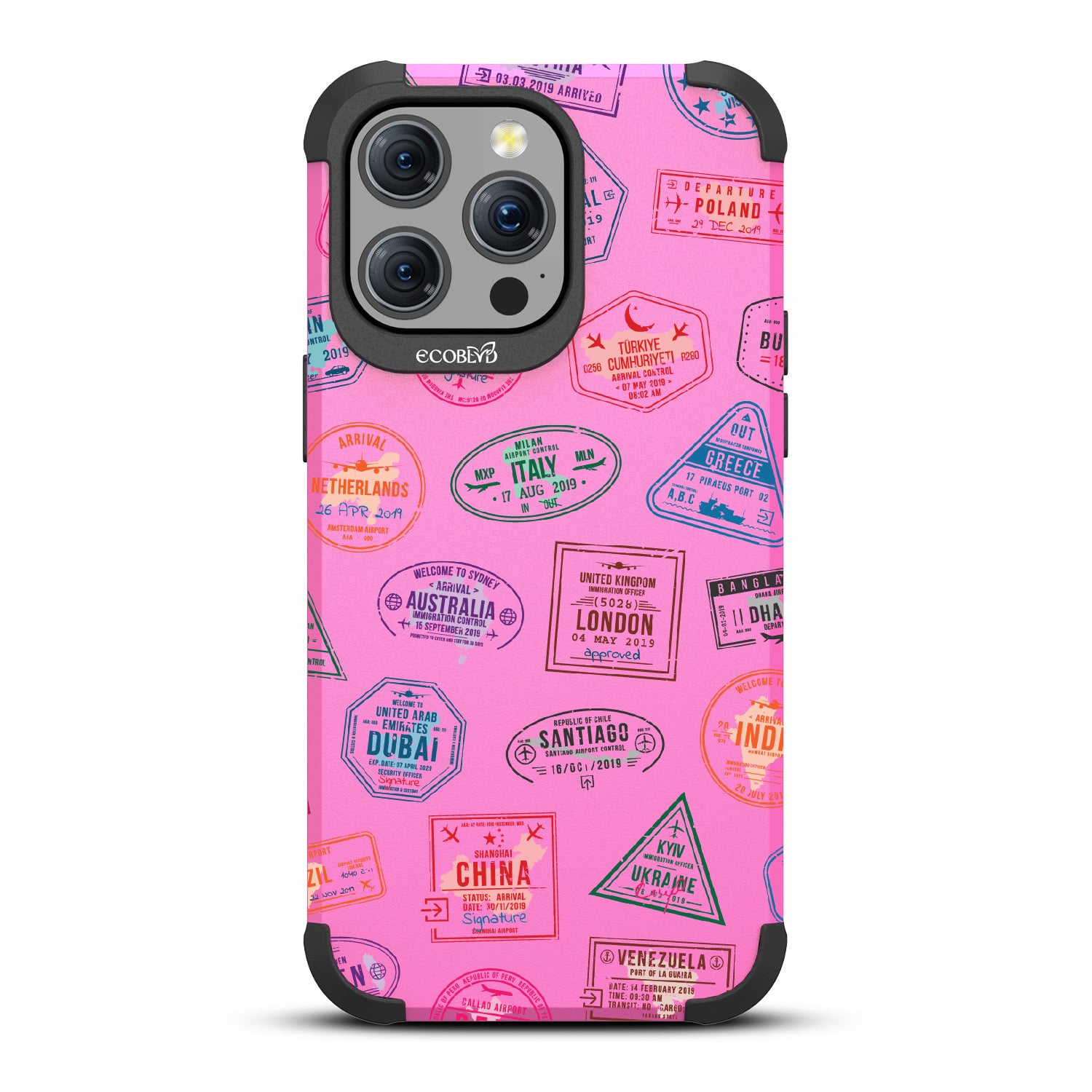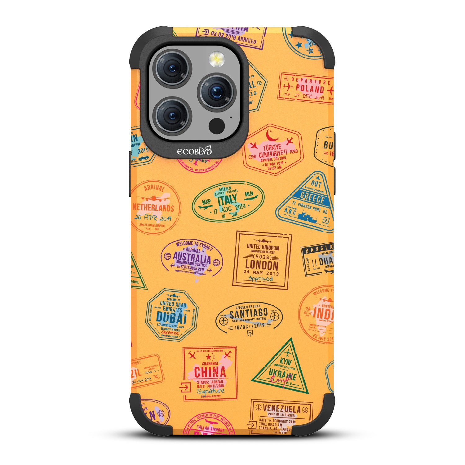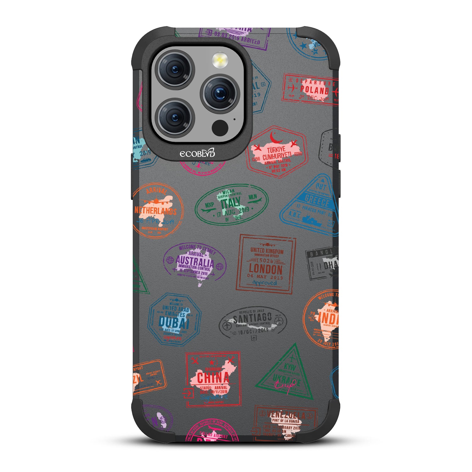 Take your phone on a world tour with the Frequent Flyer design on our Mojave rugged iPhone 15 Pro Max MagSafe case. It’s a jet-setting journey across the globe, with stamps from Sydney to Rome, making every text a postcard from abroad. Gear up your phone with this travel-ready case, and let every call be a new stamp in your passport to adventure.