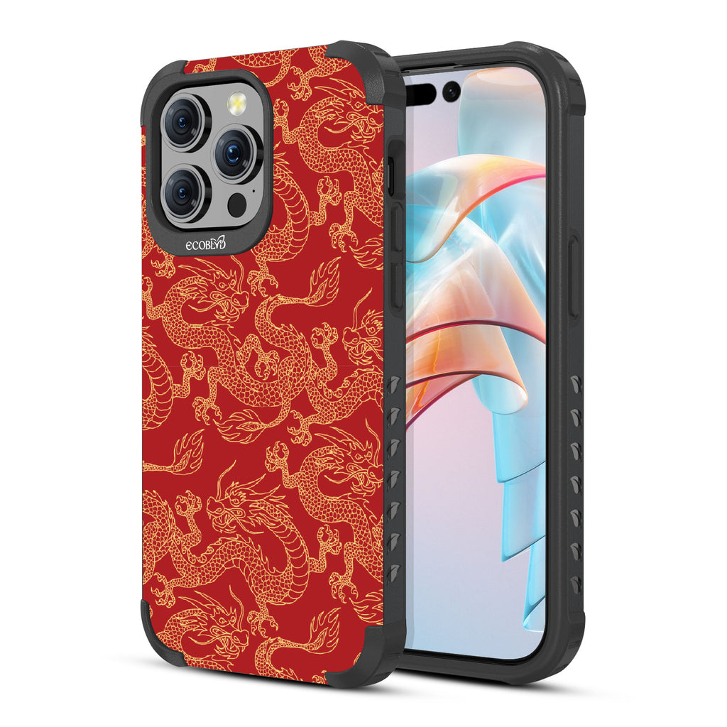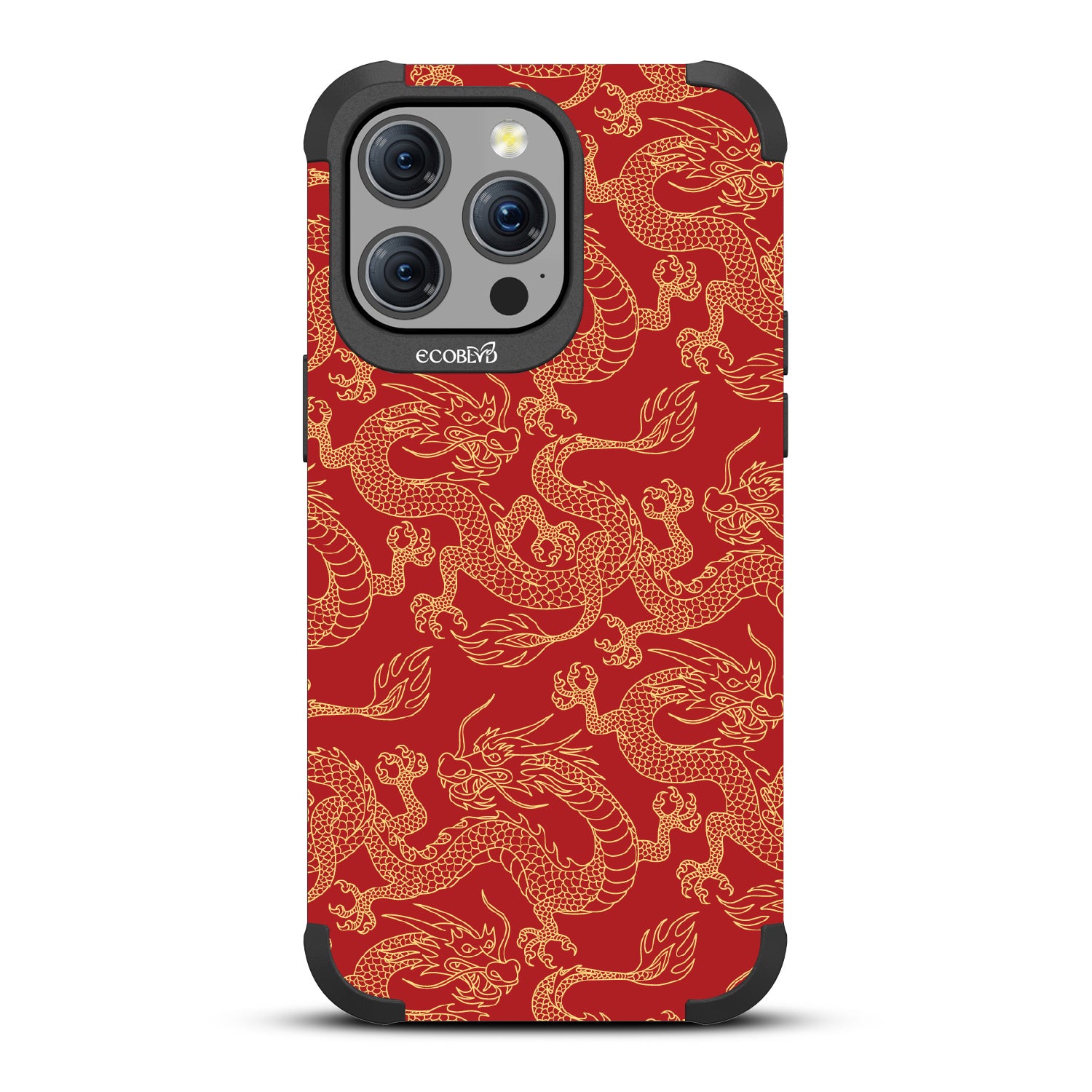 Channel the strength of the Golden Dragon design on our Mojave rugged and compostable iPhone 15 Pro Max MagSafe case, an homage to resilience, wisdom, and prosperity rooted in the age-old stories of Chinese mythology. Carrying this legendary guardian in your pocket becomes a statement of good fortune, bringing luck to every aspect of your day.