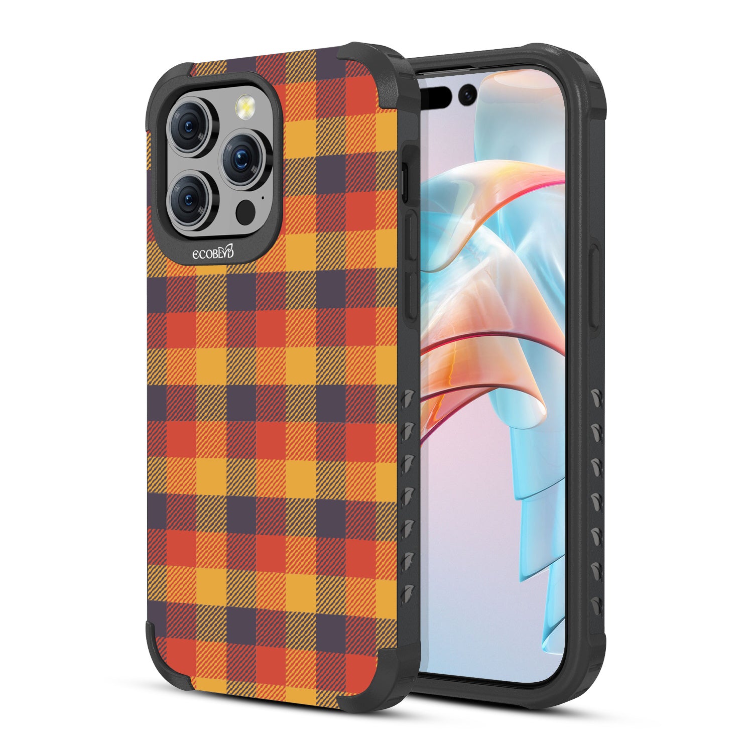 The Maple & Mahogany design on Mojave rugged and compostable iPhone 15 Pro Max case pays homage to the woodworker's art by infusing the spirit of fine wood grains into a classic plaid pattern. With this case on your phone, you'll carry the natural charm of autumn wherever you go. Like the timeless beauty of maple and mahogany, this design elevates your phone to an accessory that captures the warmth and allure of the season.