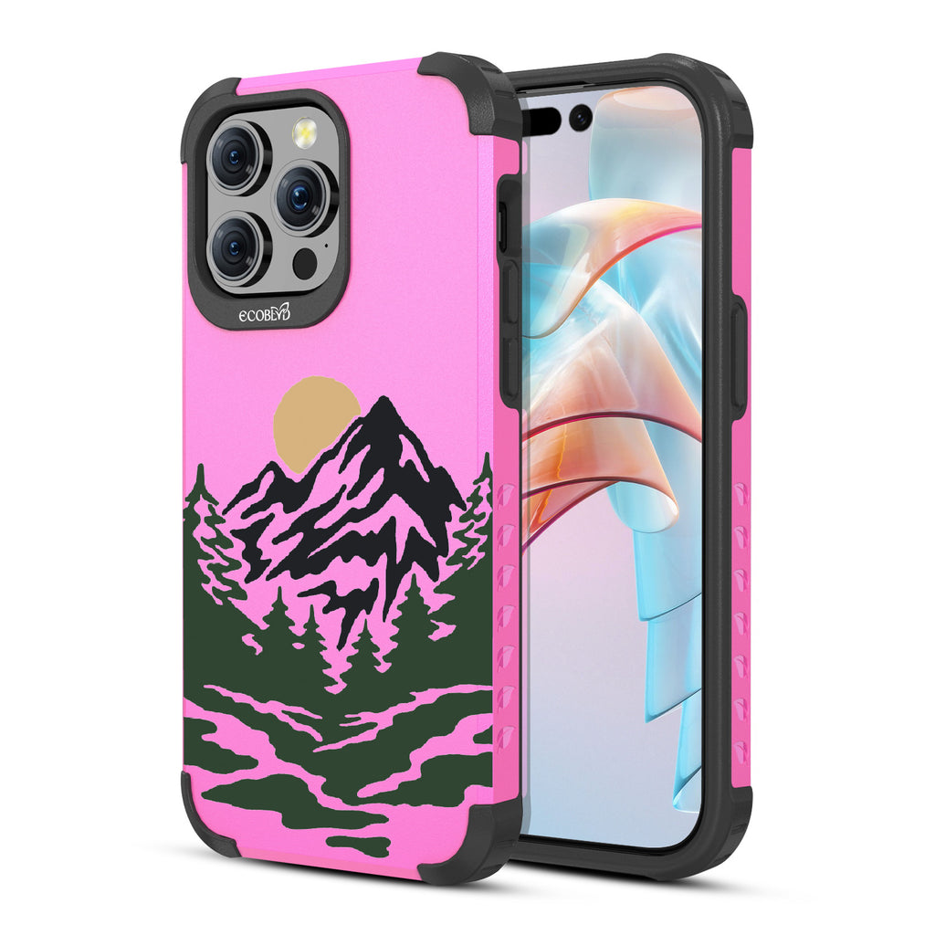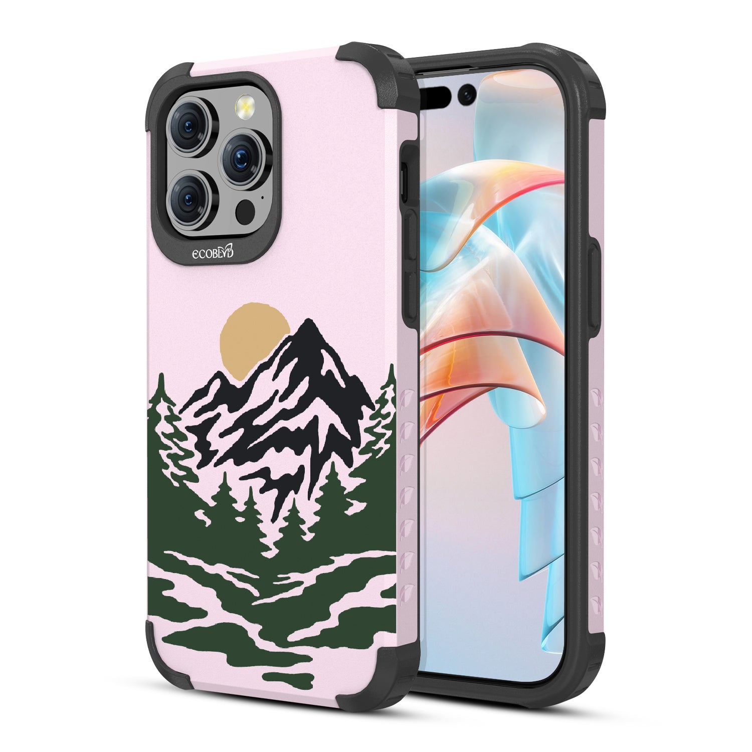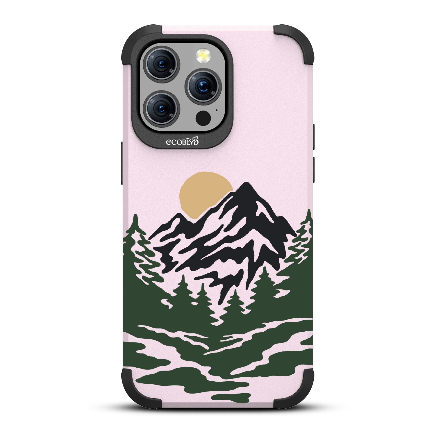 Like a breath of fresh air, the Mountains phone design on our Mojave rugged and compostable iPhone 15 Pro Max case puts your phone in the middle of a stunning moonlit wooded mountain trail that captures the excitement of camping and hiking. Available in five colorways: Midnight Black, Cascade Blue, Wildflower Pink, Illuminating Yellow, and the exclusive Pastel Lilac!