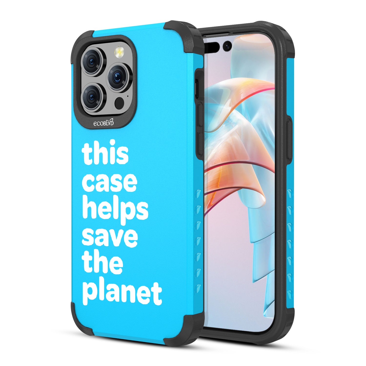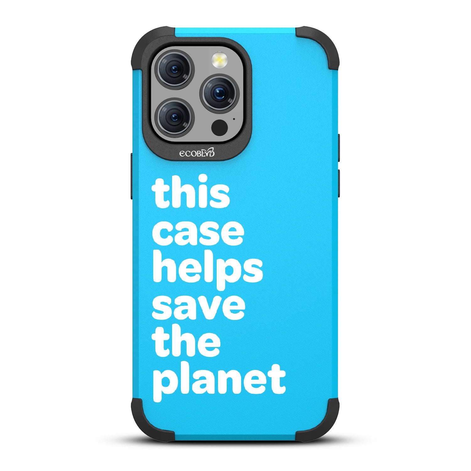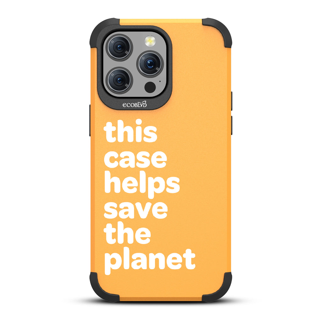 Send a bold message from your phone as the Save The Planet design on our Mojave rugged and compostable iPhone 15 Pro Max case highlights your case's eco-friendly fashion and your commitment to sustainability. Available in five colorways: Midnight Black, Cascade Blue, Wildflower Pink, Illuminating Yellow, and the exclusive Pastel Lilac!