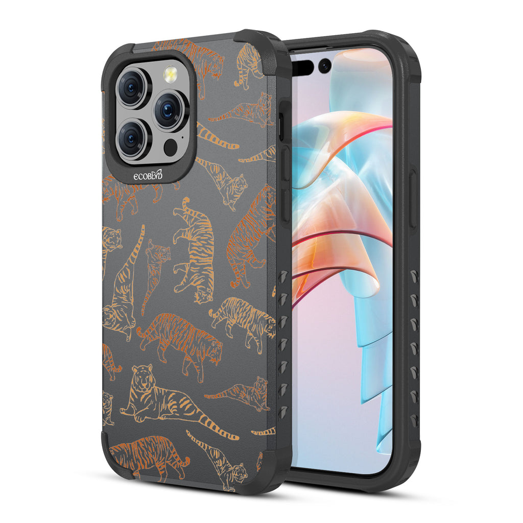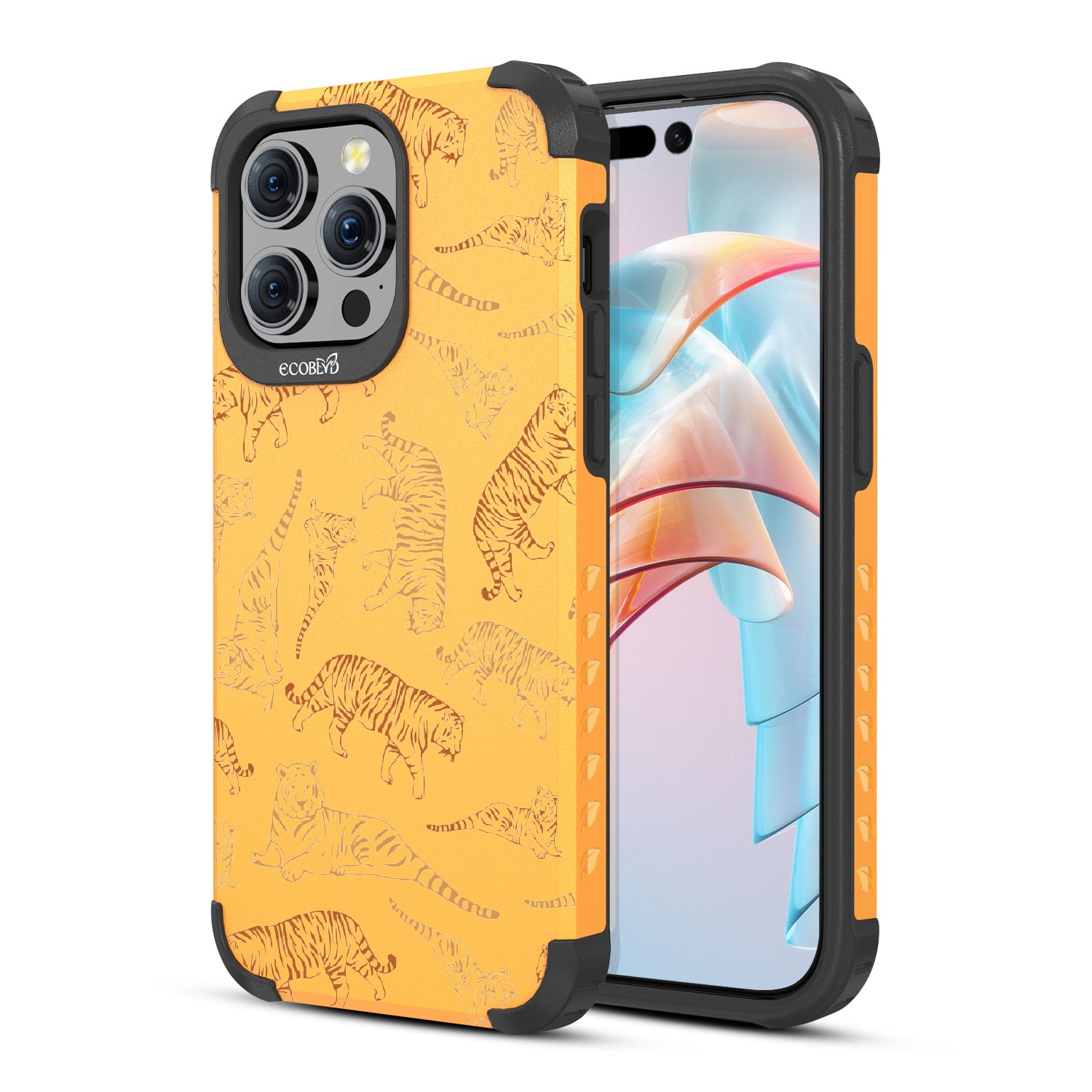 Embrace the untamed allure of the jungle with the Tiger Pride, an exclusive design crafted for the design on our Mojave rugged and compostable iPhone 15 Pro Max case. Let the fierce presence of tigers transport you to a world of unparalleled elegance and strength. Experience the perfect blend of impeccable style and protection while championing ocean conservation efforts. Unleash your party animal instincts and show off your Tiger Pride! With its eye-catching orange and yellow tiger silhouettes, this case adds a touch of playful ferocity to your device, ensuring it becomes the center of attention and the symbol of your wild, fun-loving personality.