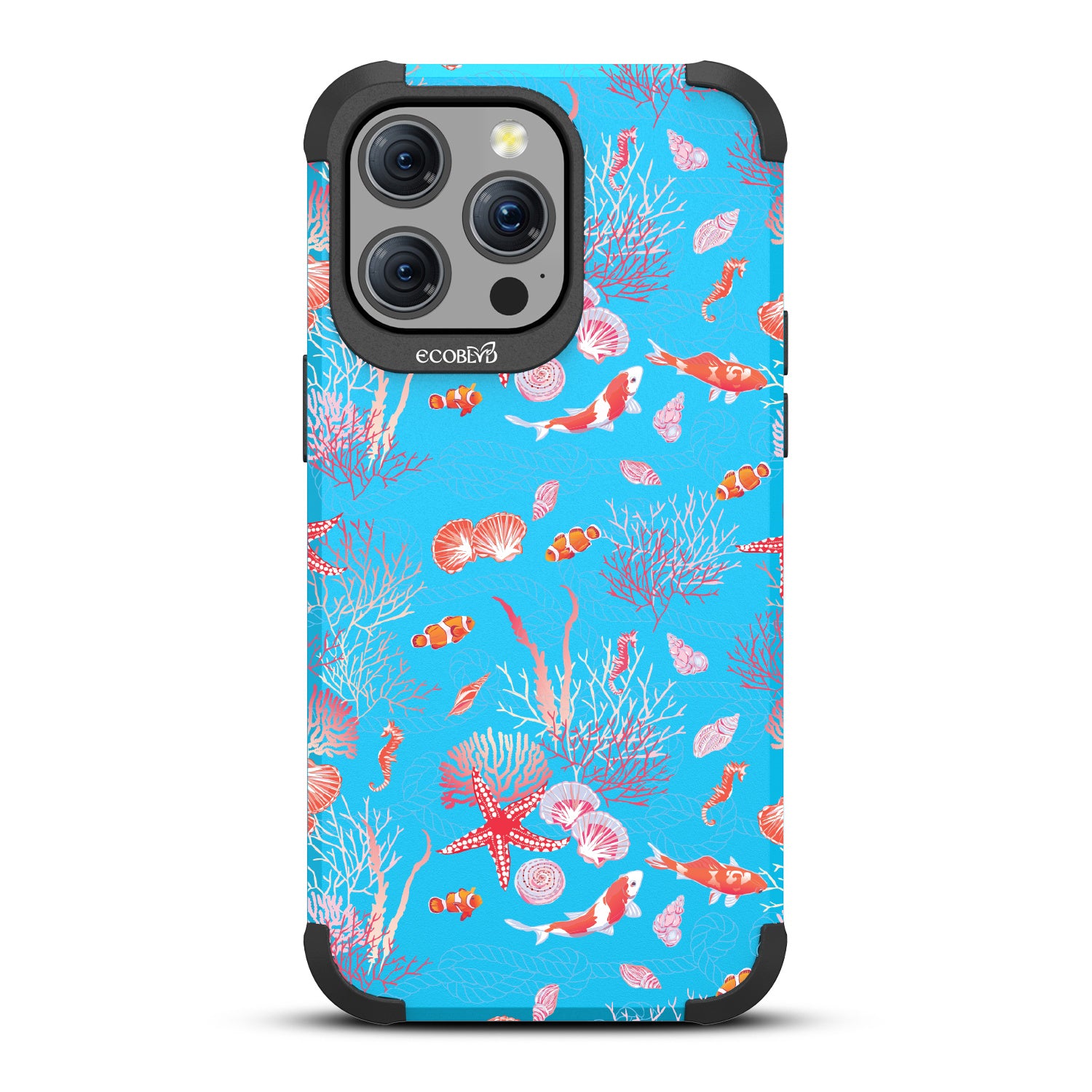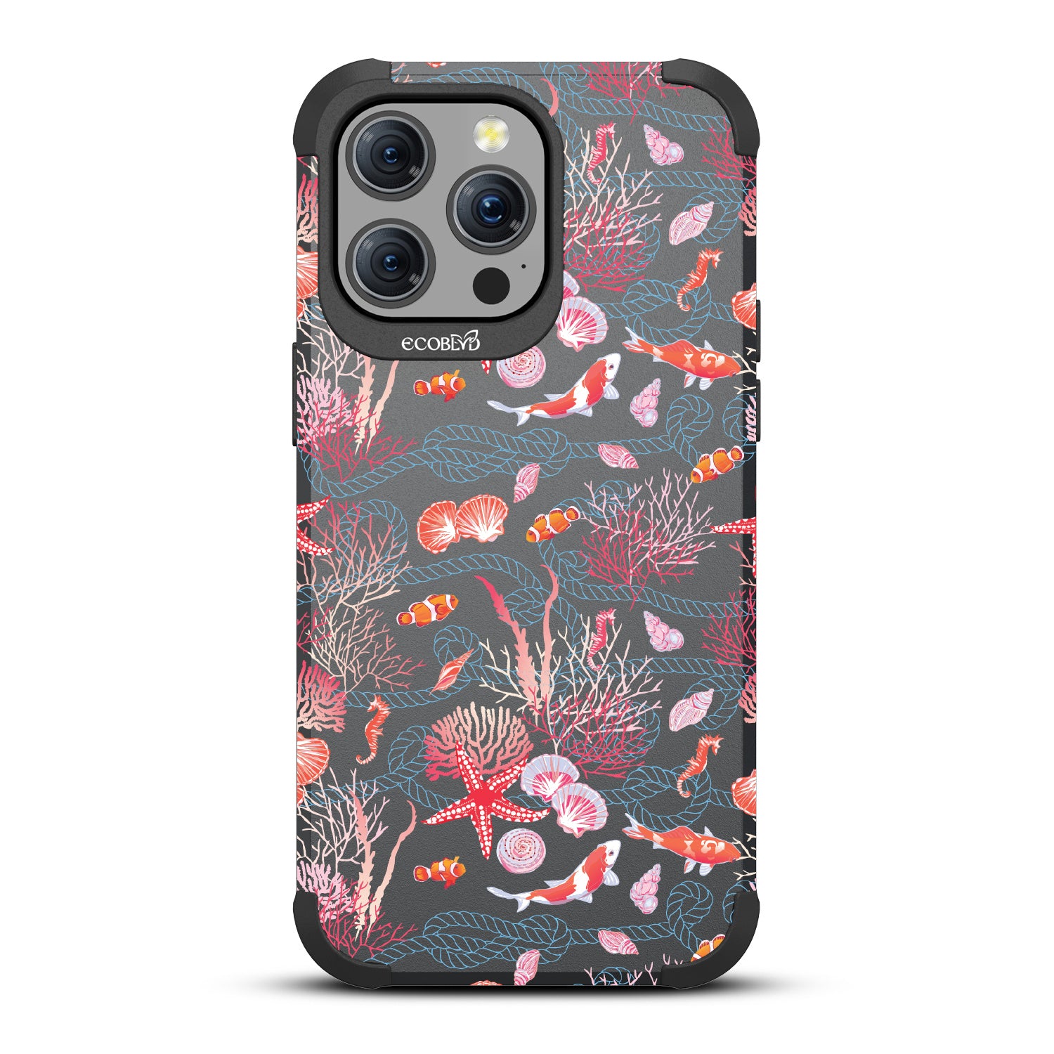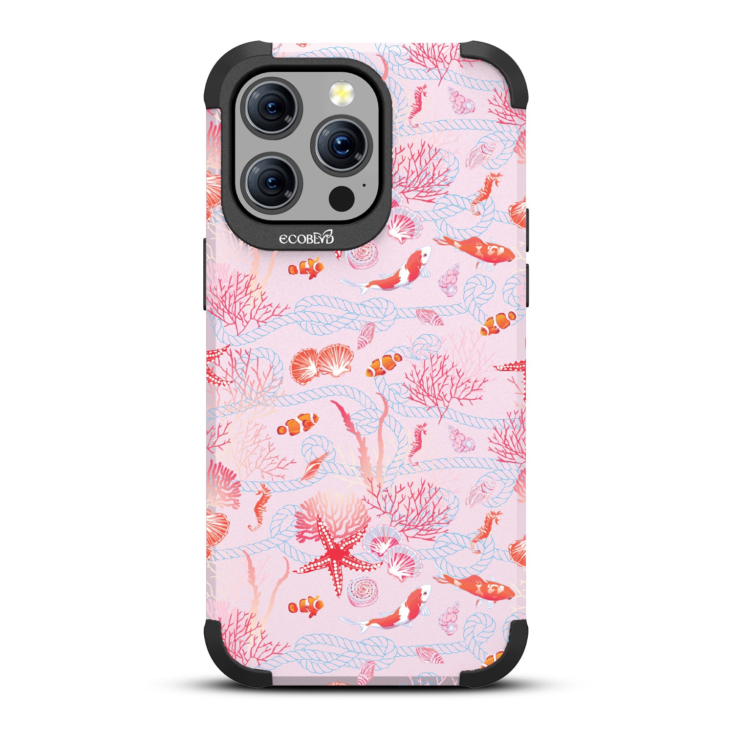 The coral is always brighter, Under the Sea! With this design our Mojave rugged and compostable iPhone 15 Pro Max MagSafe case, you'll see, your phone’s full of glee, under the sea! Coral and critters, they all come together, swirling in hues, pinks, and blues, where life’s better wetter, take it from me! Your phone will be dancing, twirling, and prancing, carrying the magic of the ocean so fancy! So let your phone be, full of joy and glee, under the sea.
