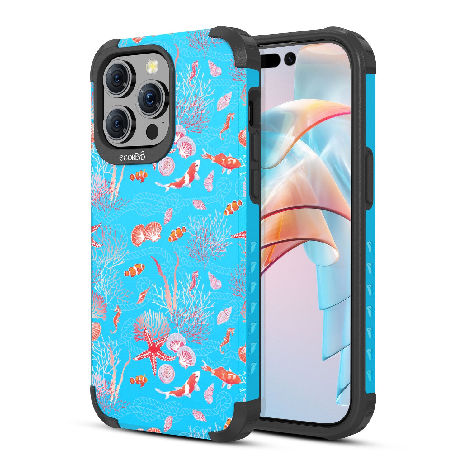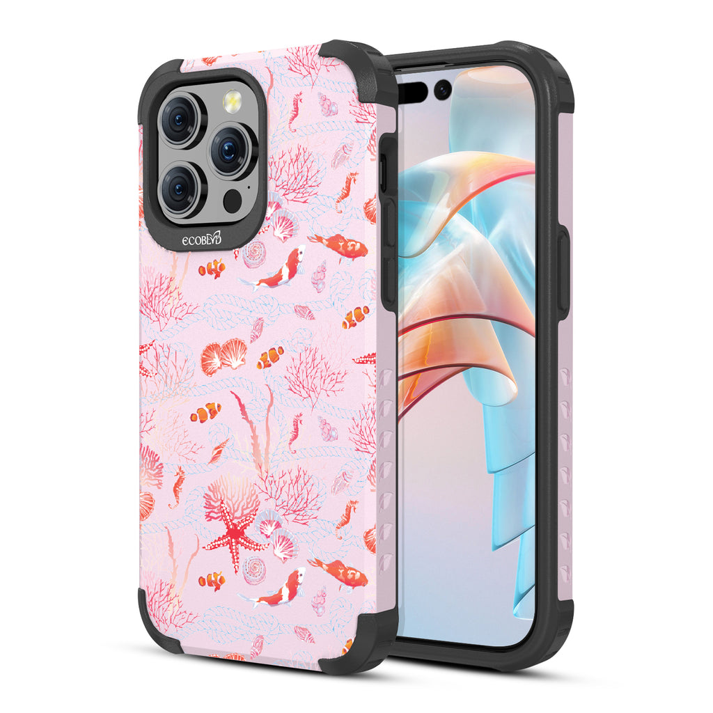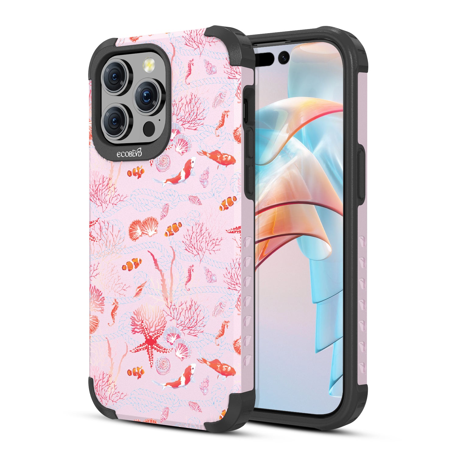 The coral is always brighter, Under the Sea! With this design our Mojave rugged and compostable iPhone 15 Pro Max MagSafe case, you'll see, your phone’s full of glee, under the sea! Coral and critters, they all come together, swirling in hues, pinks, and blues, where life’s better wetter, take it from me! Your phone will be dancing, twirling, and prancing, carrying the magic of the ocean so fancy! So let your phone be, full of joy and glee, under the sea.