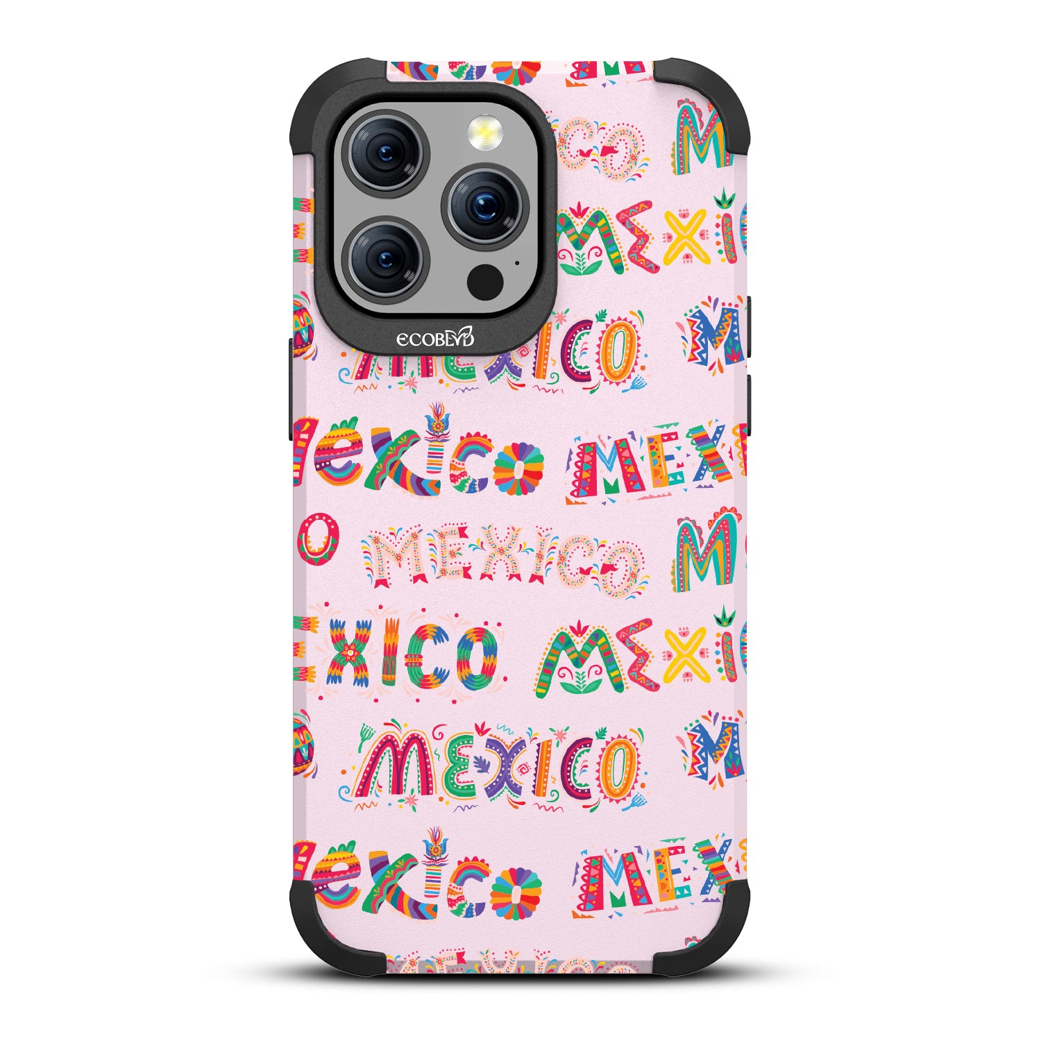 Celebrate the heart of Mexico with the 'Viva Mexico' design on our Mojave rugged iPhone 15 Pro Max MagSafe case, a dynamic homage to the nation's rich cultural tapestry. Just like the festive murals that adorn the streets of Oaxaca, each letter is a reflection of Mexico's soulful artistry, traditions and culture, inviting you to carry a piece of its vibrant history wherever you go.