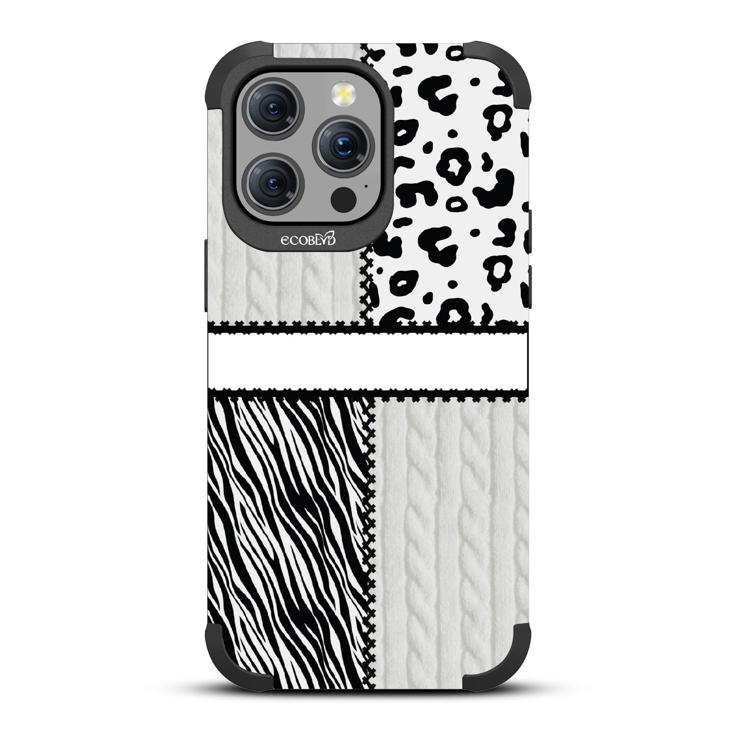 Let your phone run free with the Wild Style on our Mojave rugged and compostable iPhone 15 Pro Max case. It's where untamed cheetah spots and fierce zebra stripes join forces with cozy cable knit. The central white ribbon not only ties them together but also tames the wildness, creating a fashion fusion that's as unexpected as it is fabulous.