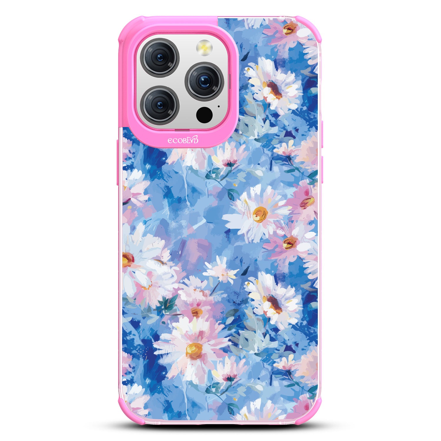 It’s a breeze really. The Blown Away design on our Laguna clear iPhone 15 Pro Max case sends soft daisy petals swirling across layered blue strokes, like a gust caught mid-canvas. Each pastel bloom feels weightless but intentional—an airy moment you can hold onto.