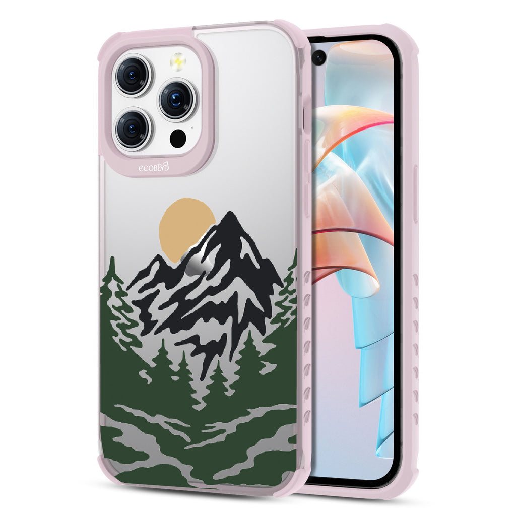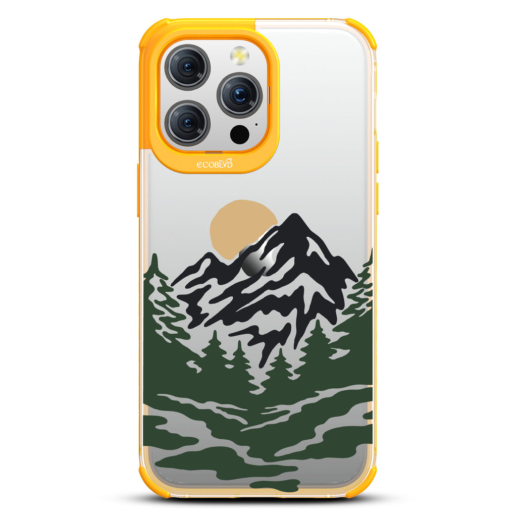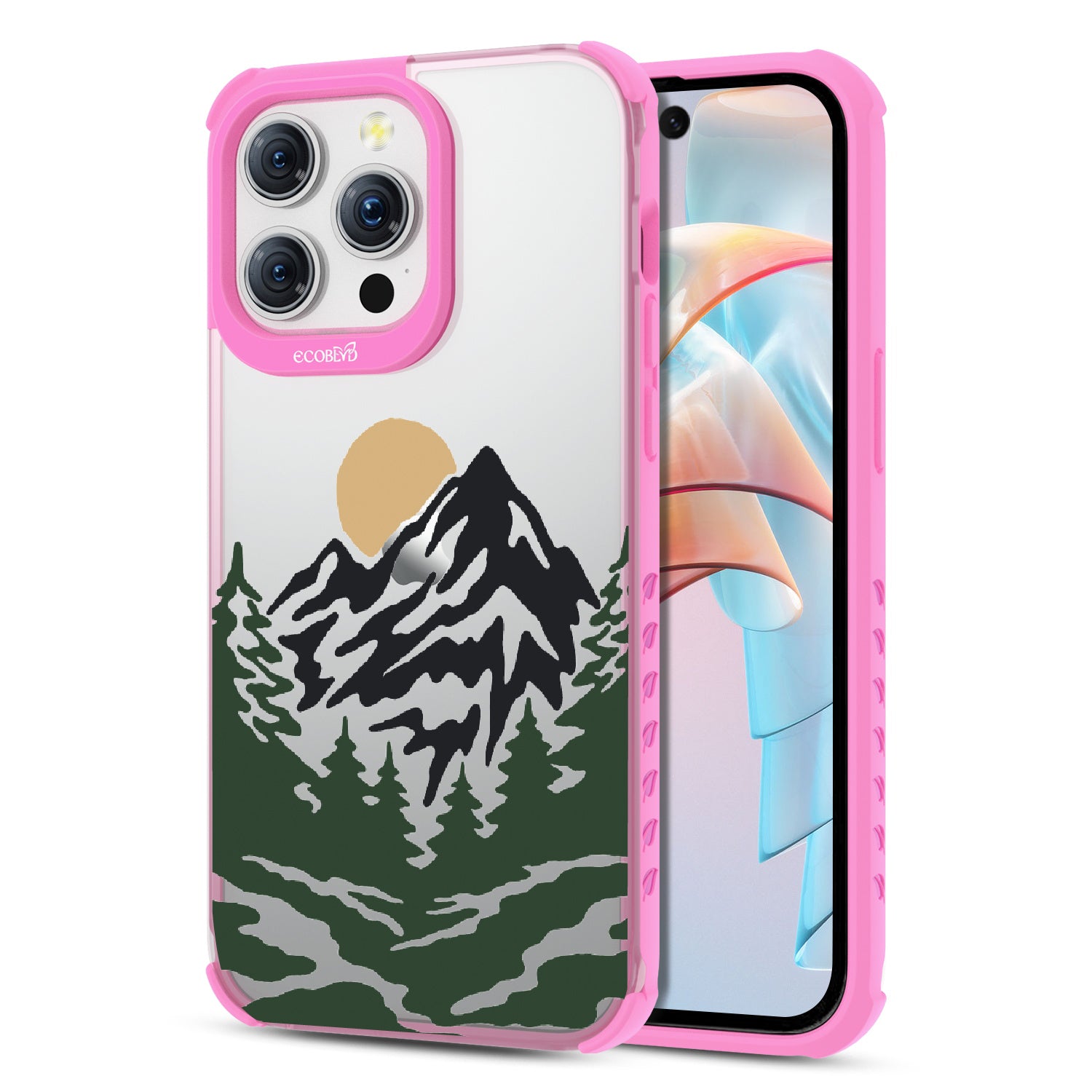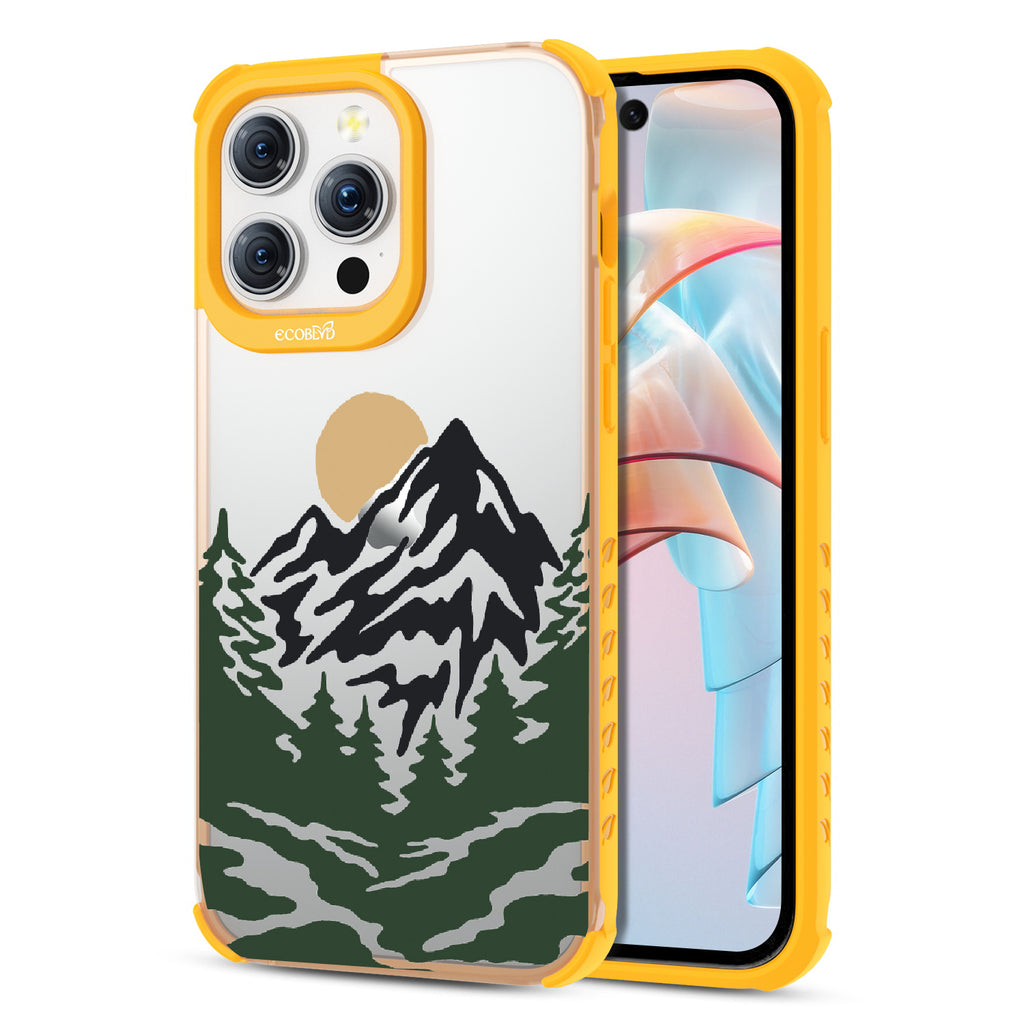 As a tribute to the natural beauty of our coastal waters, estuaries, and wetlands, the Laguna clear iPhone 15 Pro Max phone case highlights this beauty by adding a splash of color while keeping the rest of the case crisp and clear like ocean waves. Like a breath of fresh air, the Mountains phone case design puts your iPhone 15 Pro Max in the middle of a stunning nighttime wooded mountain trail that captures the excitement of camping and hiking in five vibrant colors: Midnight Black, Cascade Blue, Pasetl Lilac, Illuminating Yellow, and Wildflower Pink.