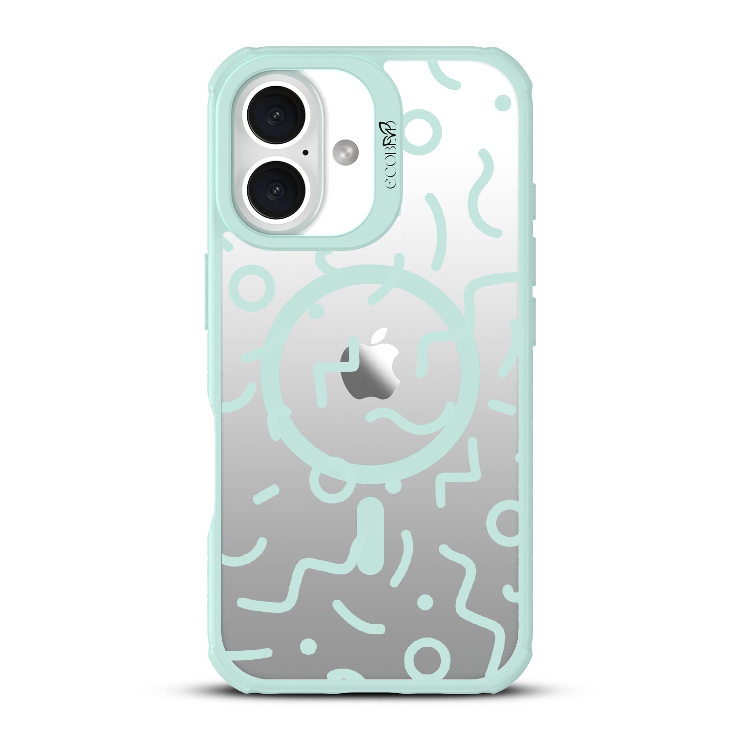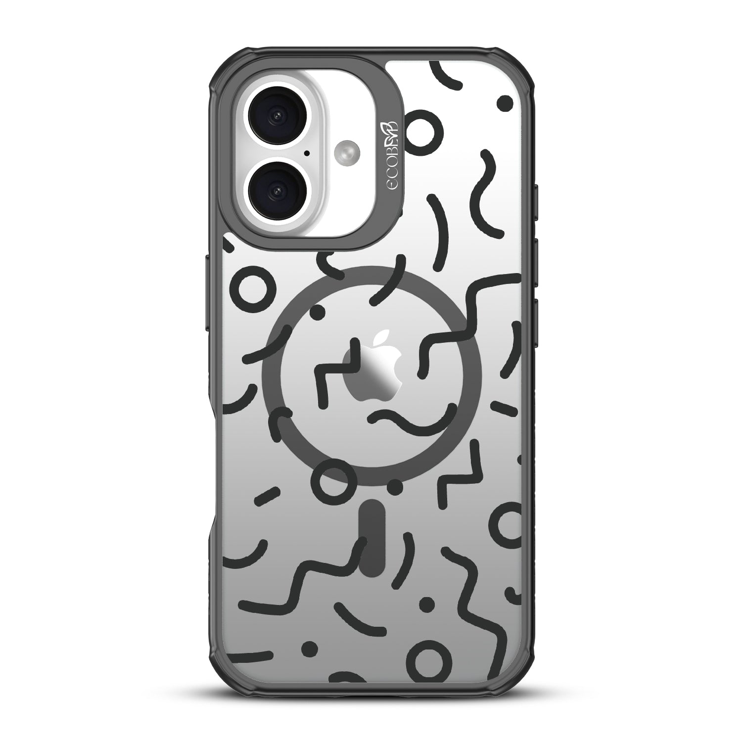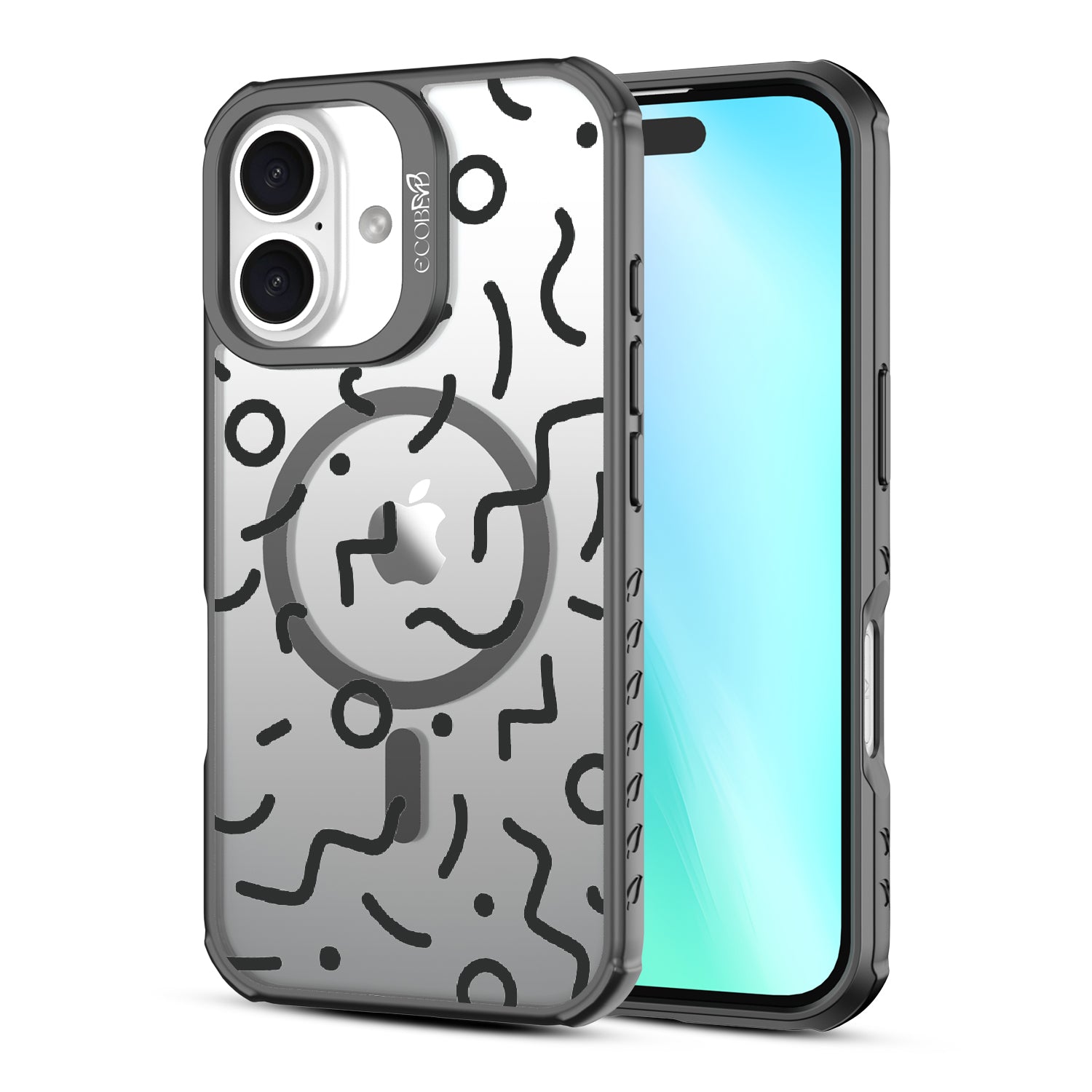 Experience a nostalgic blast from the past on our Revive clear iPhone 16 phone case - with a 90's-themed design that offers style and protection while supporting ocean conservation efforts. The 90's Kids design features bold, wavy, and squiggly lines and circles.