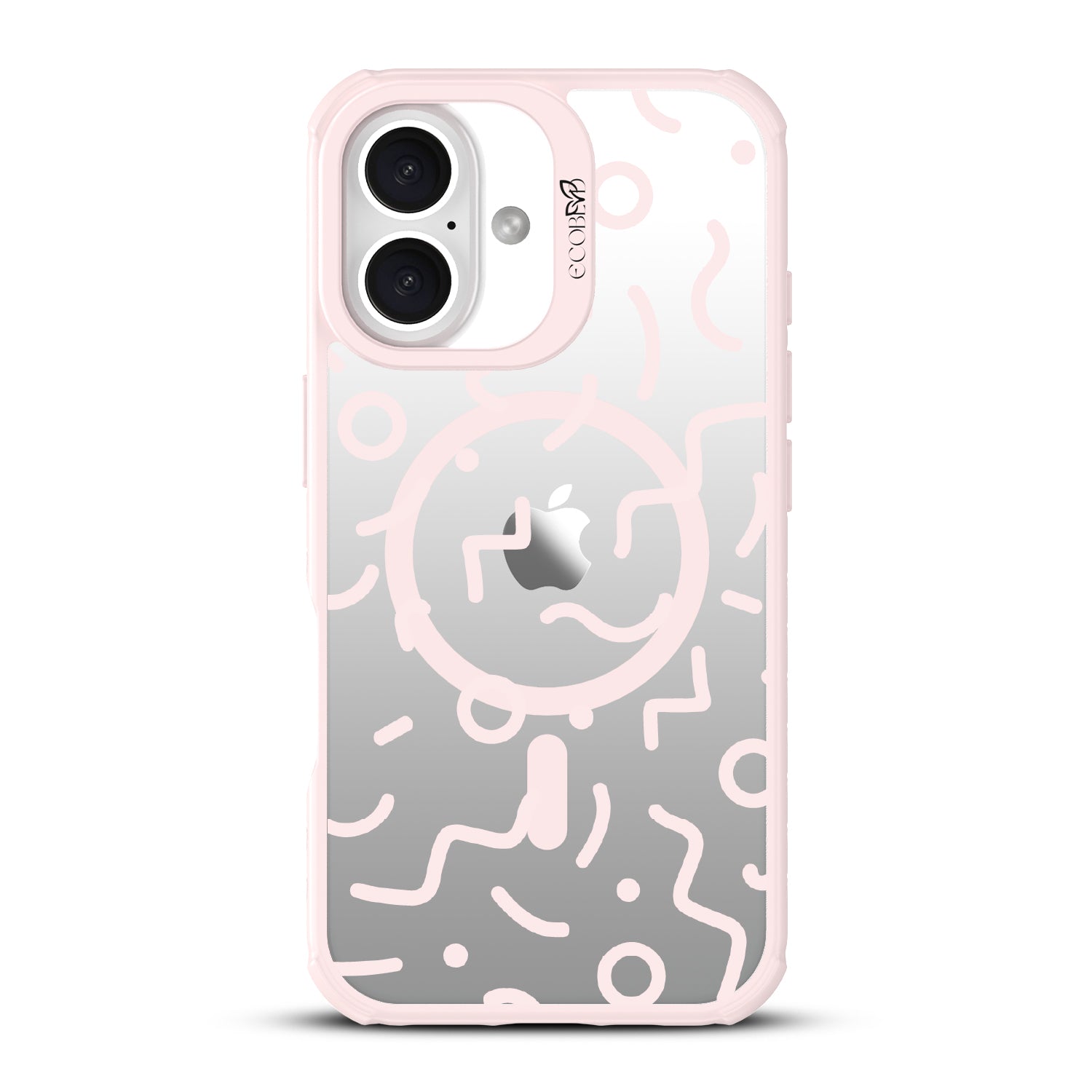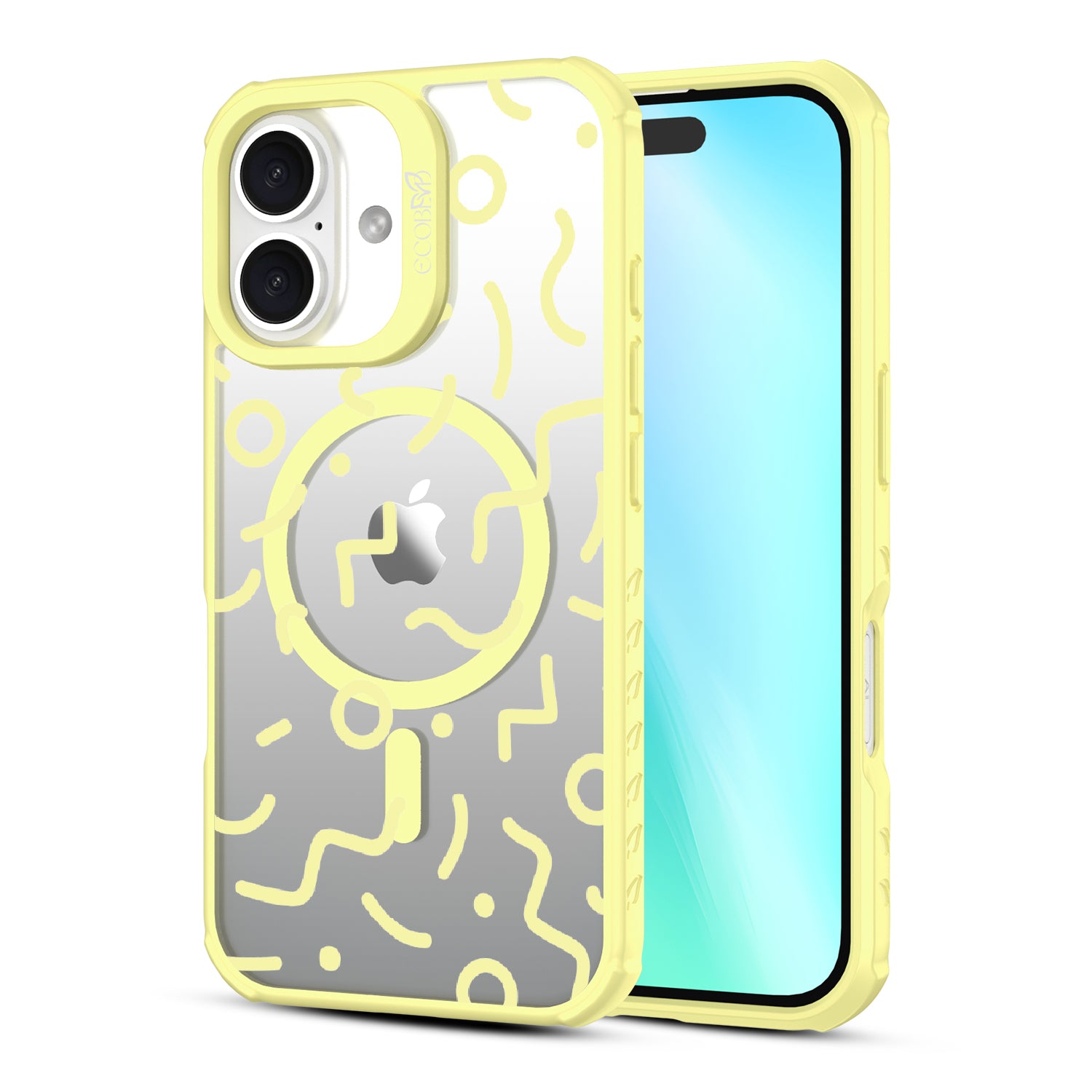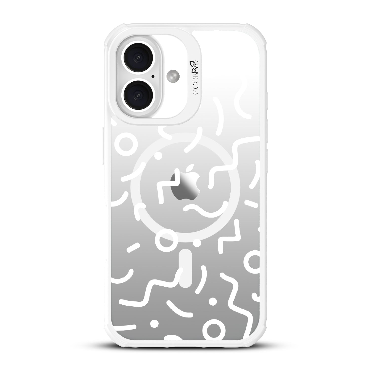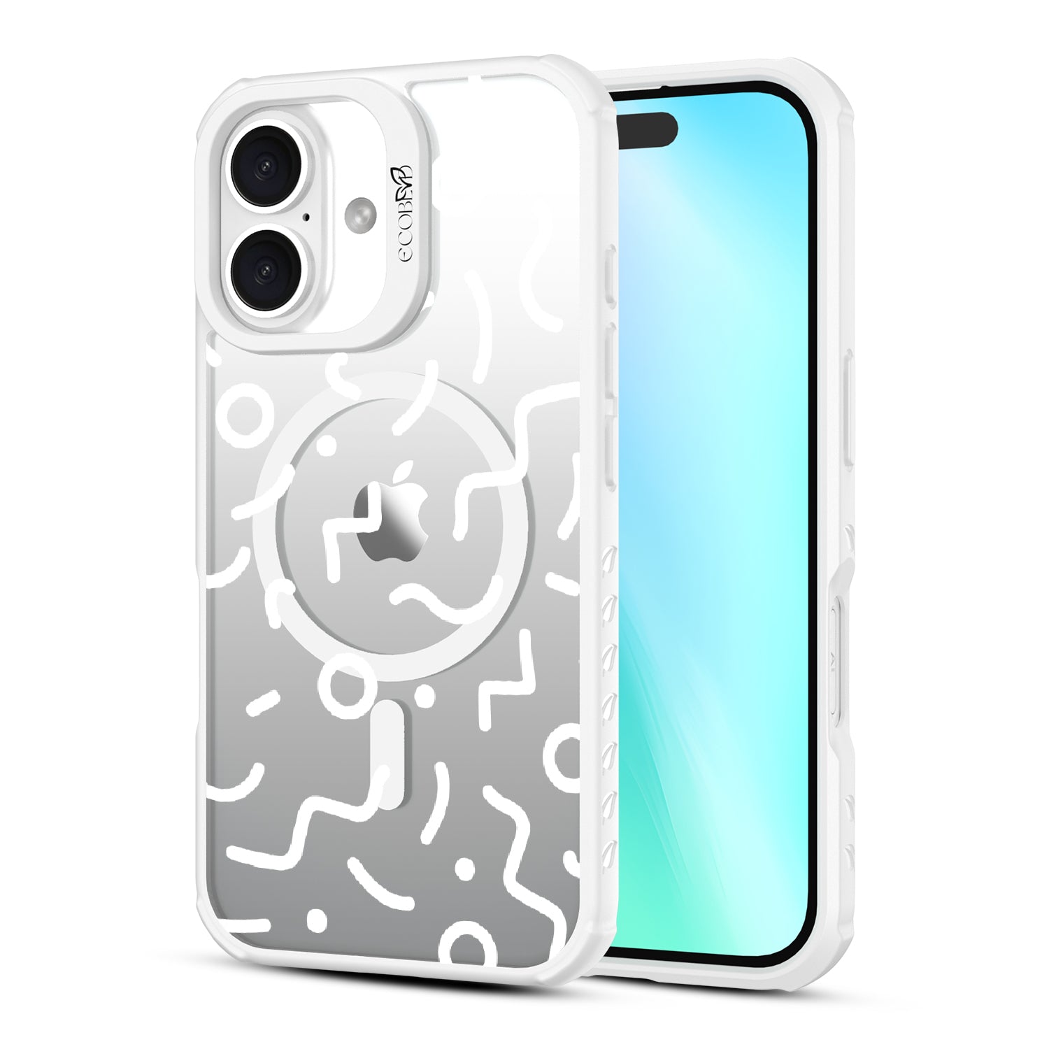 Experience a nostalgic blast from the past on our Revive clear iPhone 16 phone case - with a 90's-themed design that offers style and protection while supporting ocean conservation efforts. The 90's Kids design features bold, wavy, and squiggly lines and circles.