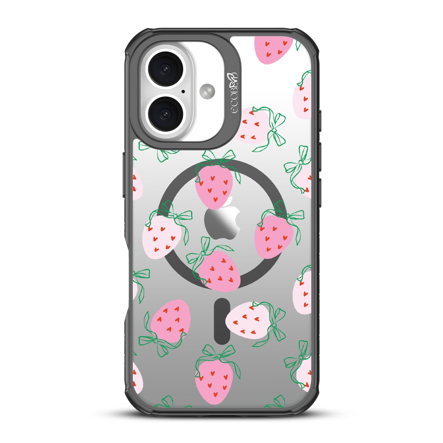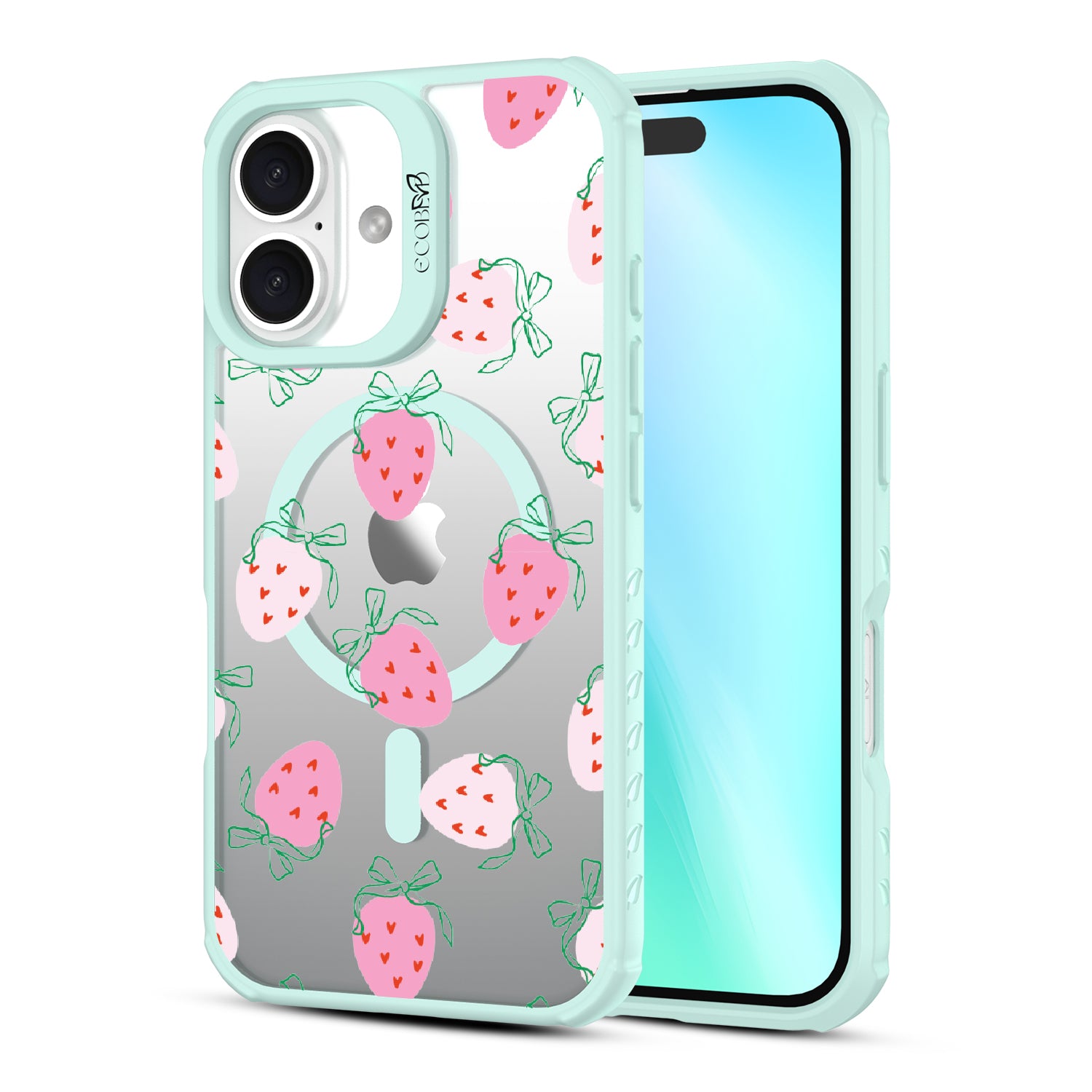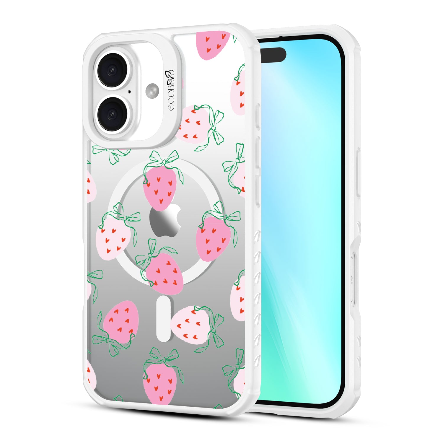 The Berry Cute design on our Revive clear iPhone 16 phone case lives up to its name with luscious strawberries and coquettish bows, giving your phone a picked-for-you look. This pattern brings a touch of playful femininity, perfect for any coquette girl. Sweeten things up and show off a truly juicy style. Grab the Berry Cute case and let your phone be the berry best!