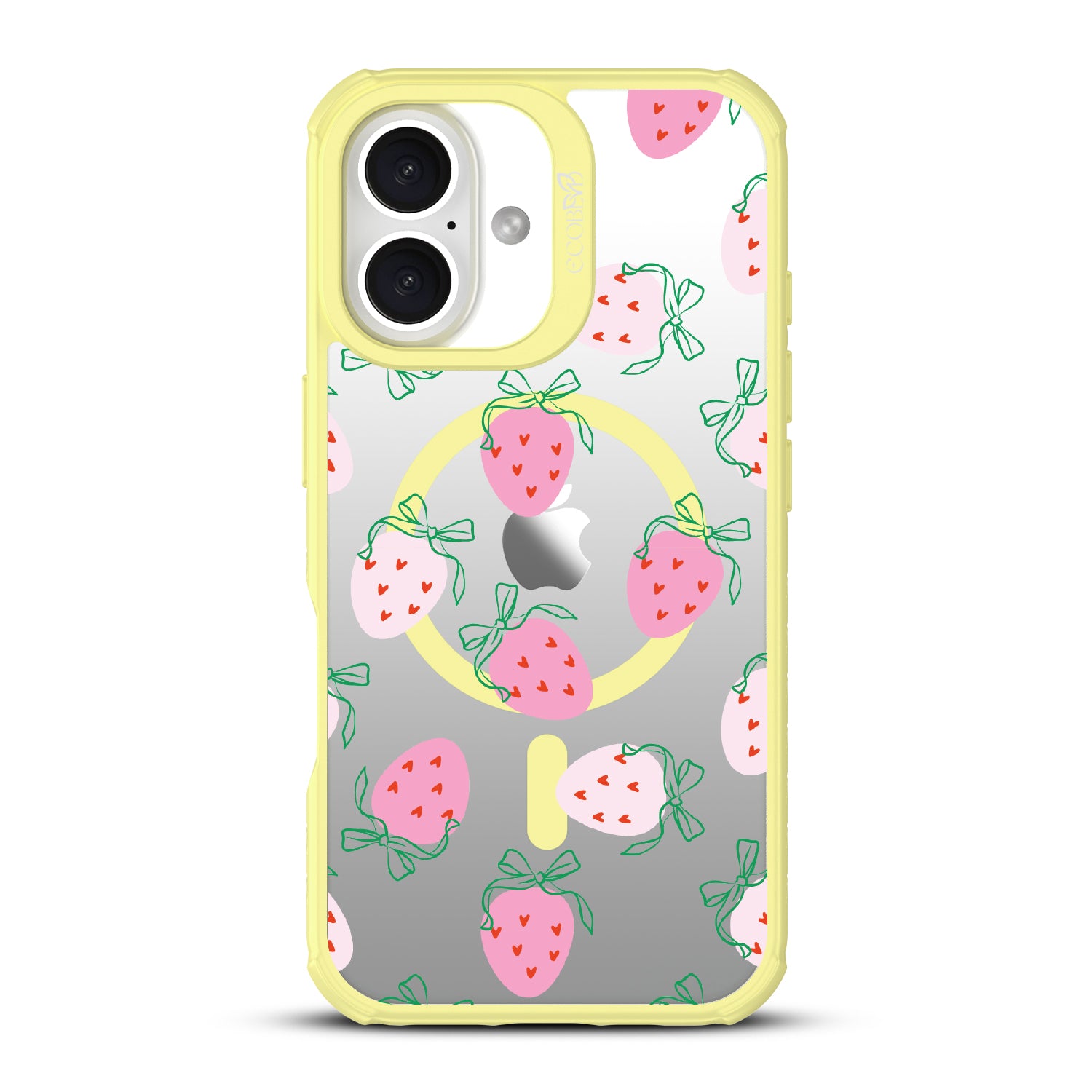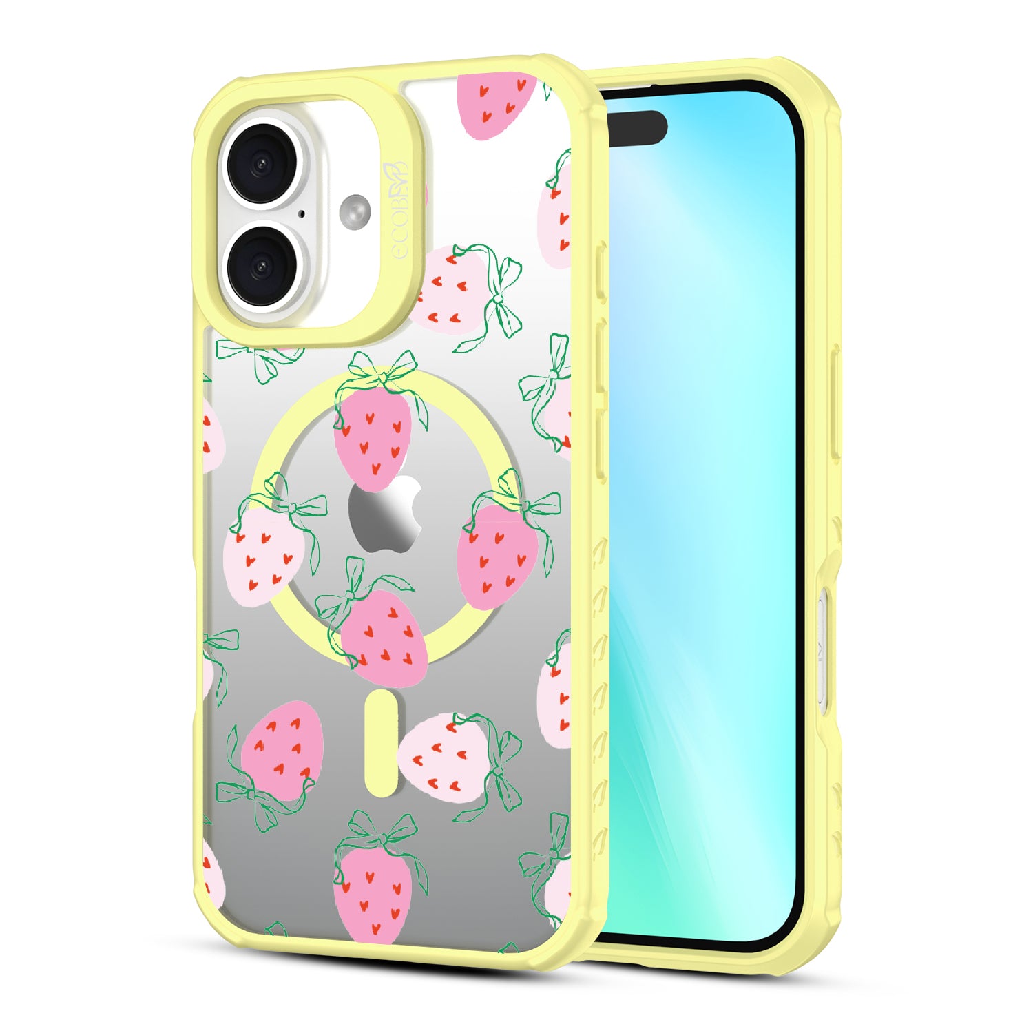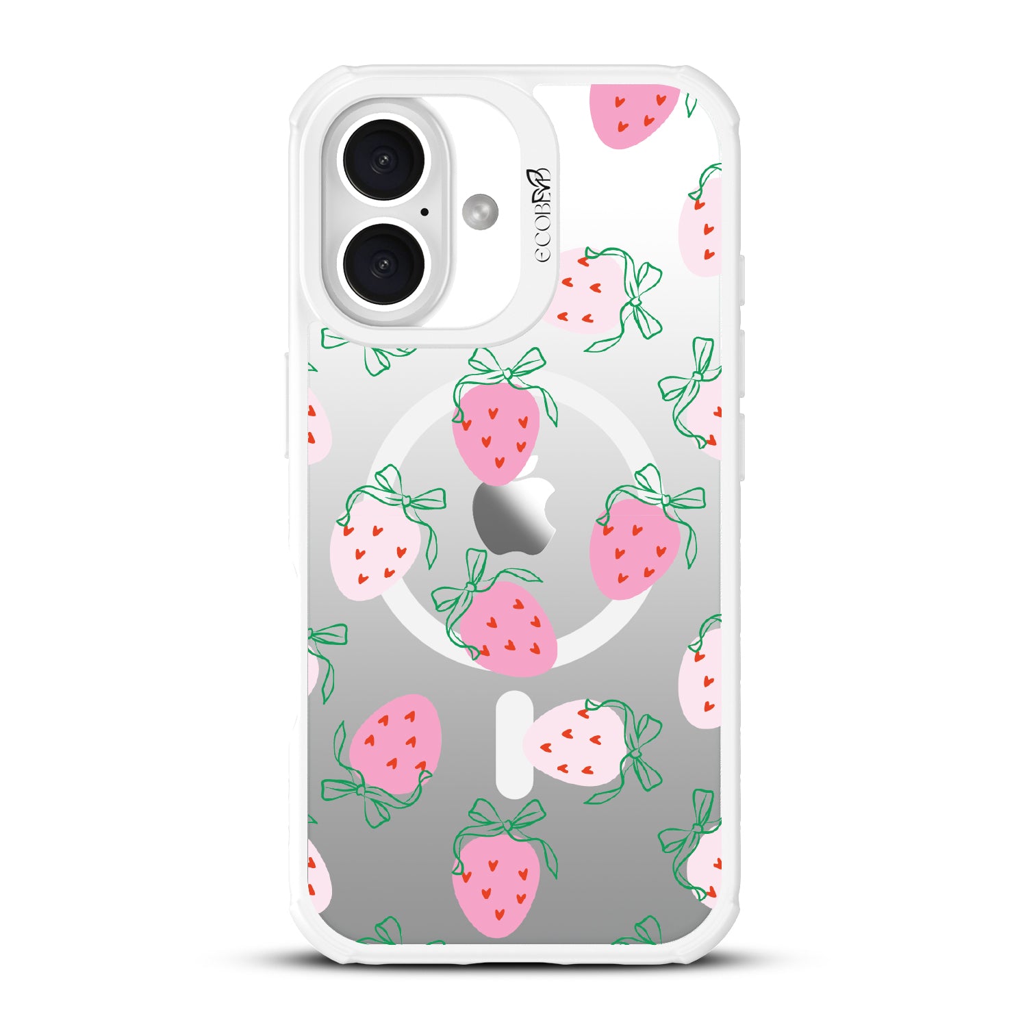The Berry Cute design on our Revive clear iPhone 16 phone case lives up to its name with luscious strawberries and coquettish bows, giving your phone a picked-for-you look. This pattern brings a touch of playful femininity, perfect for any coquette girl. Sweeten things up and show off a truly juicy style. Grab the Berry Cute case and let your phone be the berry best!