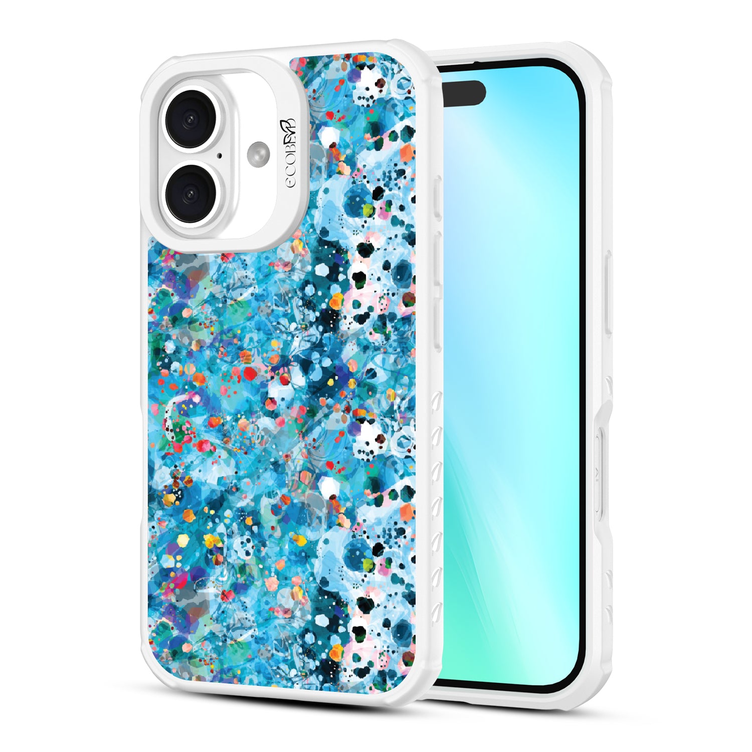 The tide rolls in, leaving something new behind. The Brushed By The Tide design on our Revive clear iPhone 16 case swirls in deep blues and scattered flecks of color, like treasures left along the shore. A composition shaped by movement, light, and the sea’s natural artistry.