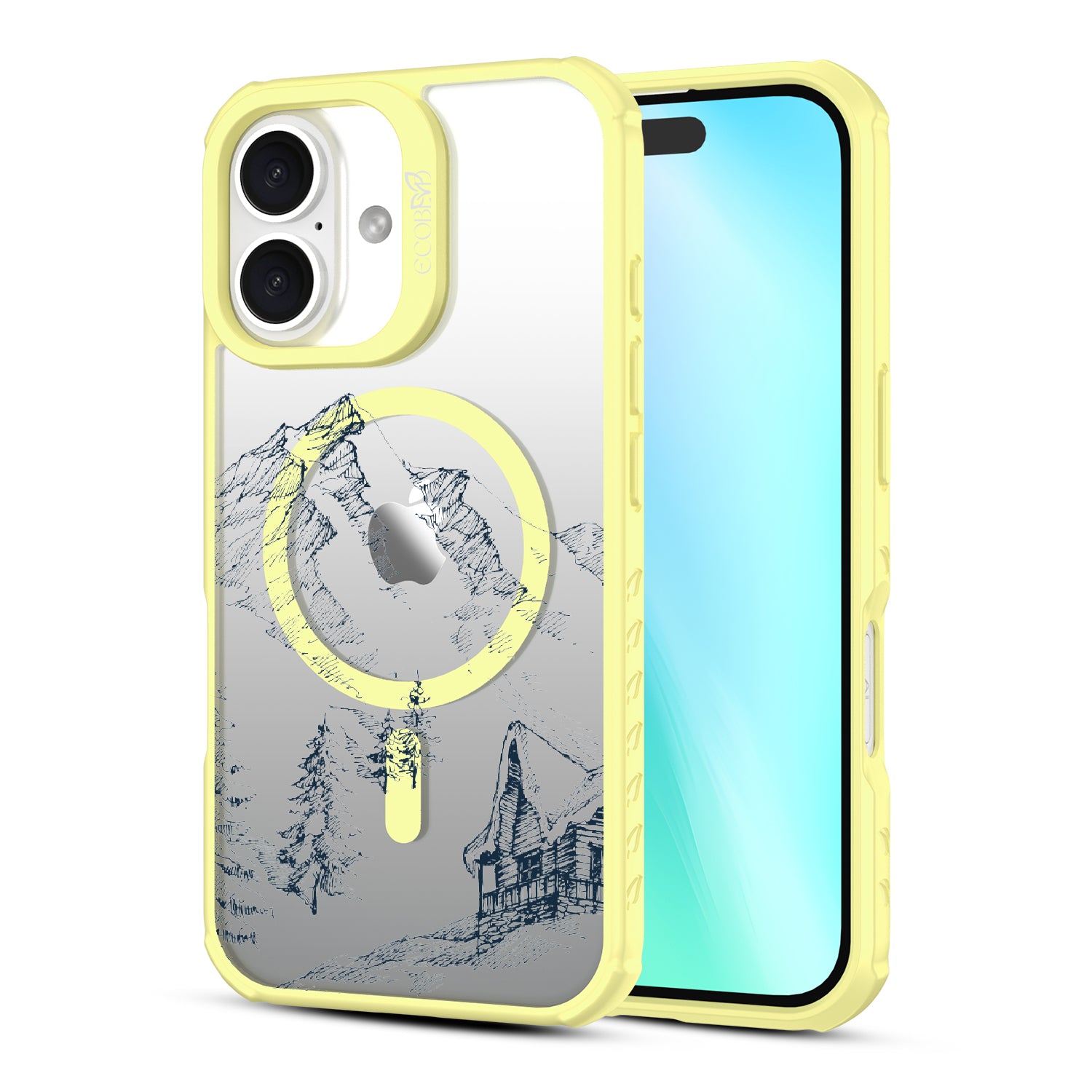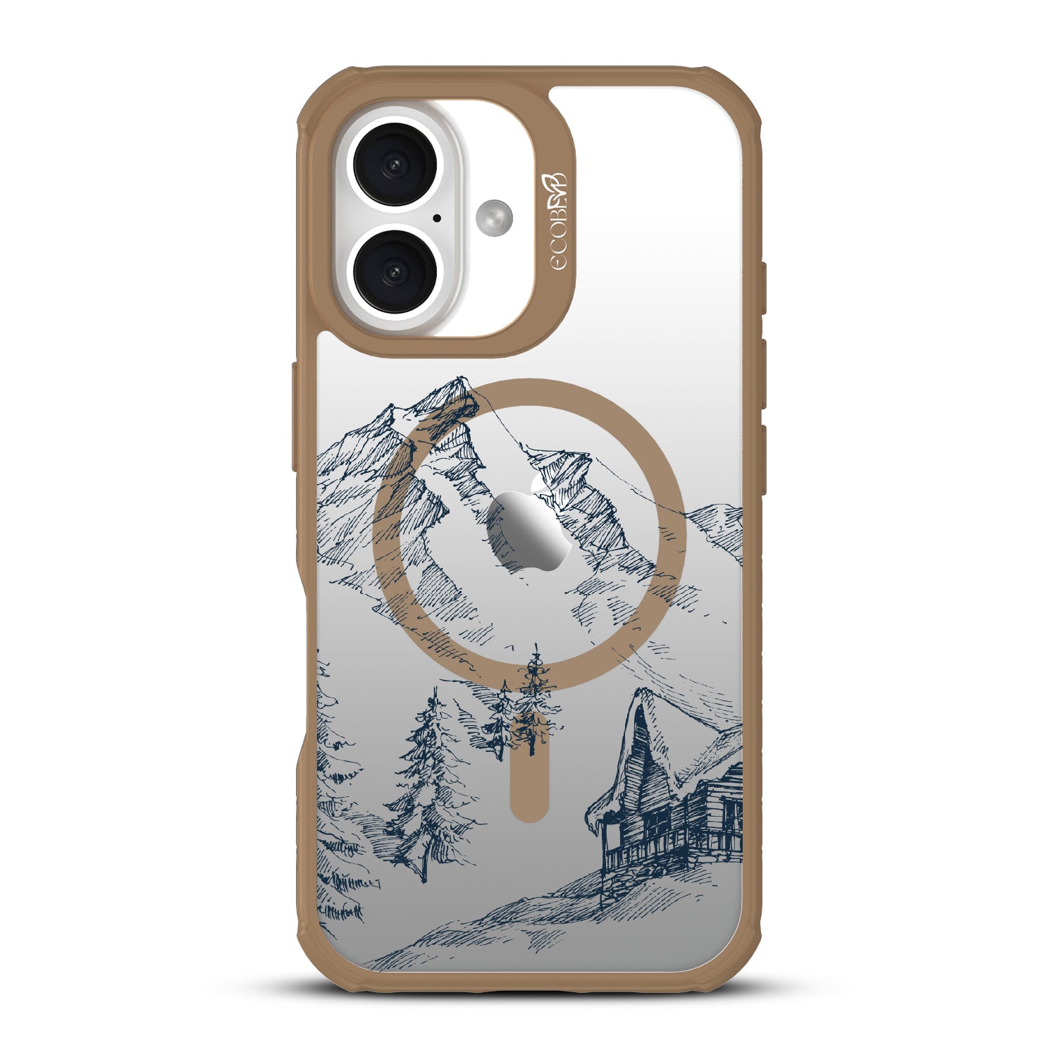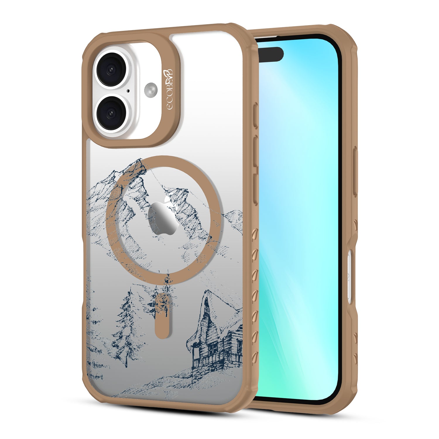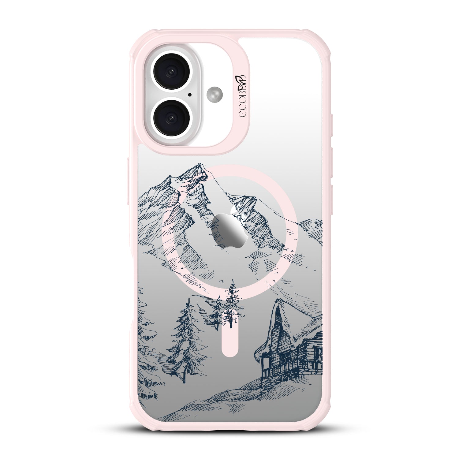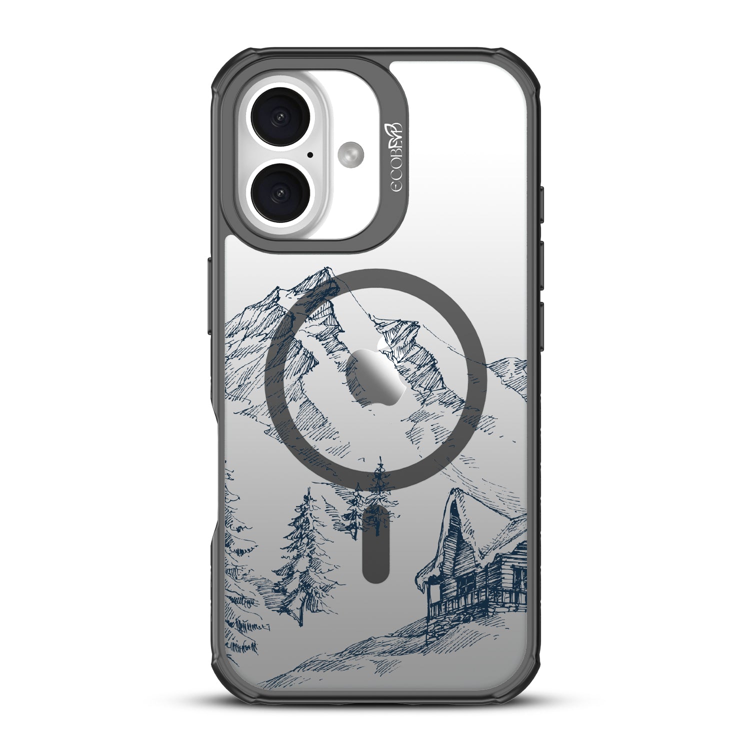 Enjoy an off-grid mountainside getaway right from your phone with the Cabin Retreat design on our Revive clear iPhone 16 phone case, as the hillside and snow-capped view provide an escape.