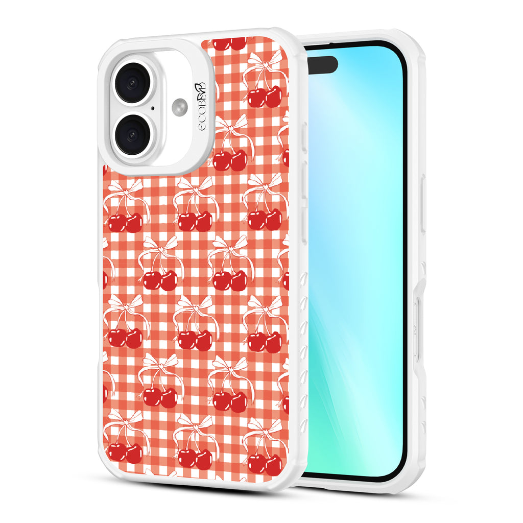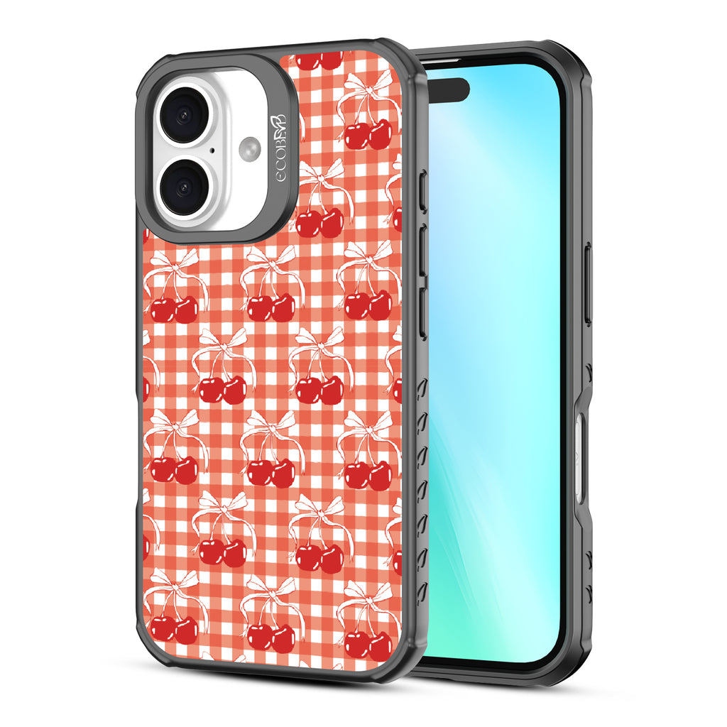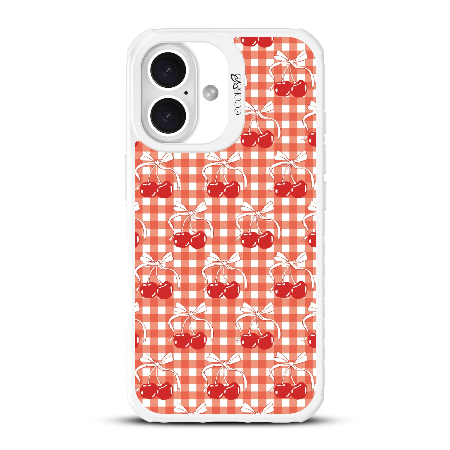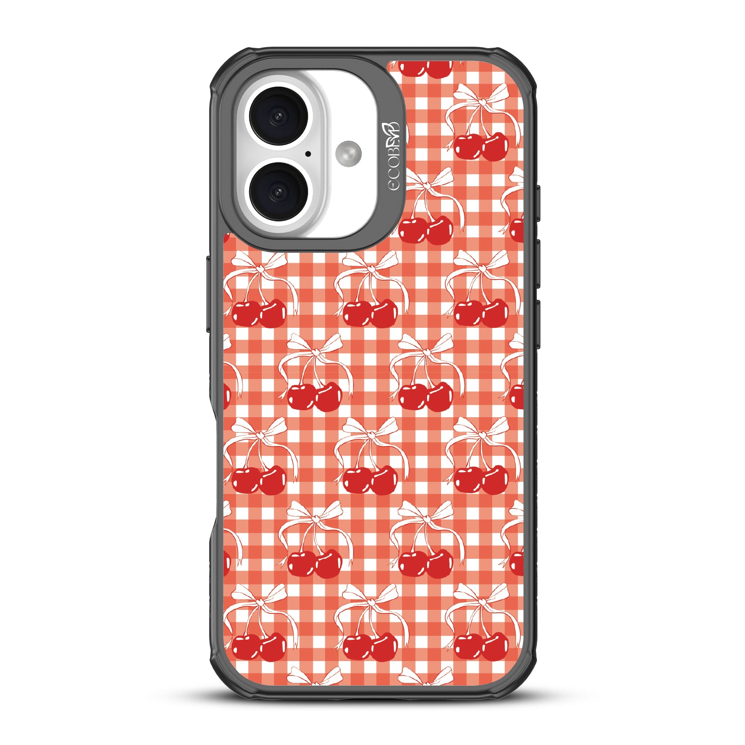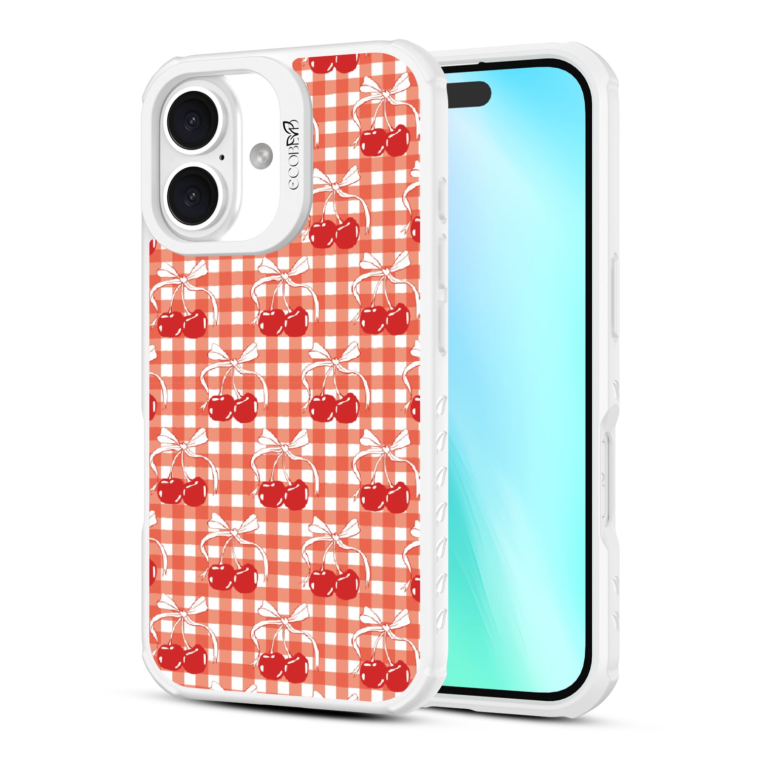 Indulge in a slice of Americana with the Cherry Picnic design on our Revive clear iPhone 16 phone case phone case, evoking memories of sun-soaked afternoons and sweet gatherings. With its charming cherries and classic checker print picnic blanket motif, this design pays homage to the cherished tradition of outdoor gatherings.