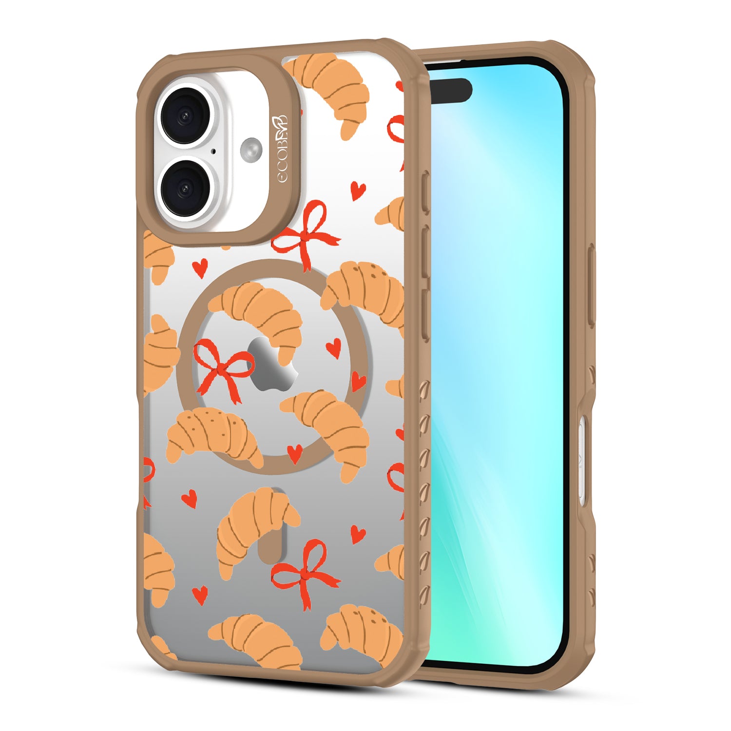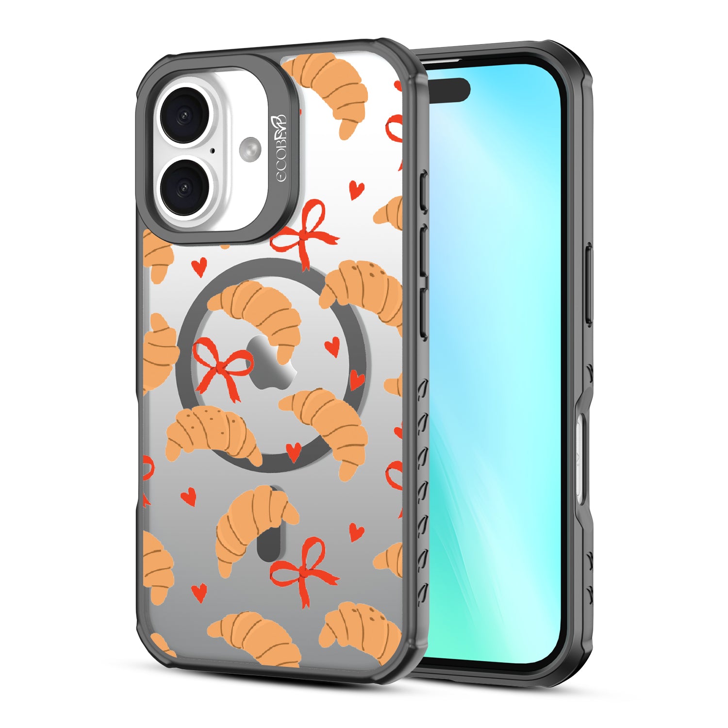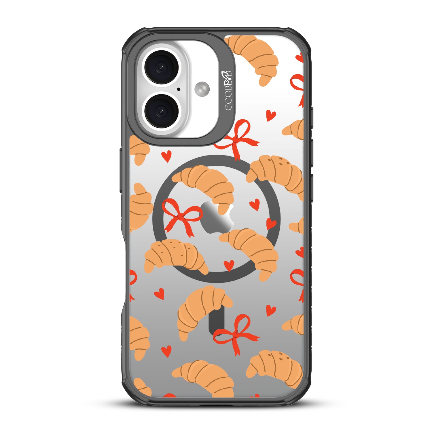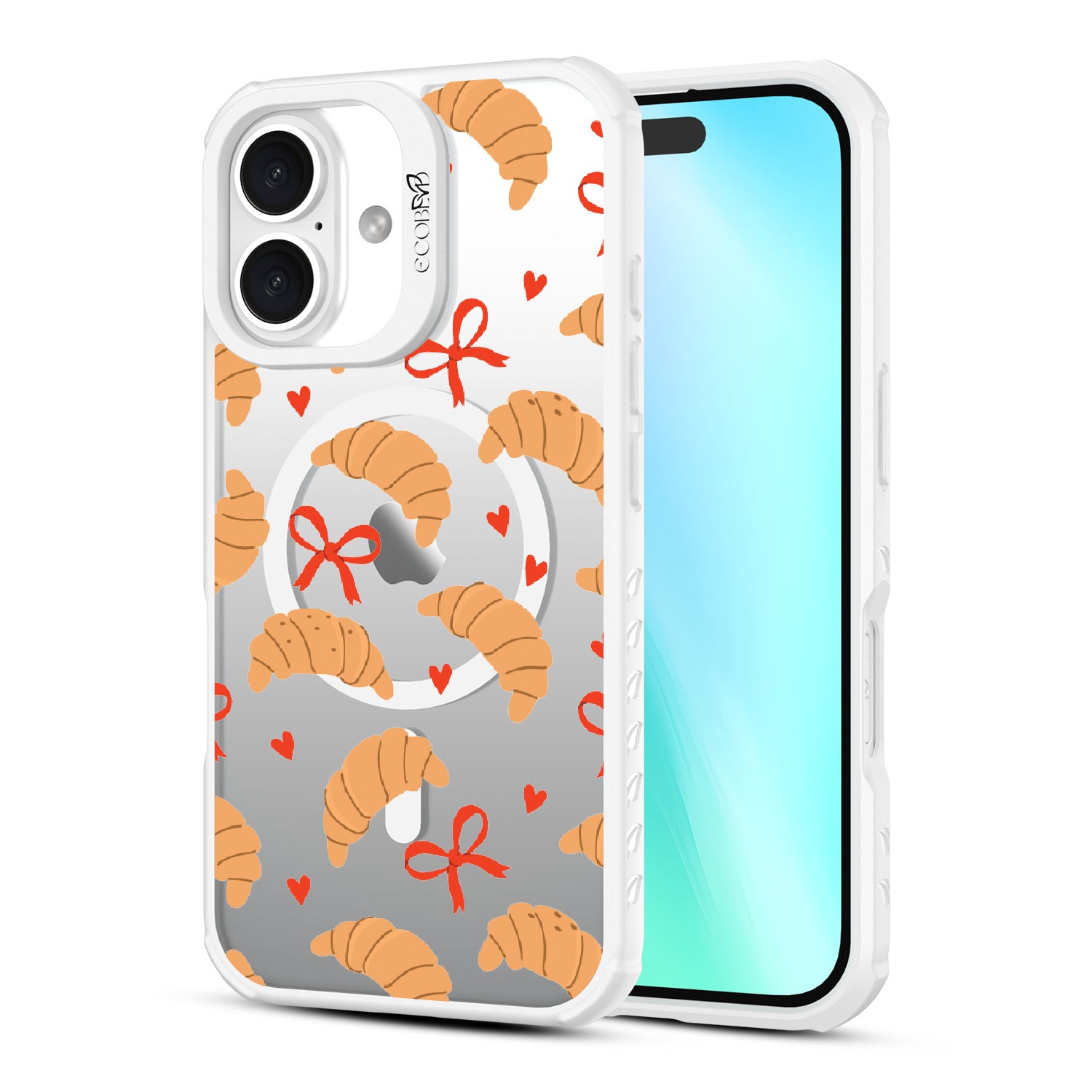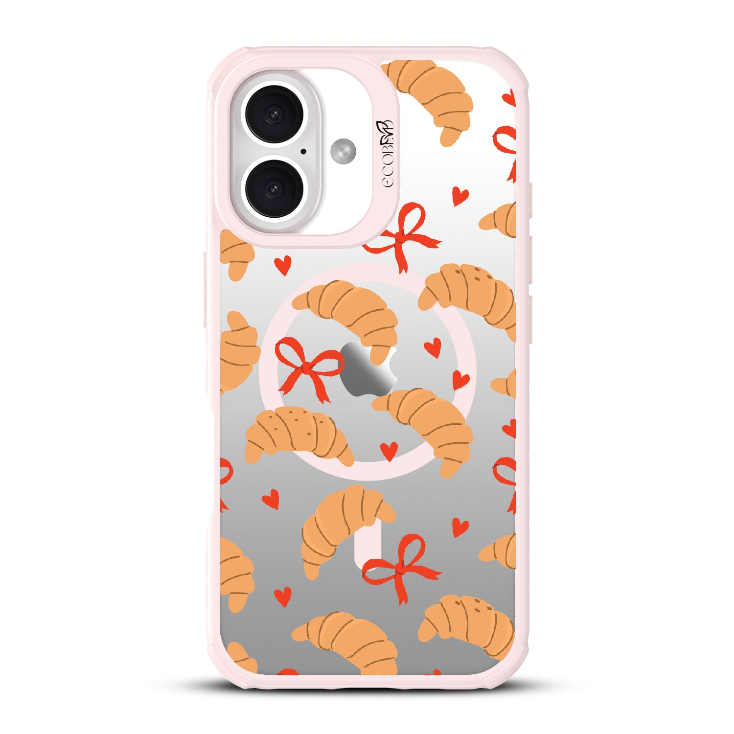 Good taste deserves the perfect recipe like the Croissant Couture design on our Revive clear iPhone 16 case! Softly folded croissants, tied with dainty red bows and sprinkled with sweet hearts, evoke the lightness and care of a true delicacy.