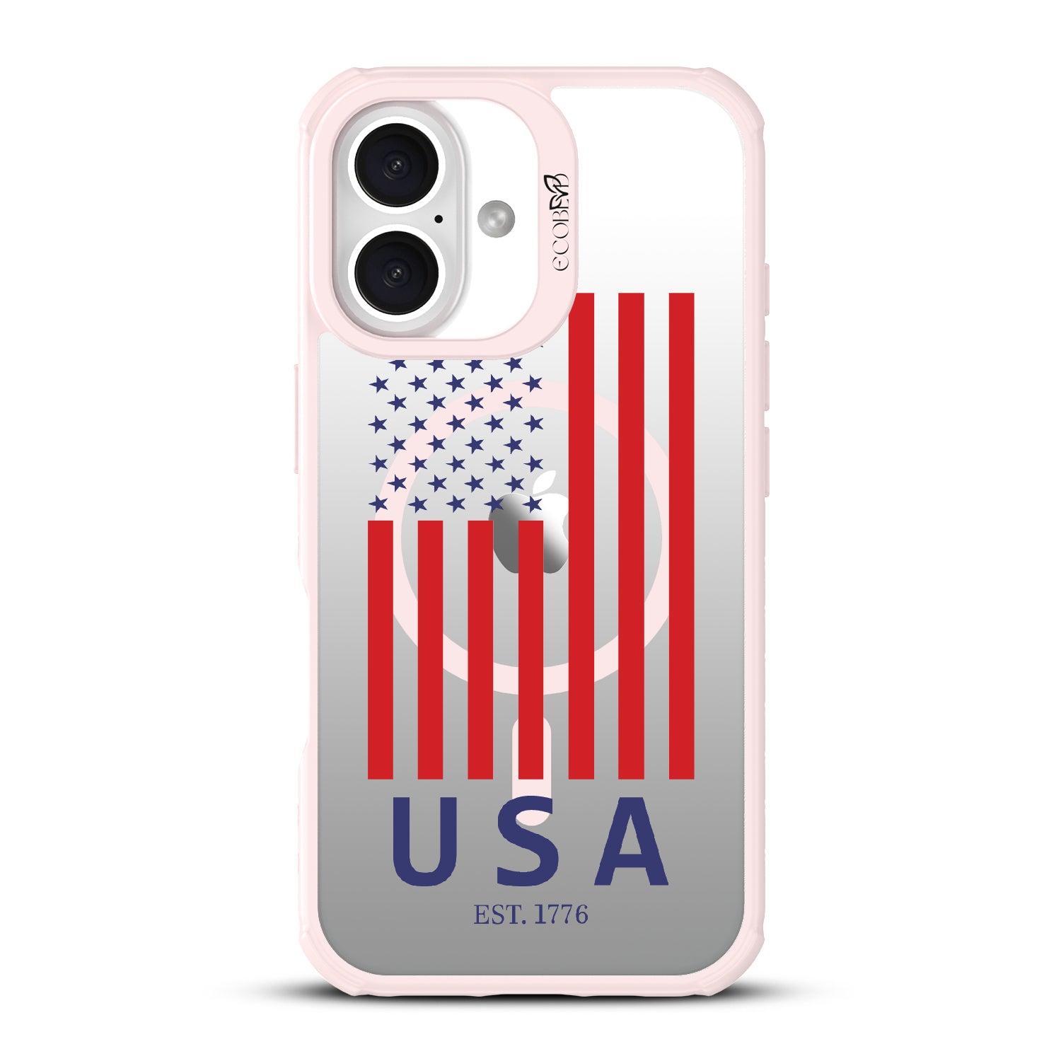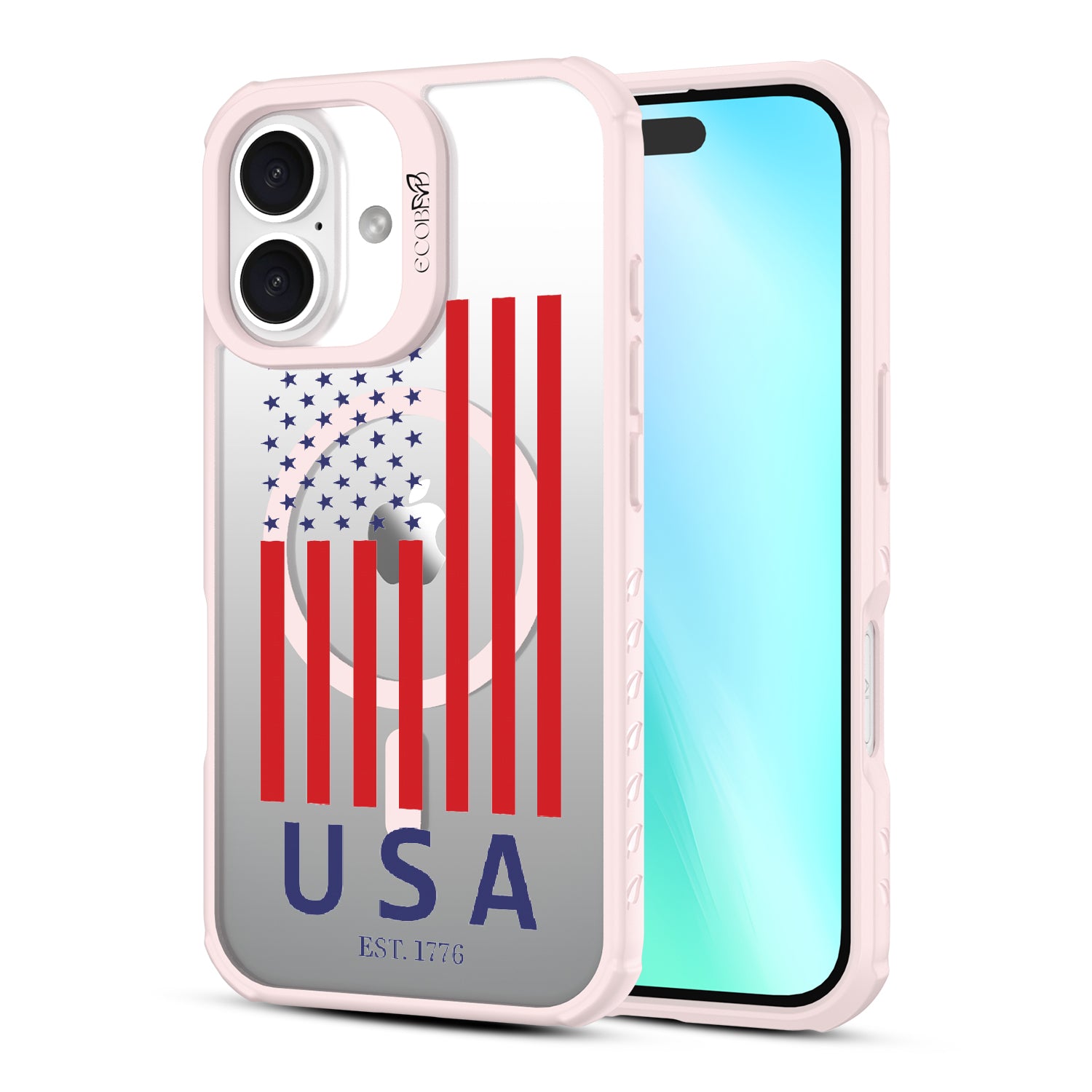 Let freedom ring loud all year long with the EST 1776 design on our Revive clear iPhone 16 phone case. This design showcases the iconic stars and stripes, along with "USA" and "EST. 1776," making it the perfect accessory for all patriotic festivities and beyond.