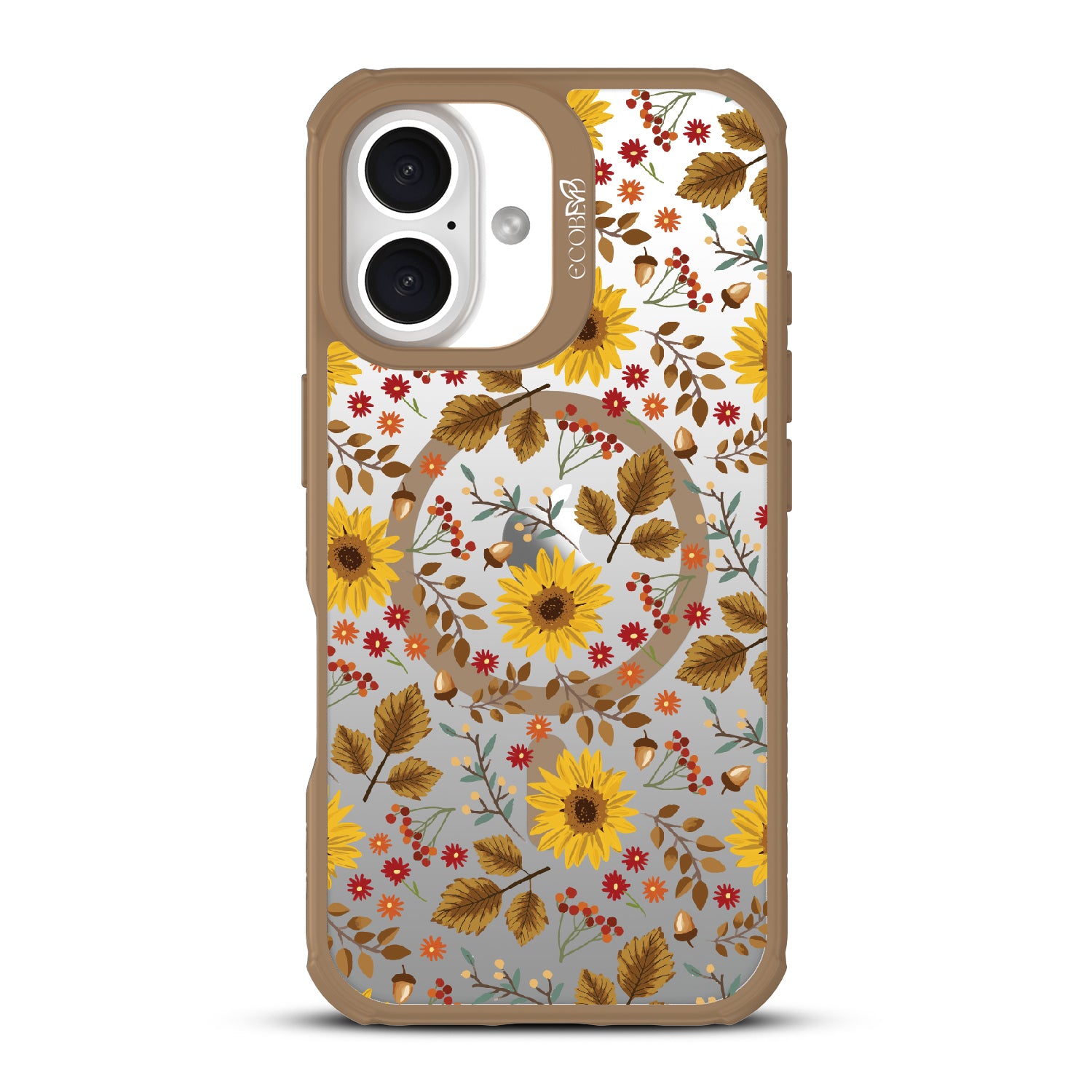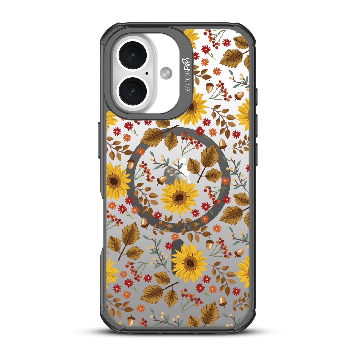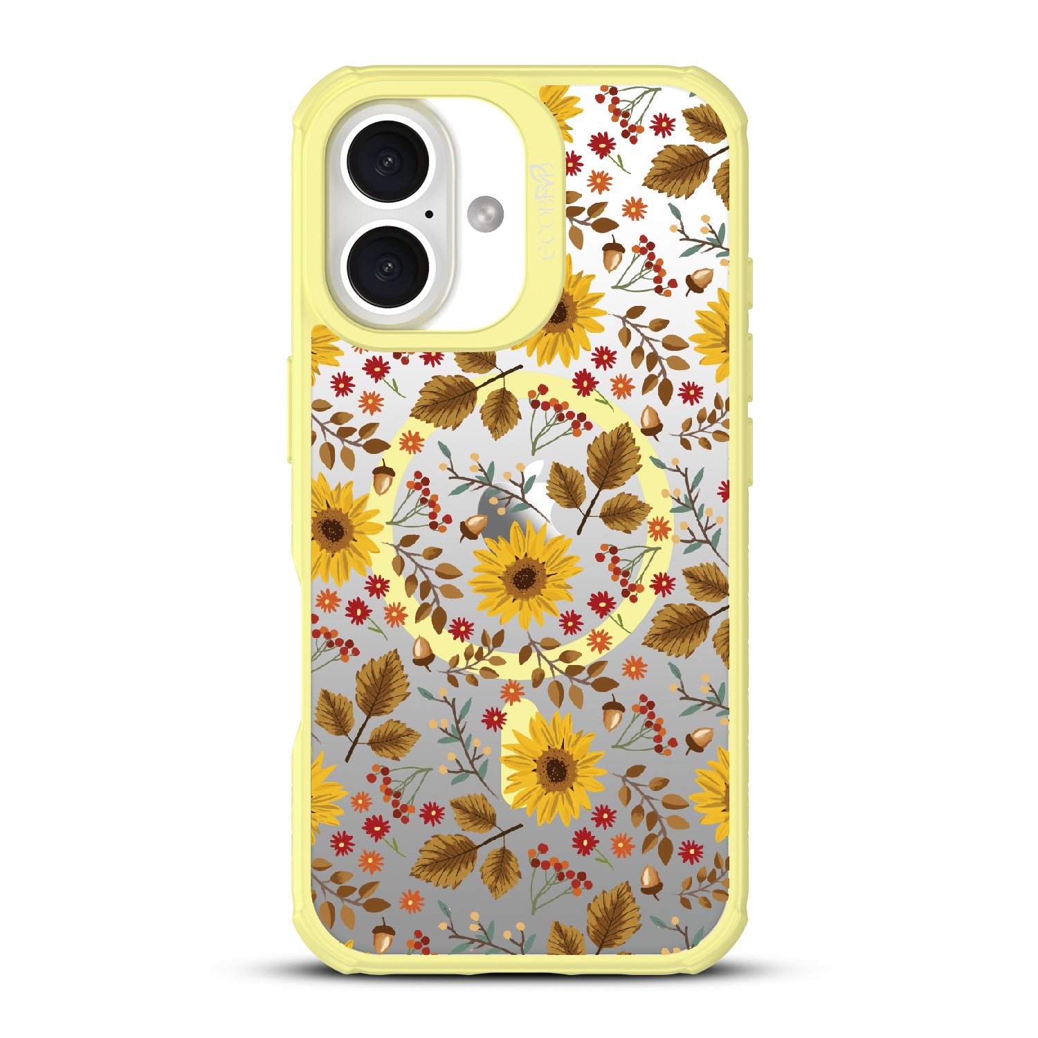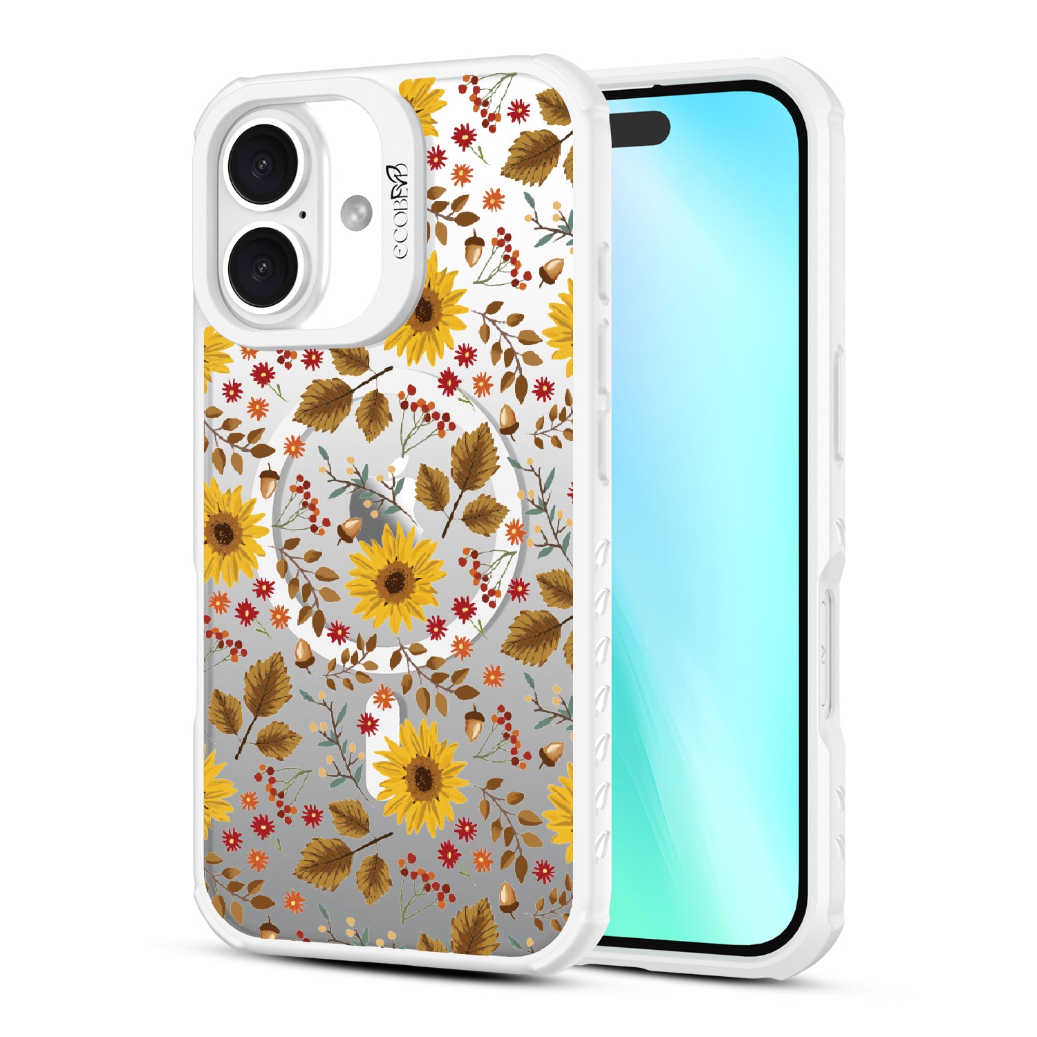 Fall in love with the Fall Florals design on our Revive clear iPhone 16 phone case. Sunflowers, marigolds, and chrysanthemums blend together in a garden of earthly delights that brings a burst of inviting colors to your phone. Step into the new season with this refreshing, crisp look.
