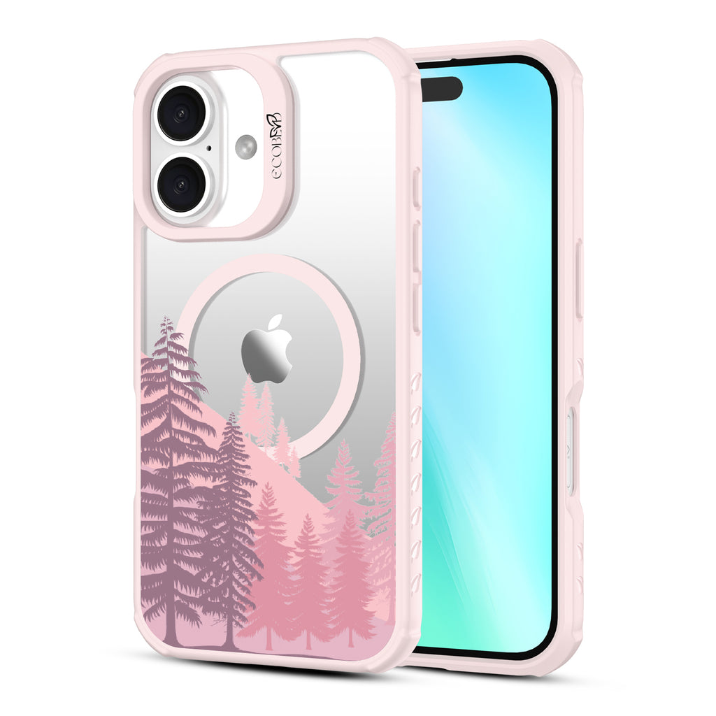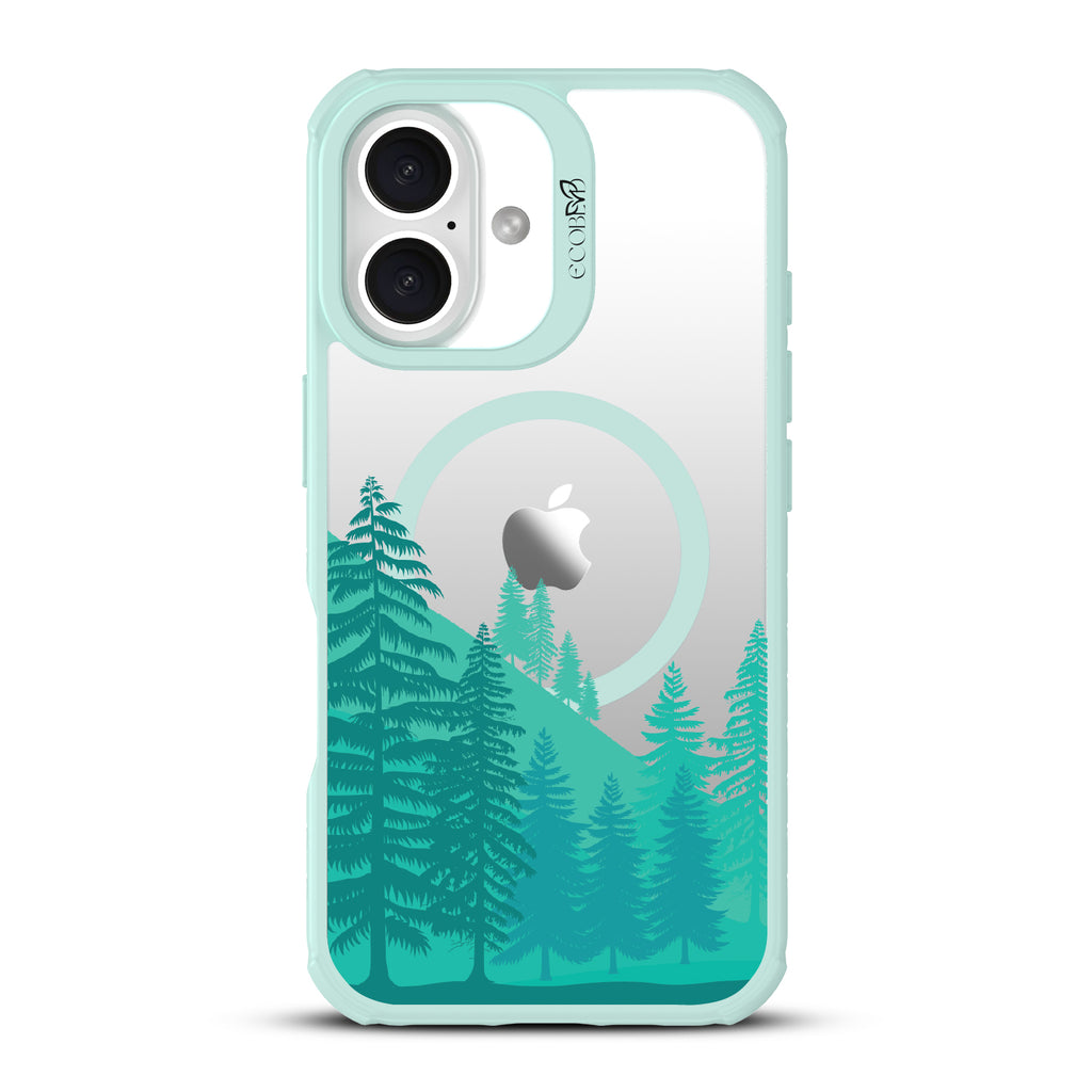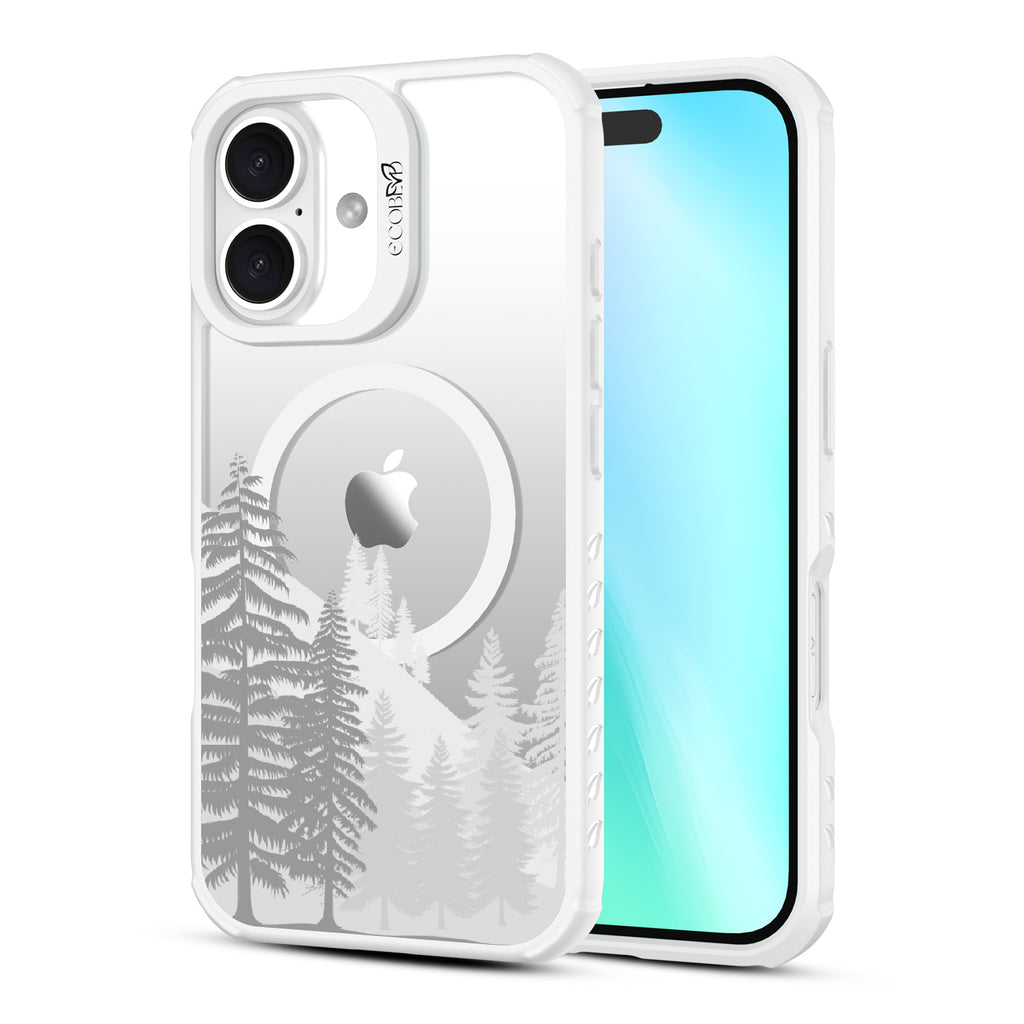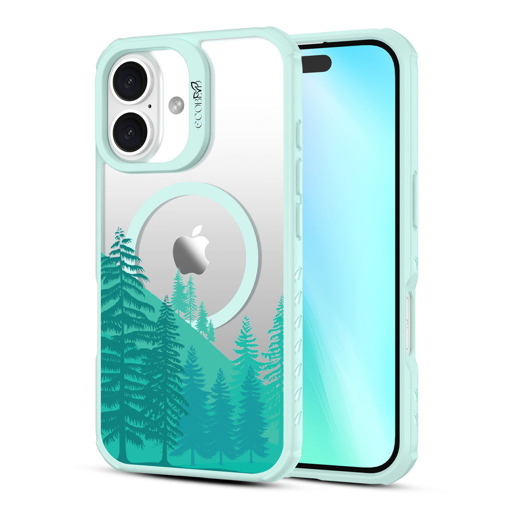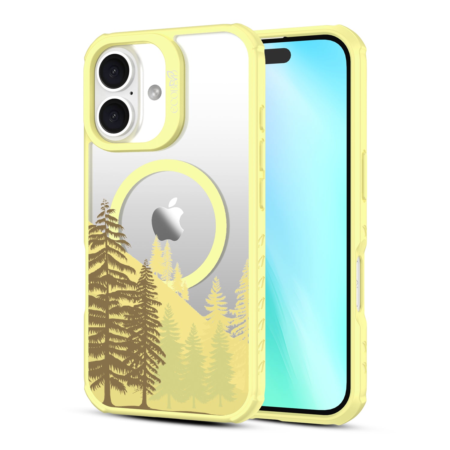Get dialed into the wonder of nature as the Forest design on our Revive clear iPhone 16 phone case surrounds your phone with a lush forest tree-line landscape of fir trees that lets you bring the great outdoors anywhere in five vibrant colors: Midnight Black, Cascade Blue, Foliage Green, Illuminating Yellow, and Wildflower Pink.