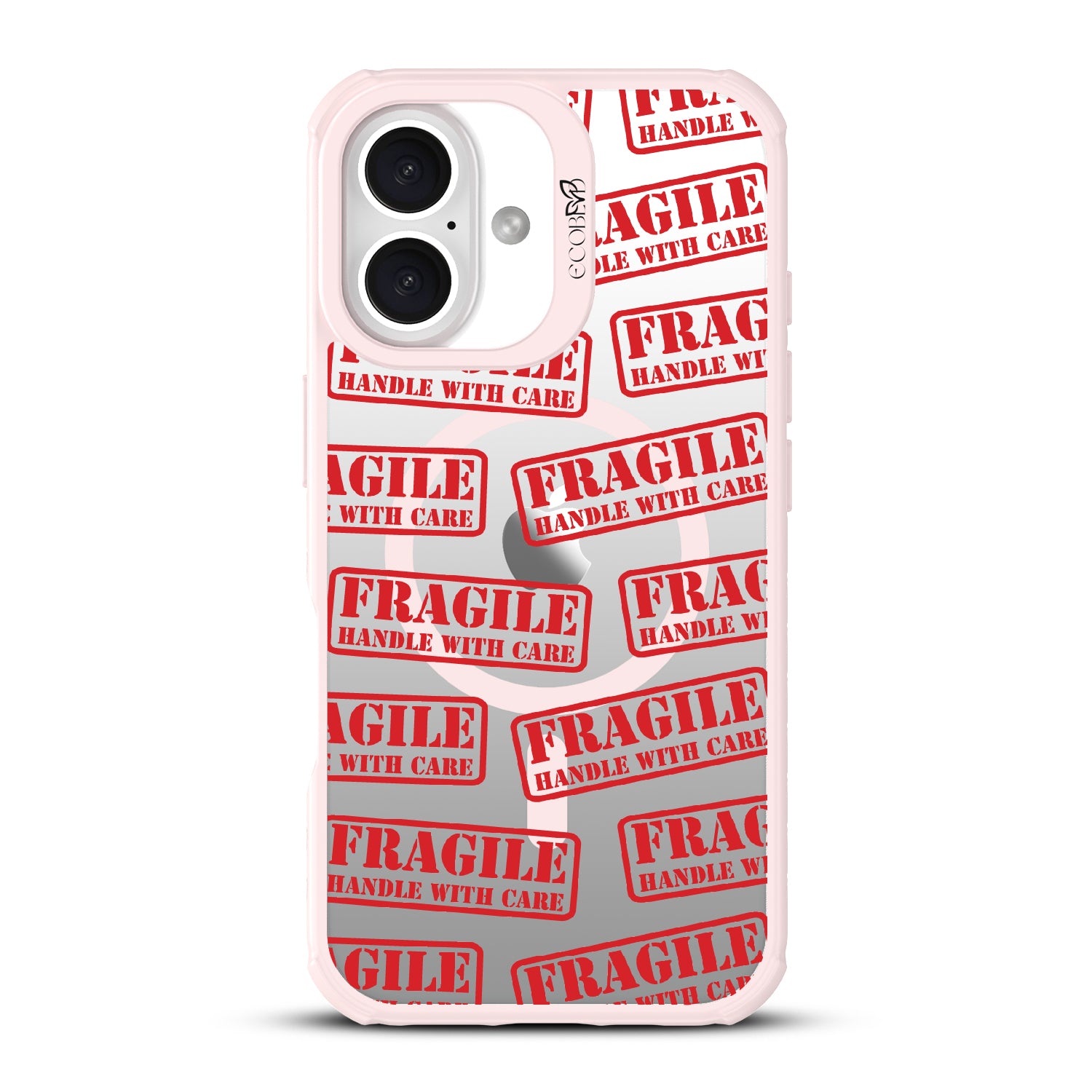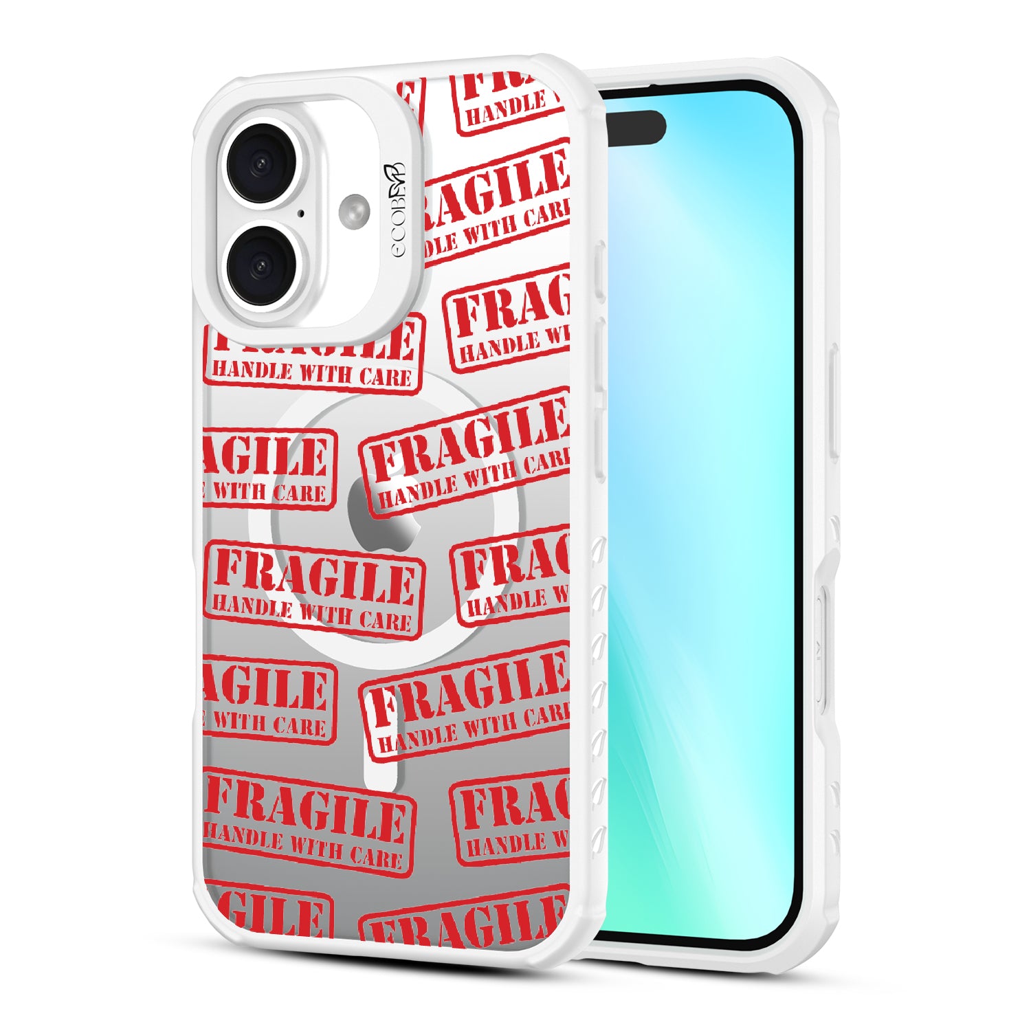 Your phone is precious cargo, and the Handle With Care design on our Revive clear iPhone 16 phone case makes sure everyone knows it. Like the most treasured package in the post, this design stamps your device with VIP status, demanding the gentle touch and special attention reserved for the things we can't live without.