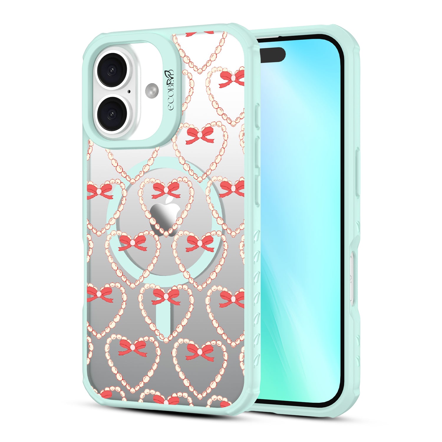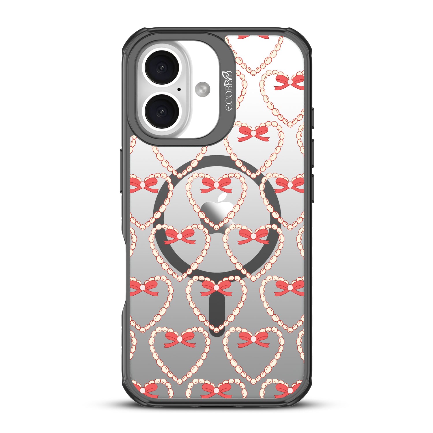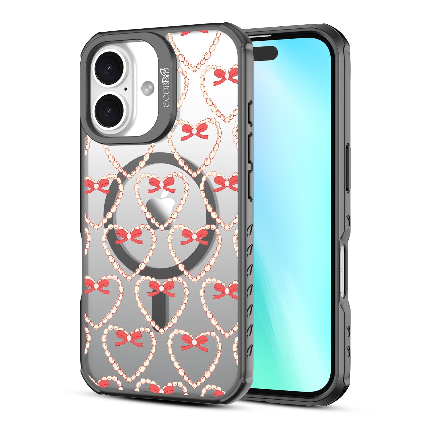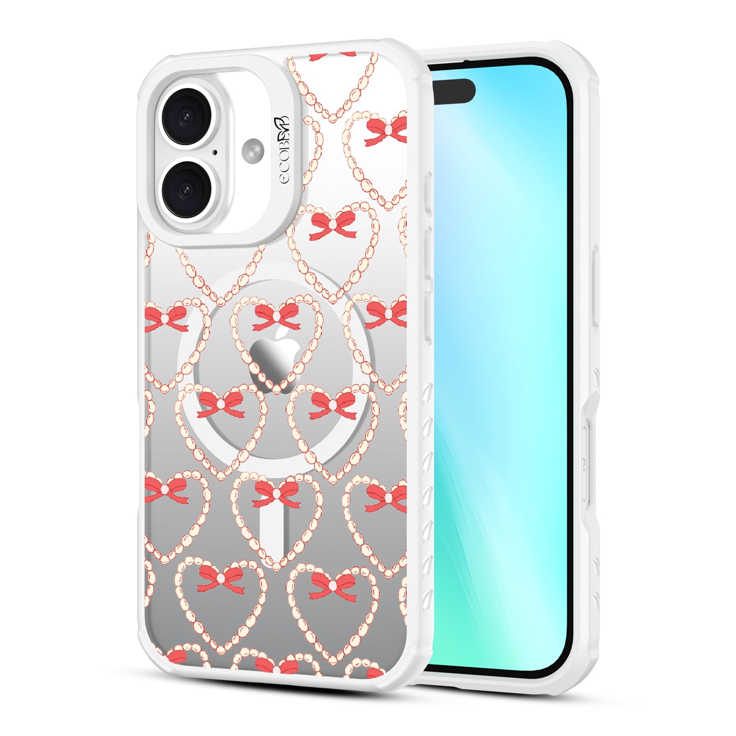 Tug at your Heart Strings with this beautifully crafted design on Revive clear iPhone 16 phone case, featuring delicate pearls and coquettish bows arranged in heart shapes. Let your phone strum the chords of elegance with this captivating pattern. Each heart-shaped detail will make your style sing in love songs.