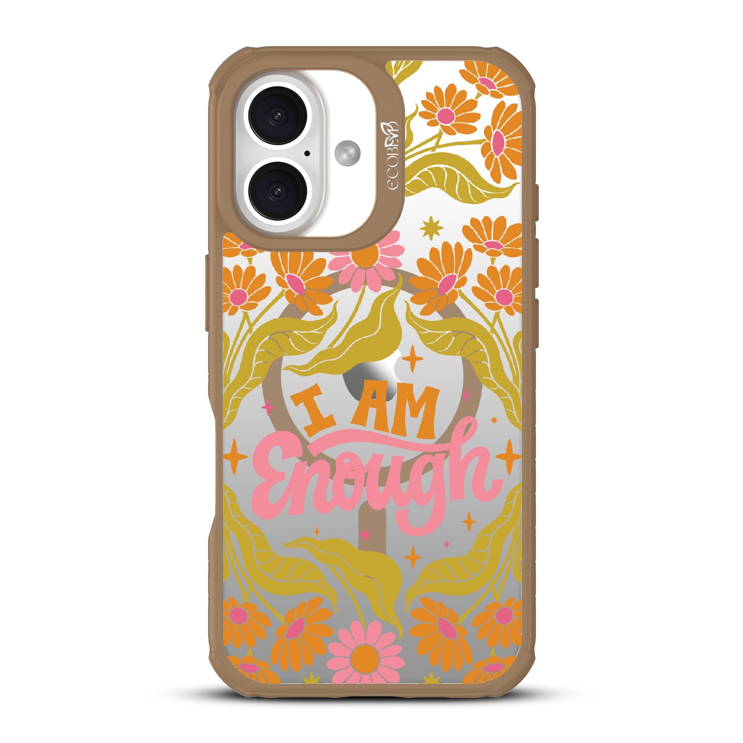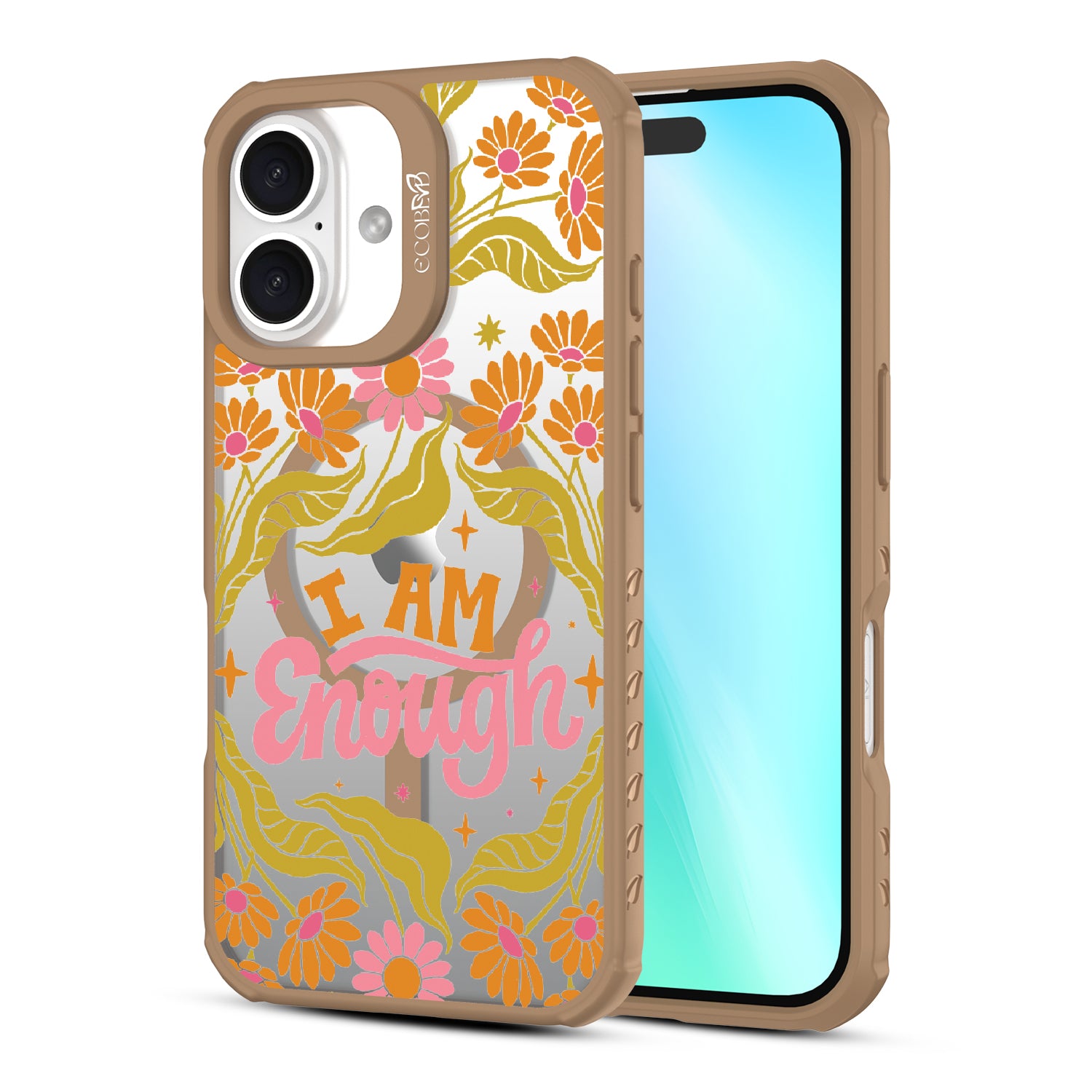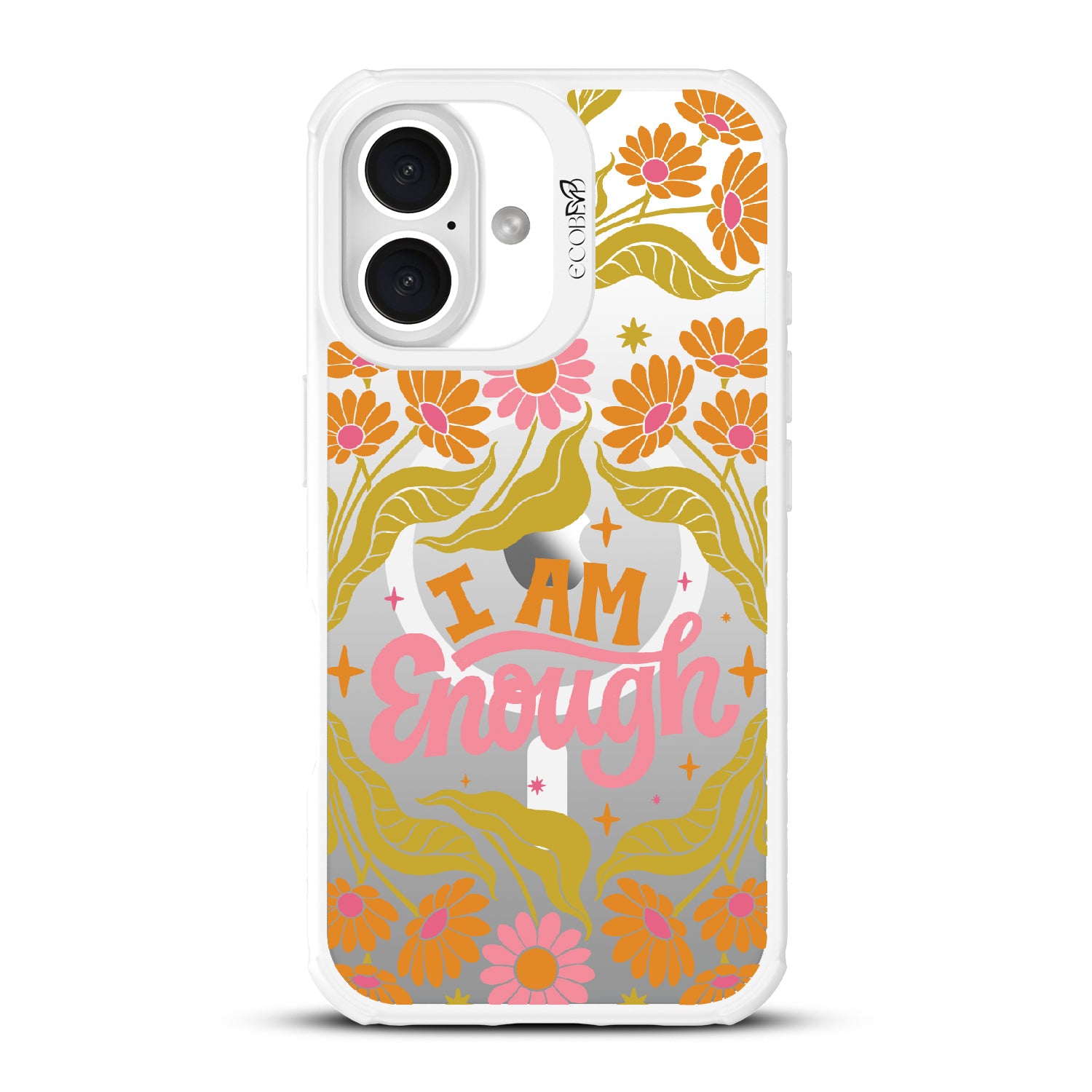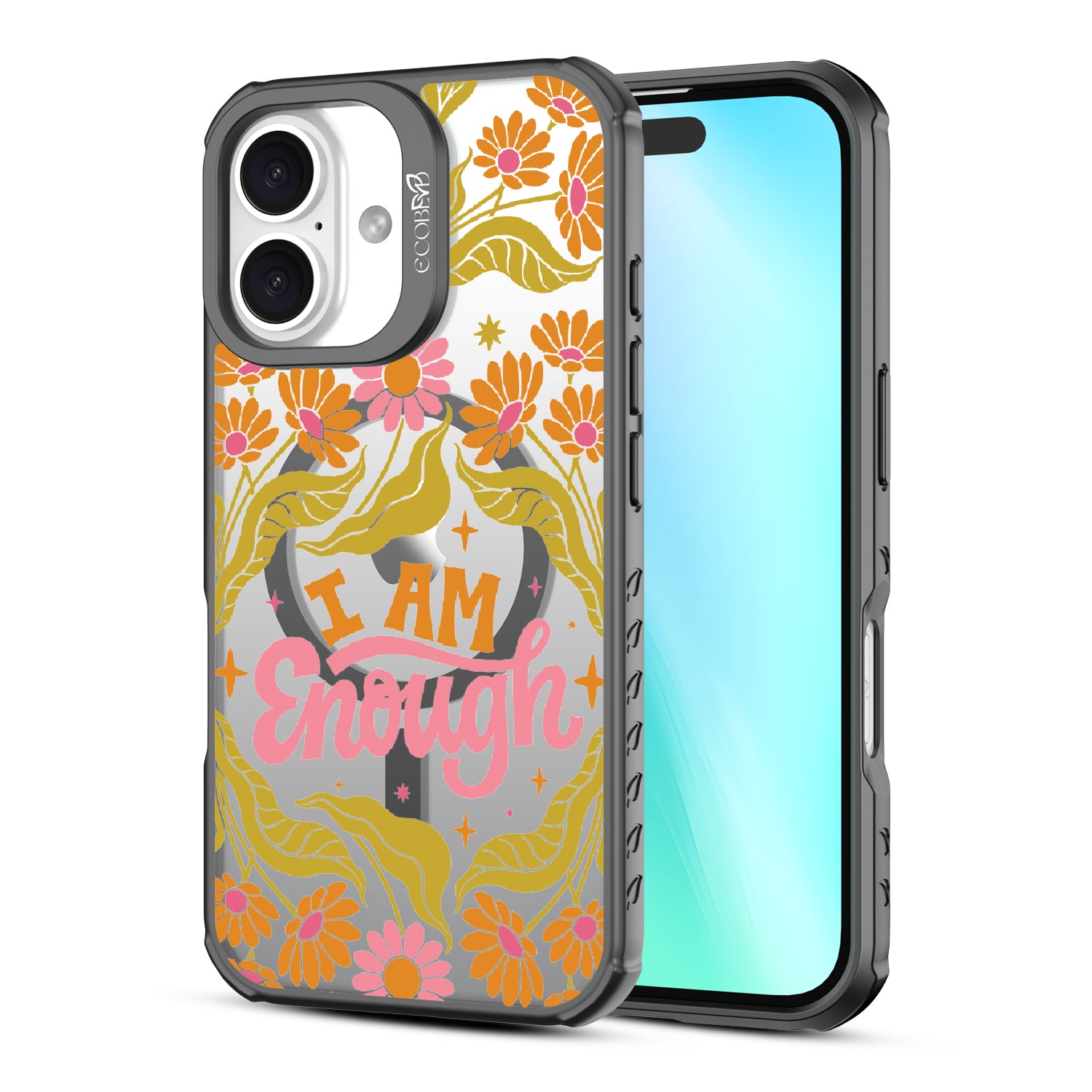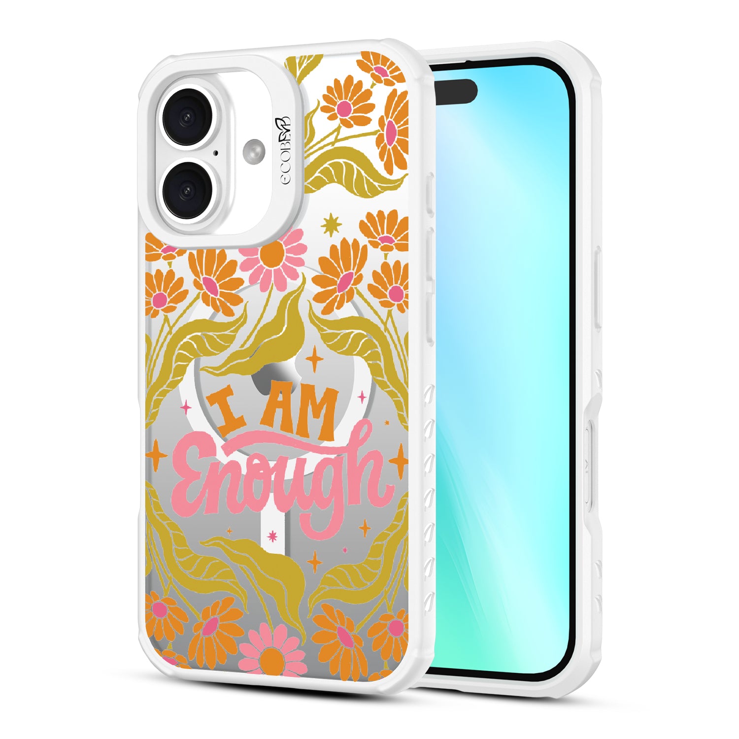 Let your essence shine through with our I Am Enough design on our Revive clear iPhone 16 phone case. Declare to the world that you are light, kind, smart, brave, worthy, confident, powerful, loved, and always enough. This design isn't just a case; it's a tool to speak these affirmations into existence, allowing you to embody them and inspire not only yourself but also others to recognize and accept their own greatness.