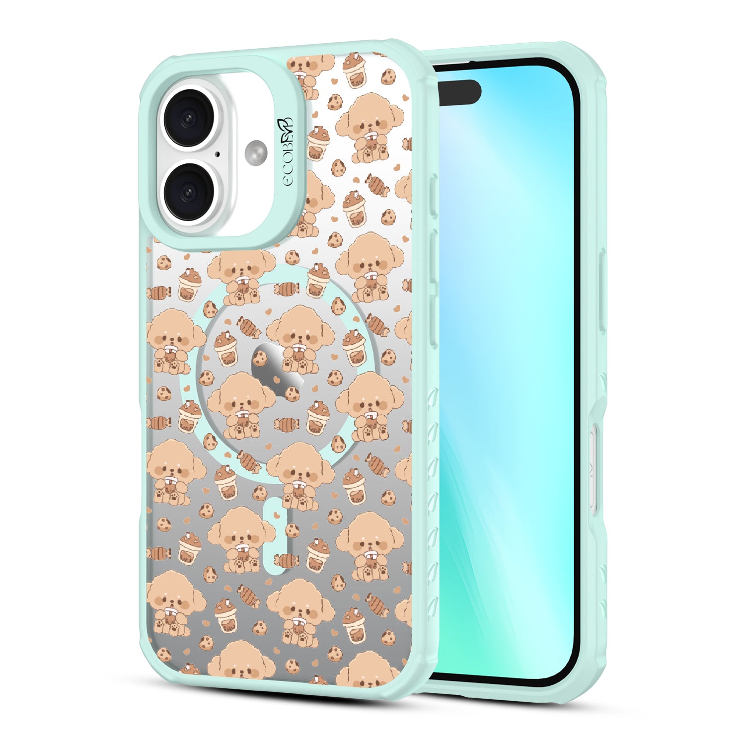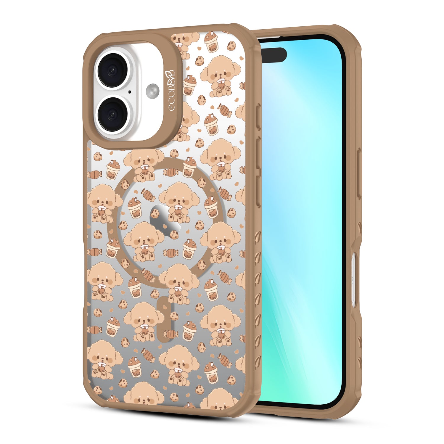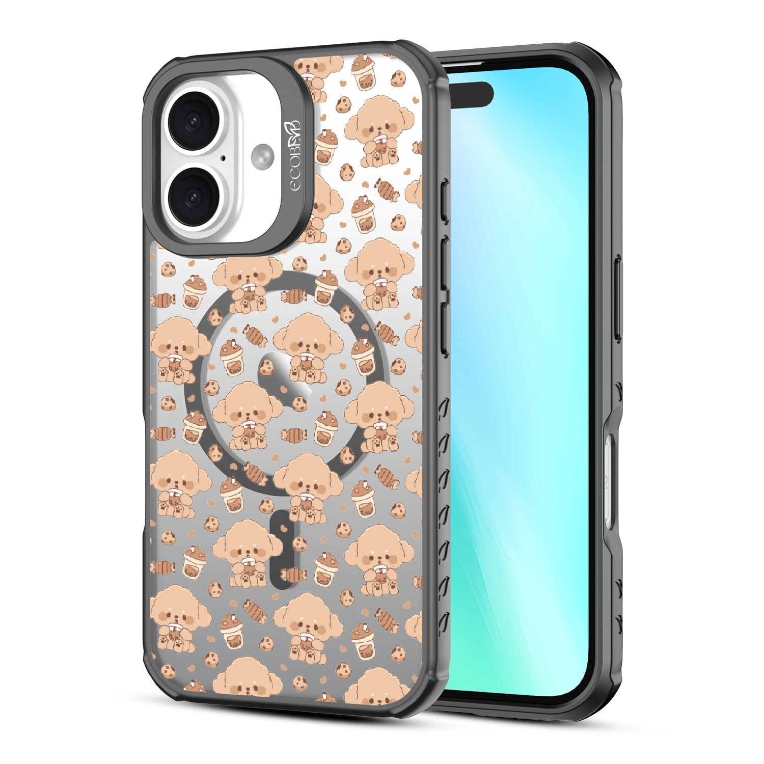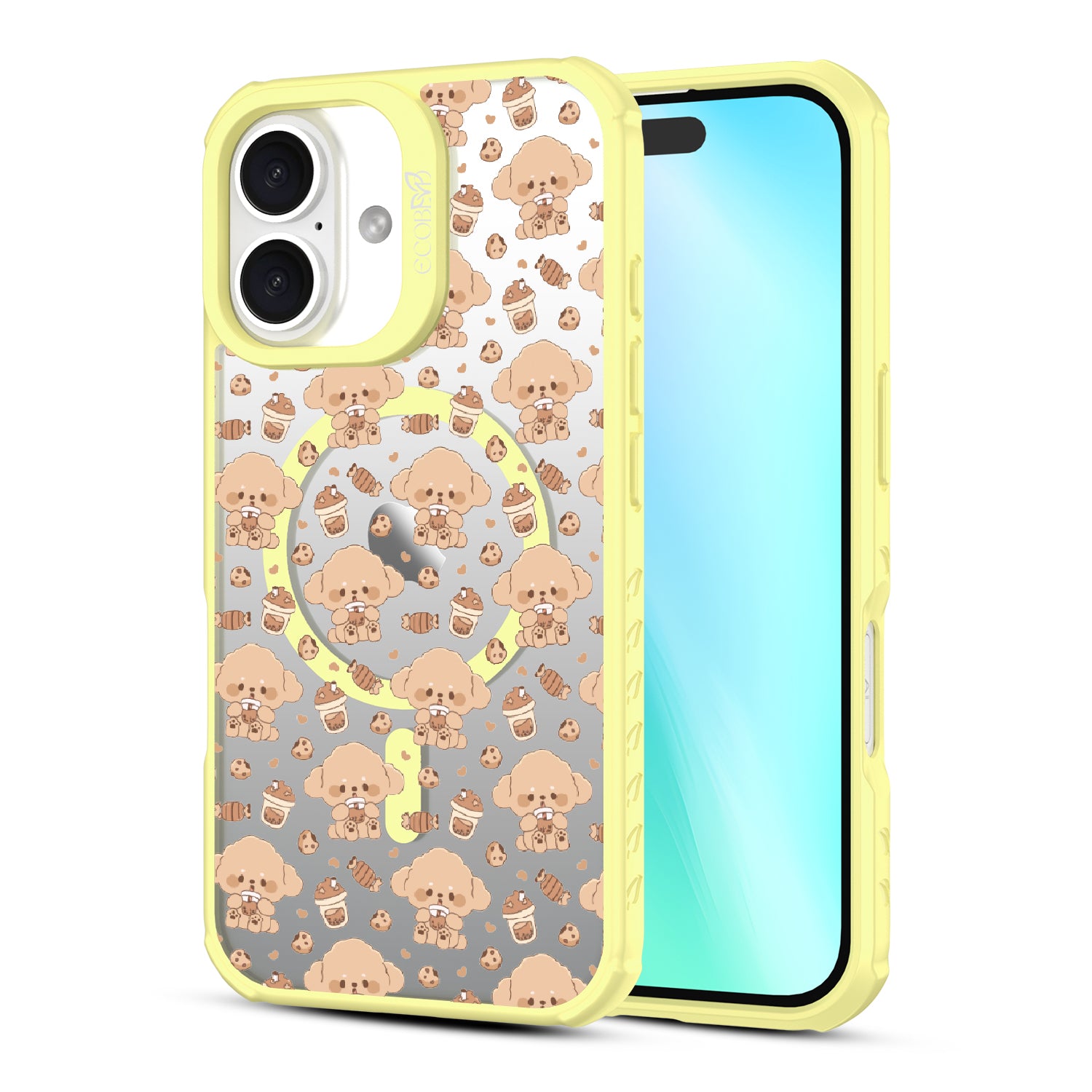 A pup cup for them, a coffee for you. The Pupaccino design on our Revive clear iPhone 16 case captures the joy of coffee runs with your furry best friend, blending happy pups, frothy drinks, and pastries into one delightful look. Perfect for dog lovers who never skip a treat.