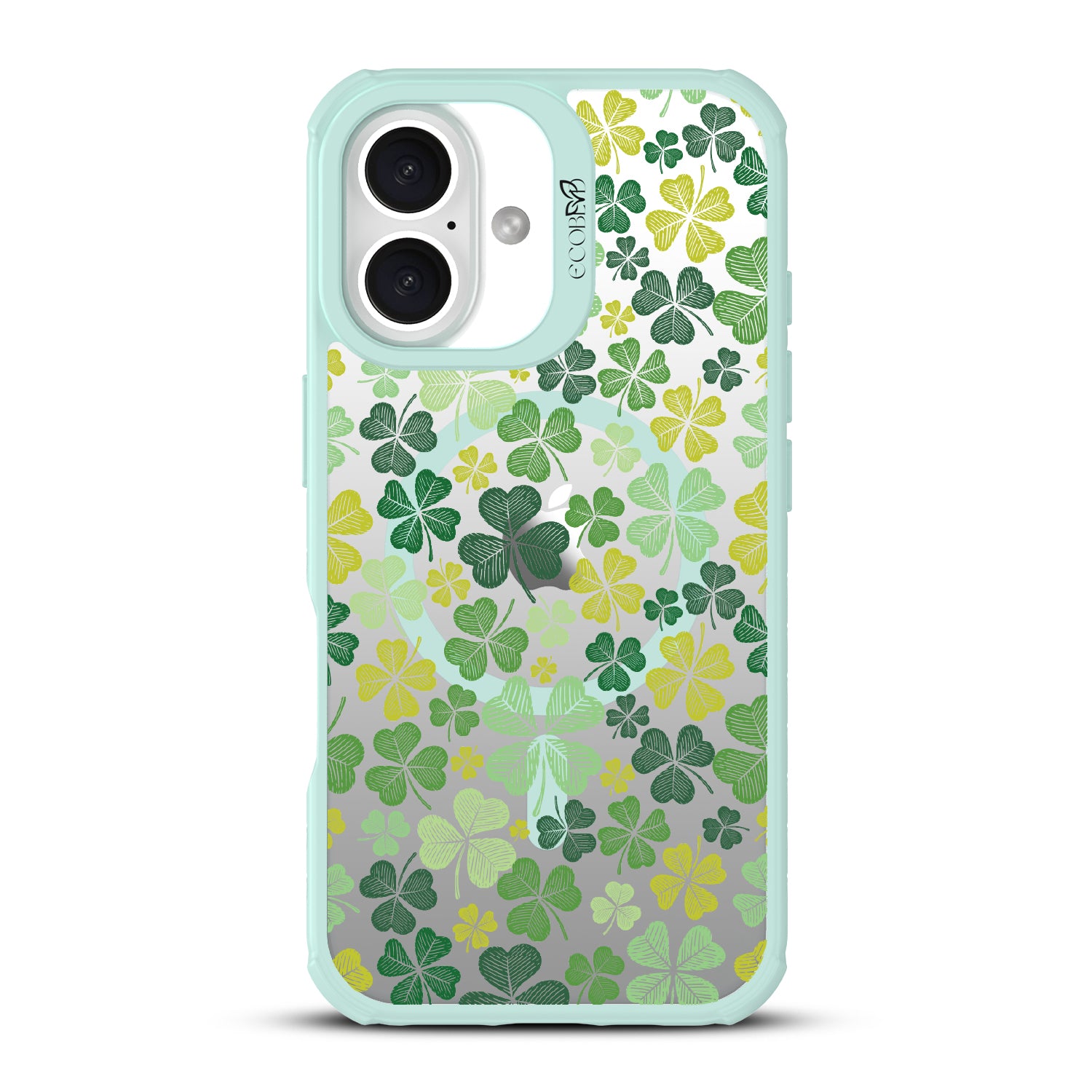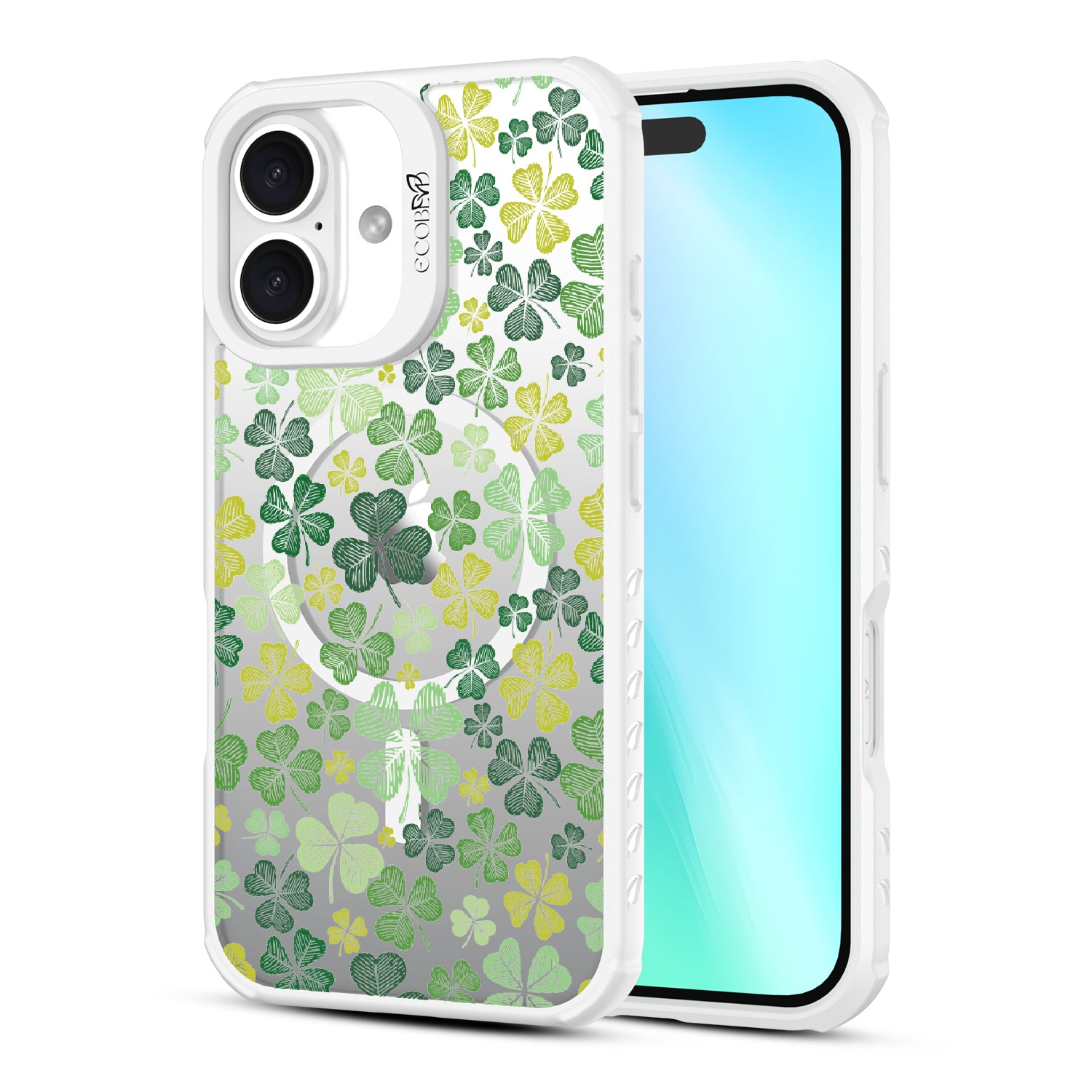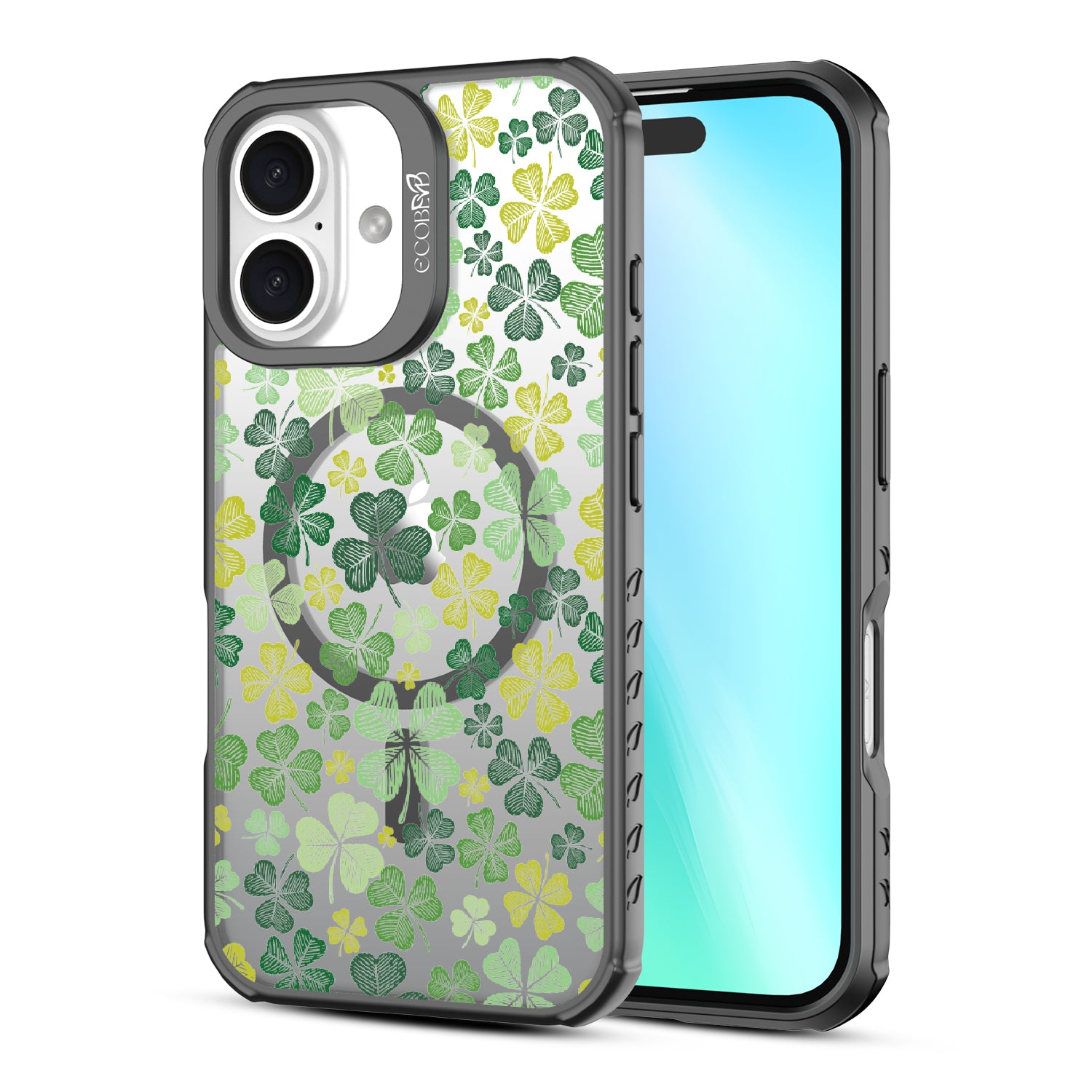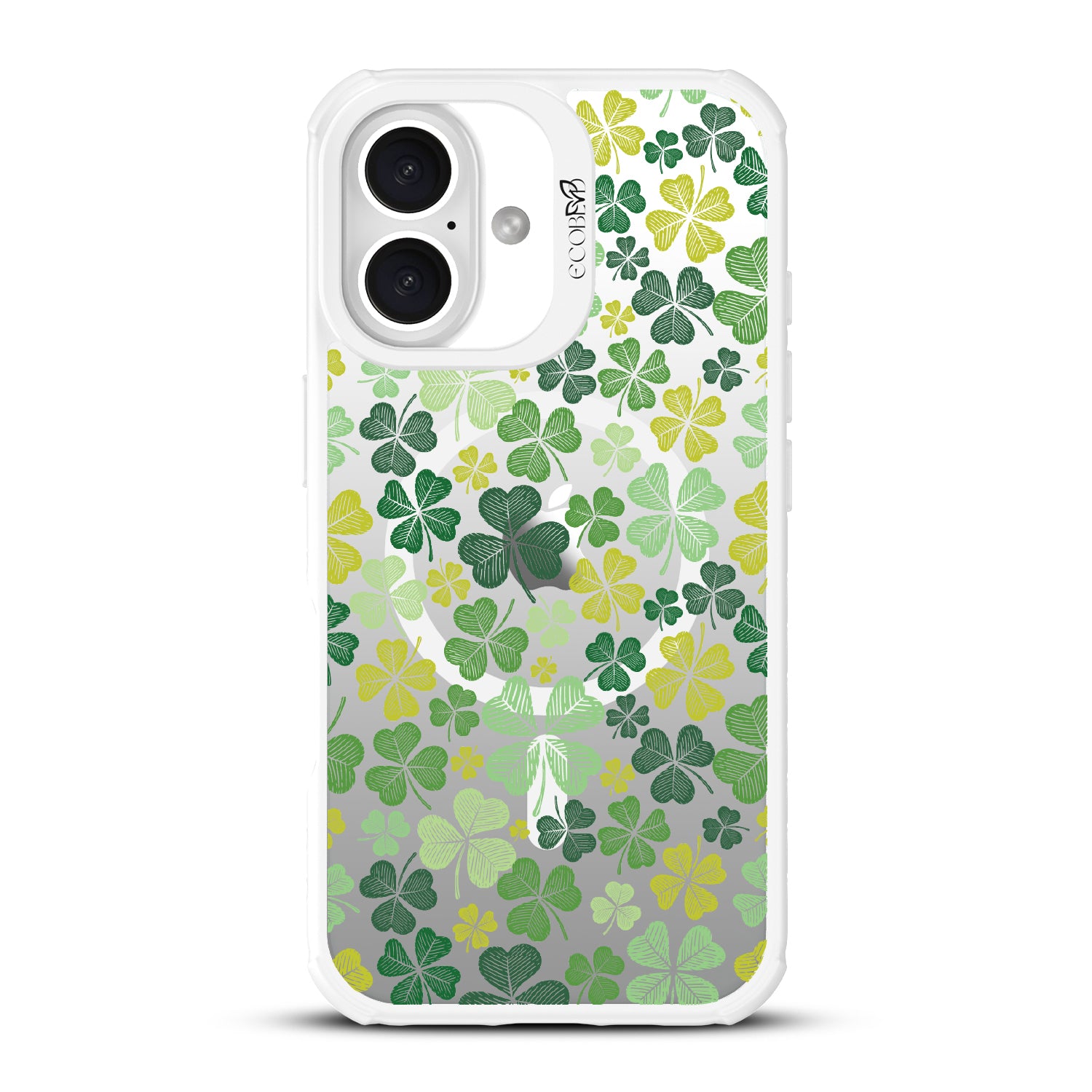 Turn your luck around with the vibrant Shamrock design on our Revive clear iPhone 16 phone case, where every leaf whispers tales of fortune and fate. Adorned with a sea of green four-leaf clovers, this design is a true emblem of luck, designed to bring a touch of charm.