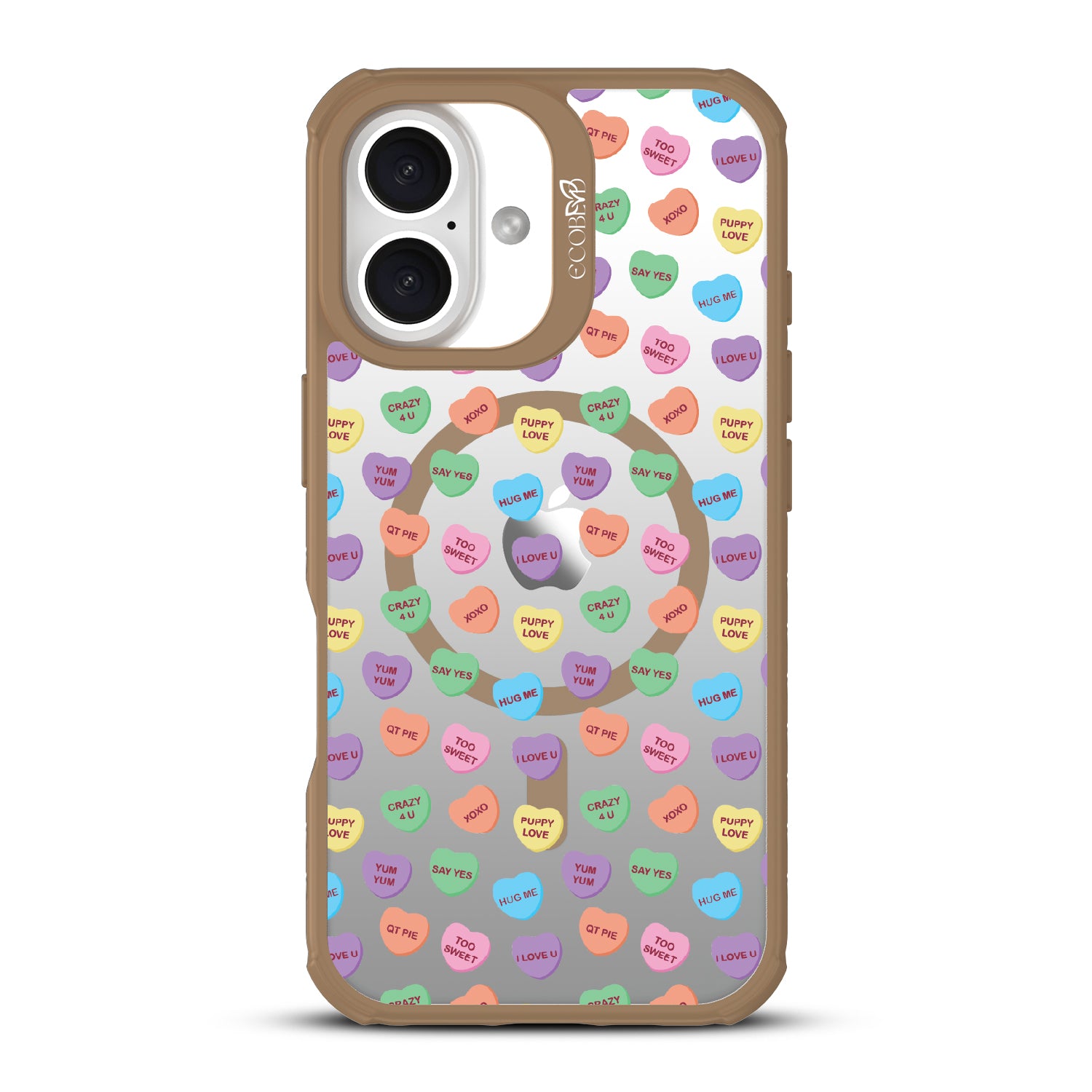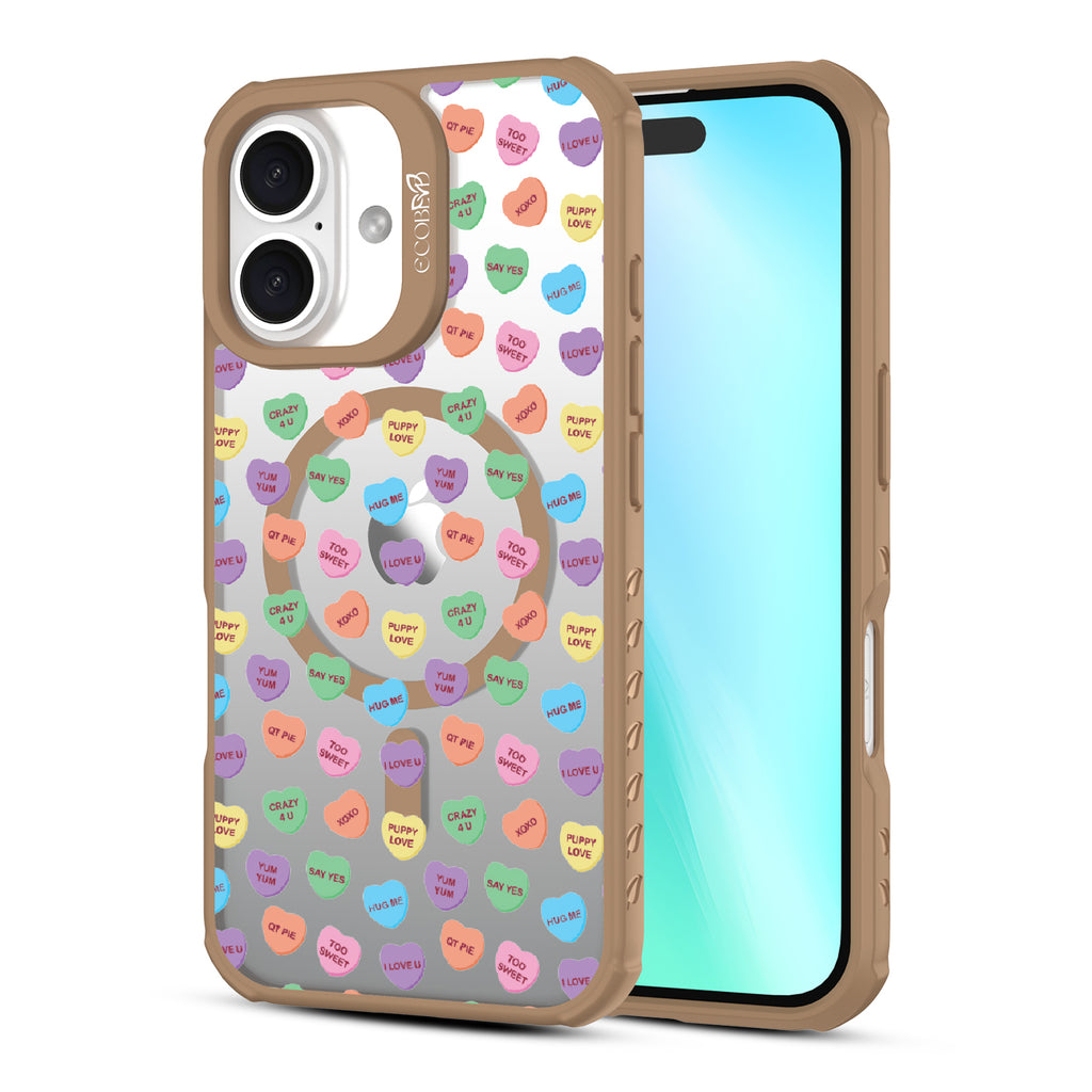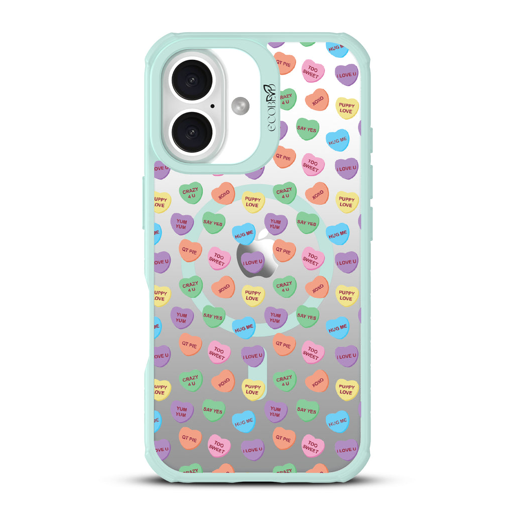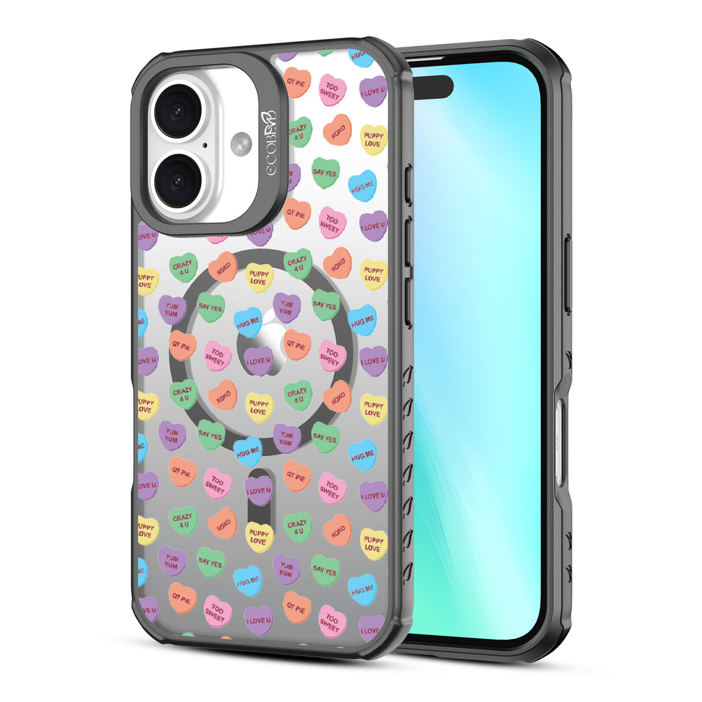 You'll be a real 'QT Pie' with the Sweethearts design on our Revive clear iPhone 16 phone case's playful candy conversation hearts on your phone that show you're "too sweet".