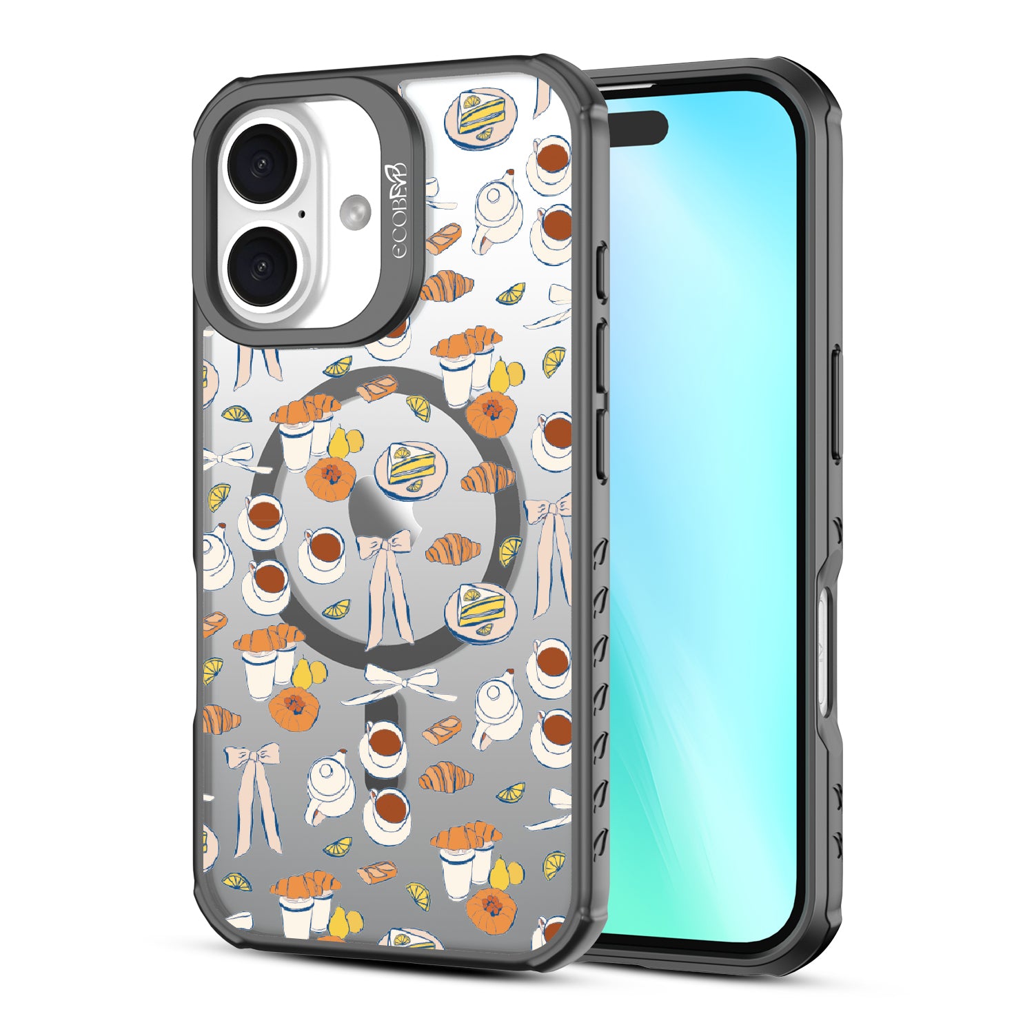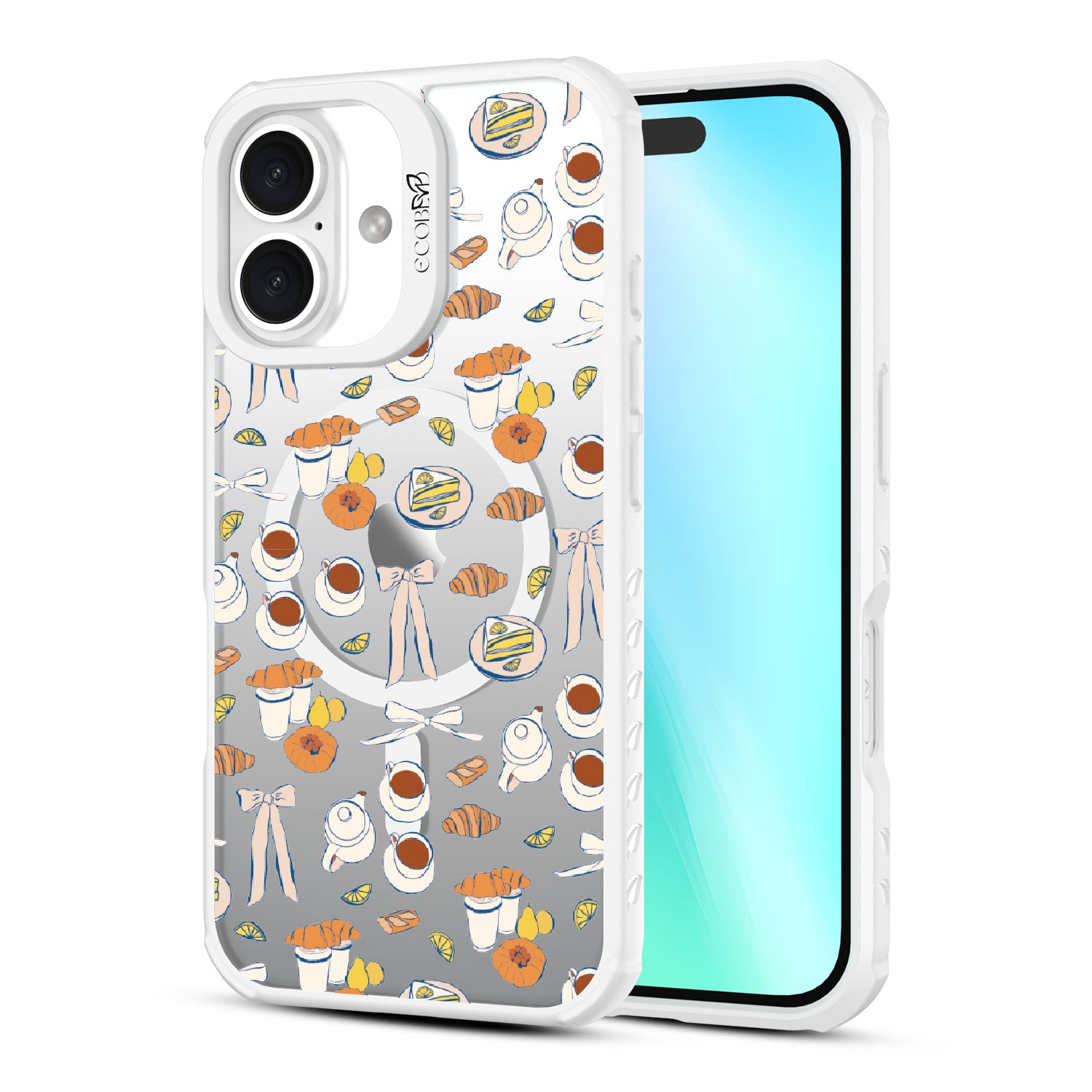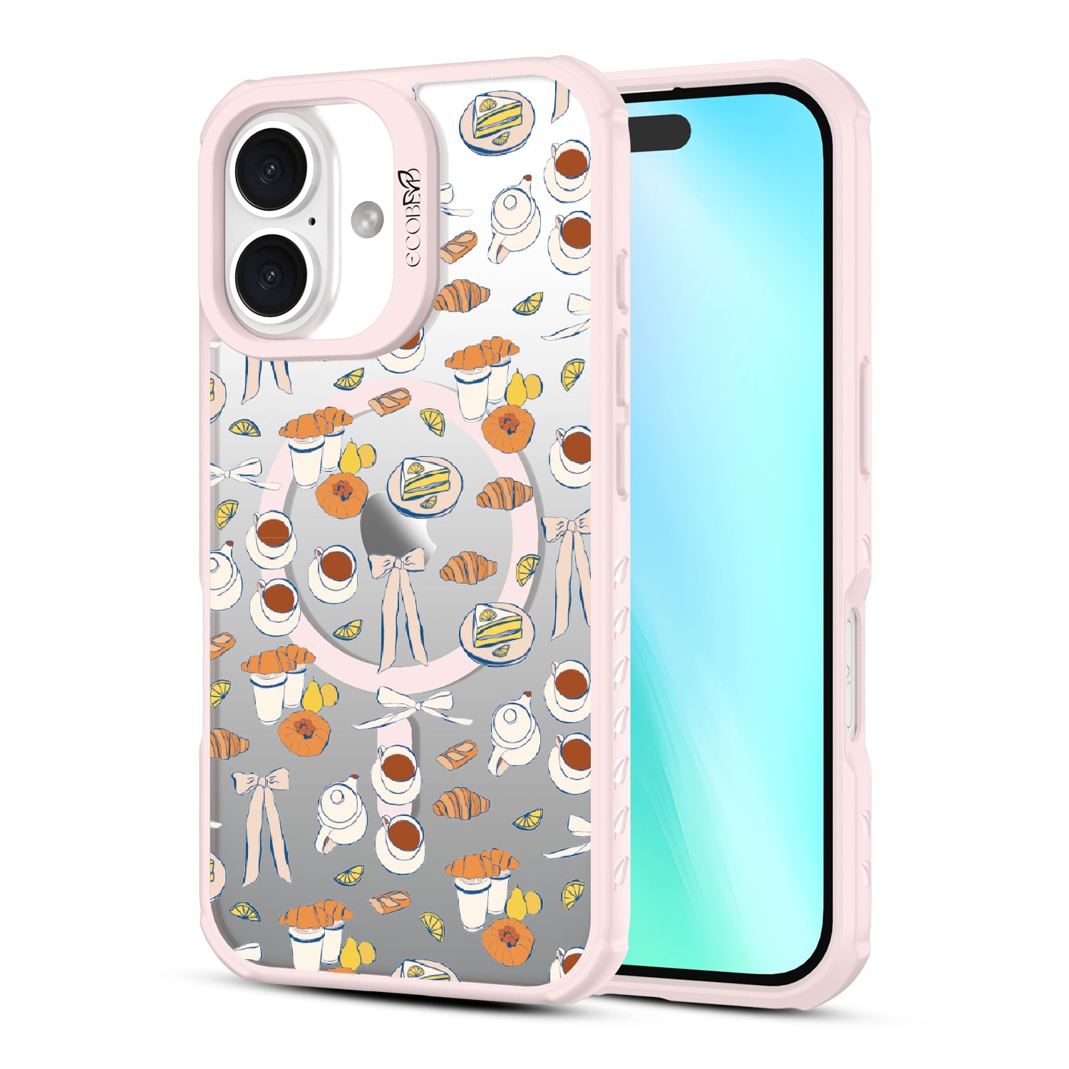 Tea time is the new happy hour. This design on our Revive clear iPhone 16 case combines whimsical teacups, dainty bows, and sweet pastel pastries in style as delightful as a perfect afternoon break. A tribute to making time for yourself with a touch of elegance.