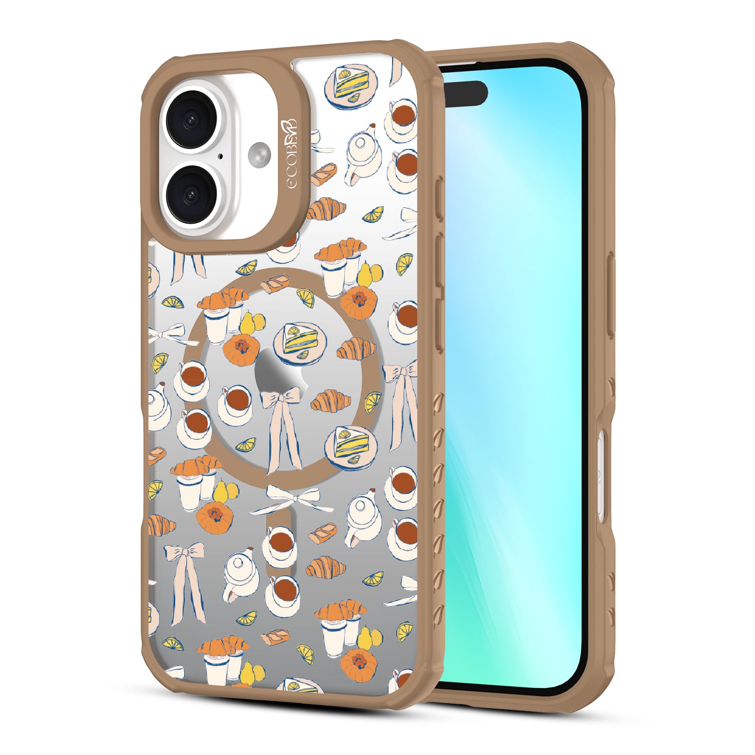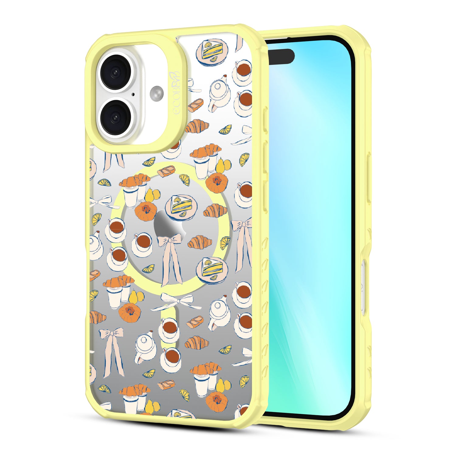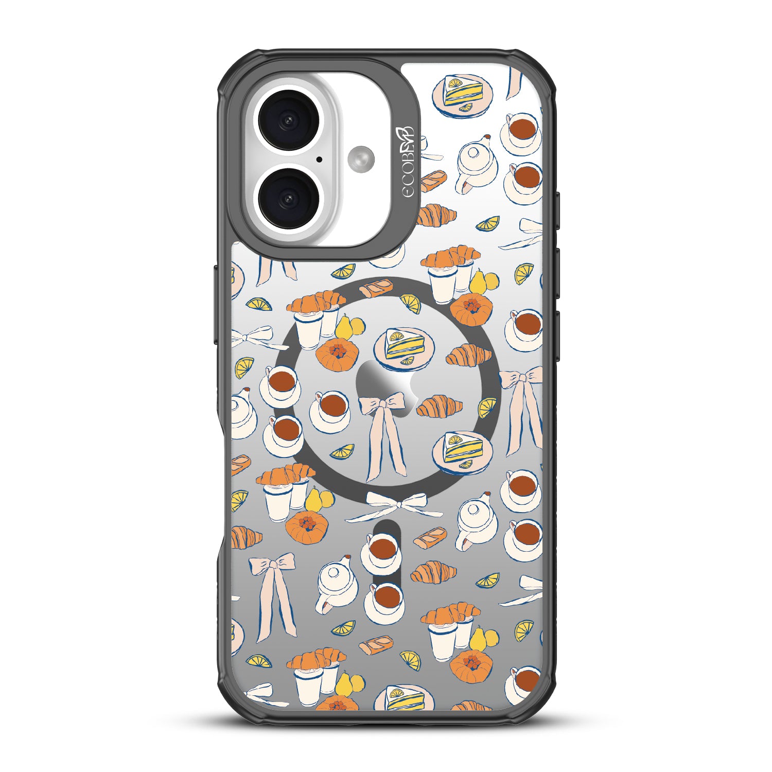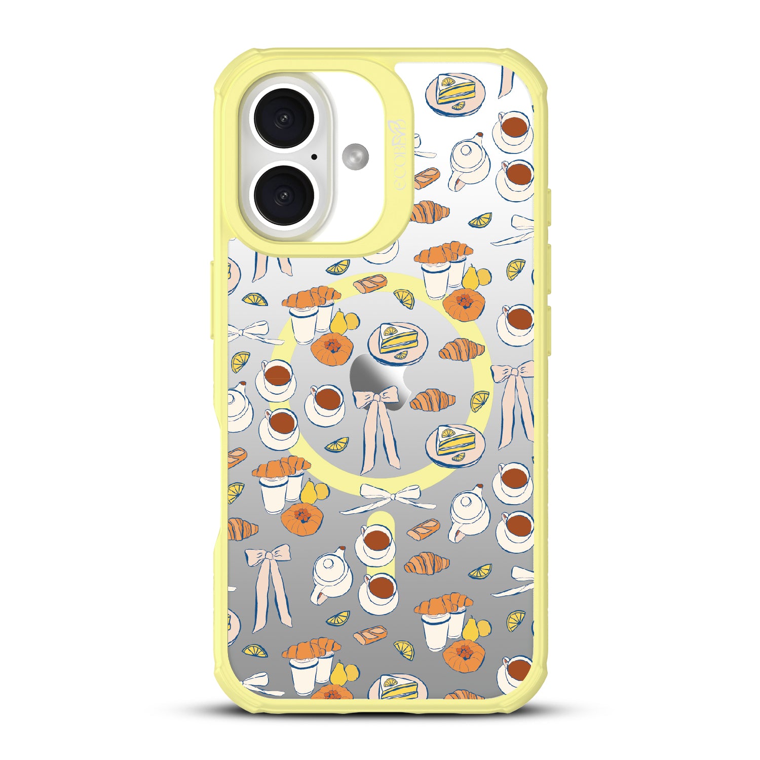 Tea time is the new happy hour. This design on our Revive clear iPhone 16 case combines whimsical teacups, dainty bows, and sweet pastel pastries in style as delightful as a perfect afternoon break. A tribute to making time for yourself with a touch of elegance.