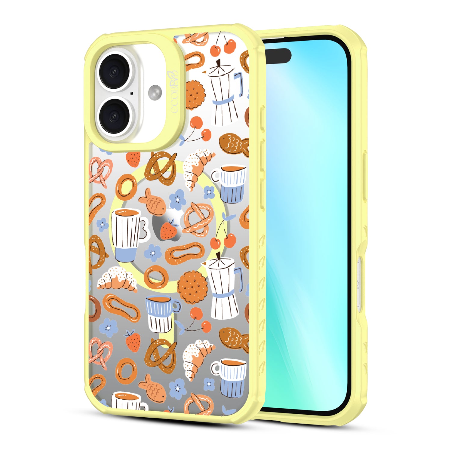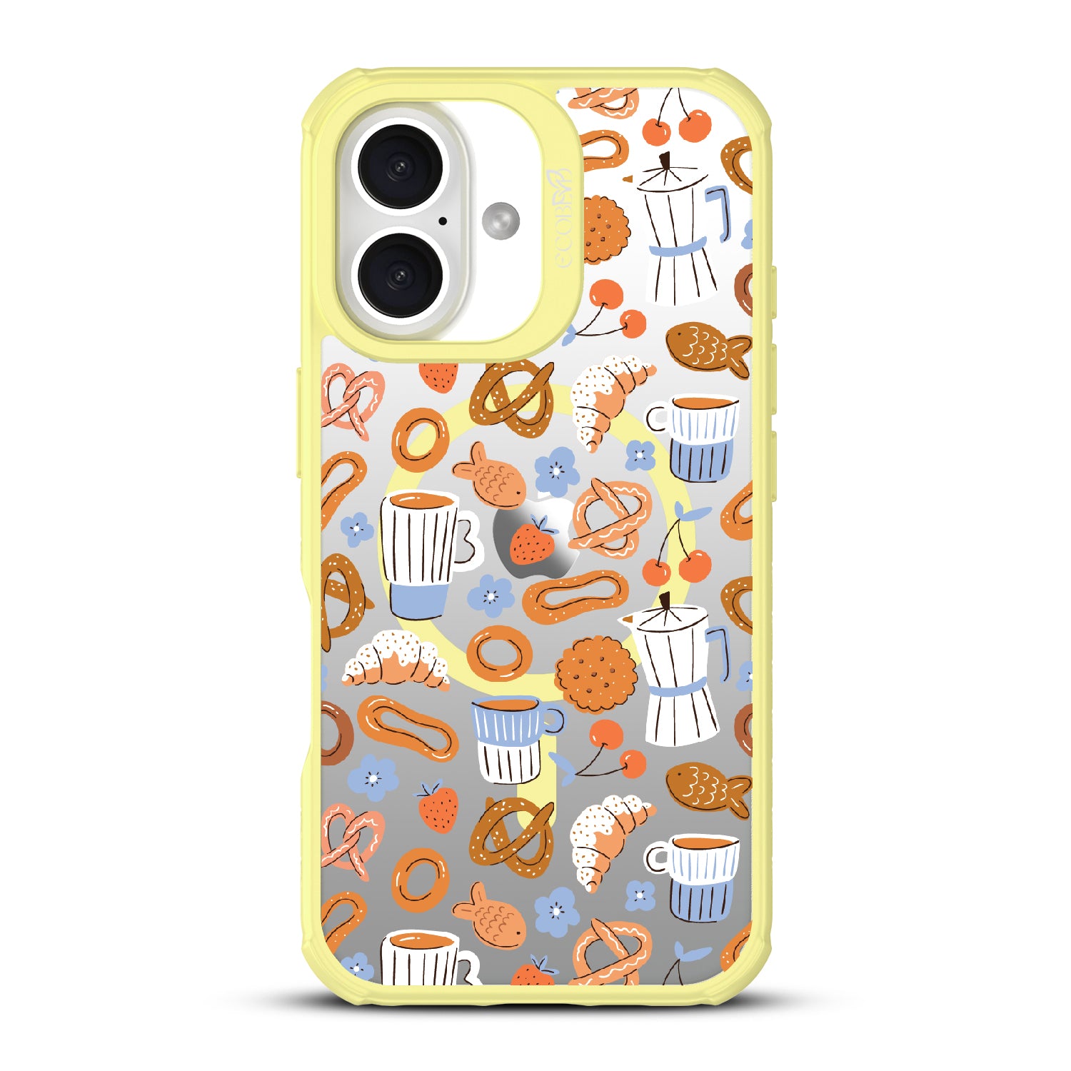 Welcome to The Breakfast Club, where looks are served. This design on our Revive clear iPhone 16 case brings together all your favorite brunch essentials—croissants, coffee, and pretzels. It’s the perfect club to kickstart your day, full of flavor, fun, and flair.