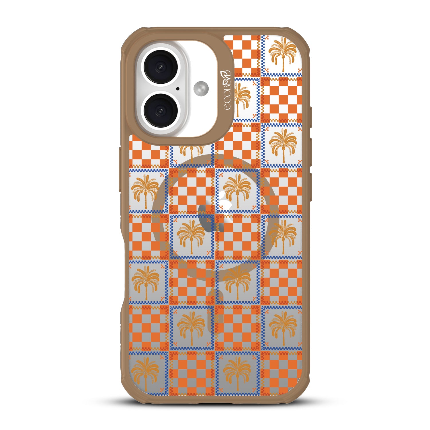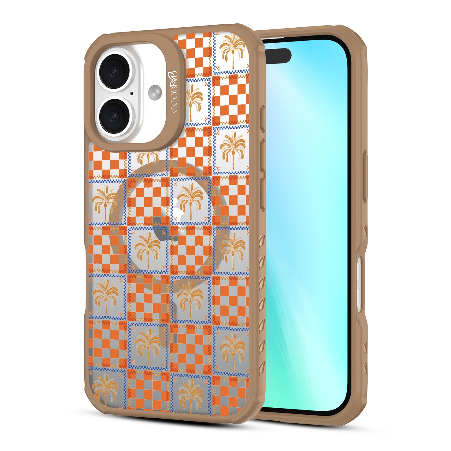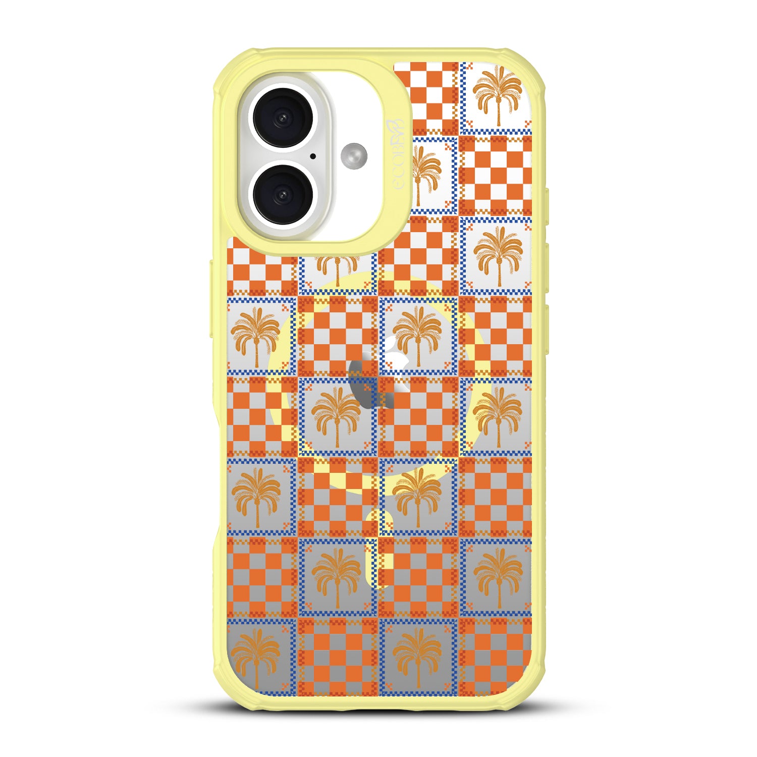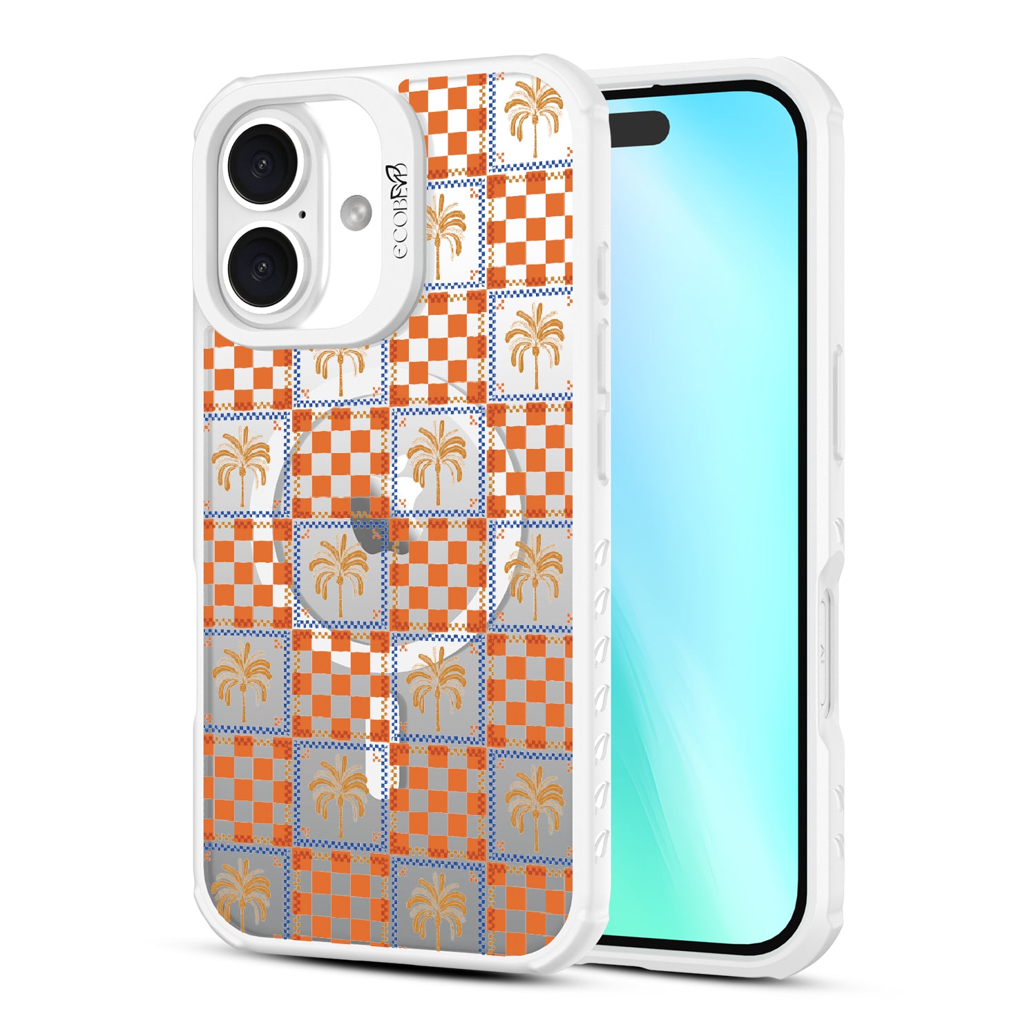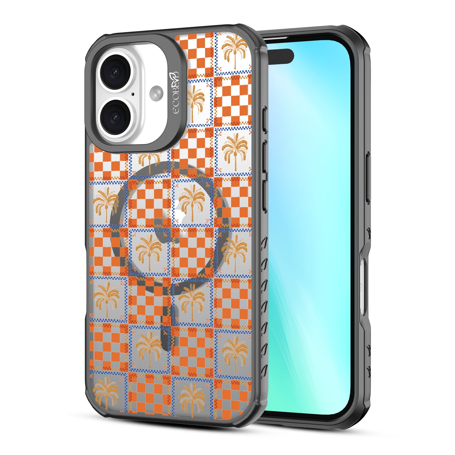 Relax and unwind with the Under The Palms design on our Revive clear iPhone 16, where the carefree spirit of palm trees meets the ageless appeal of checkerboard patterns. This design captures the essence of a retro beach getaway, combining classic style with a modern twist. Let your phone take you to a place where the sun shines brighter and the palms sway gently in the breeze.