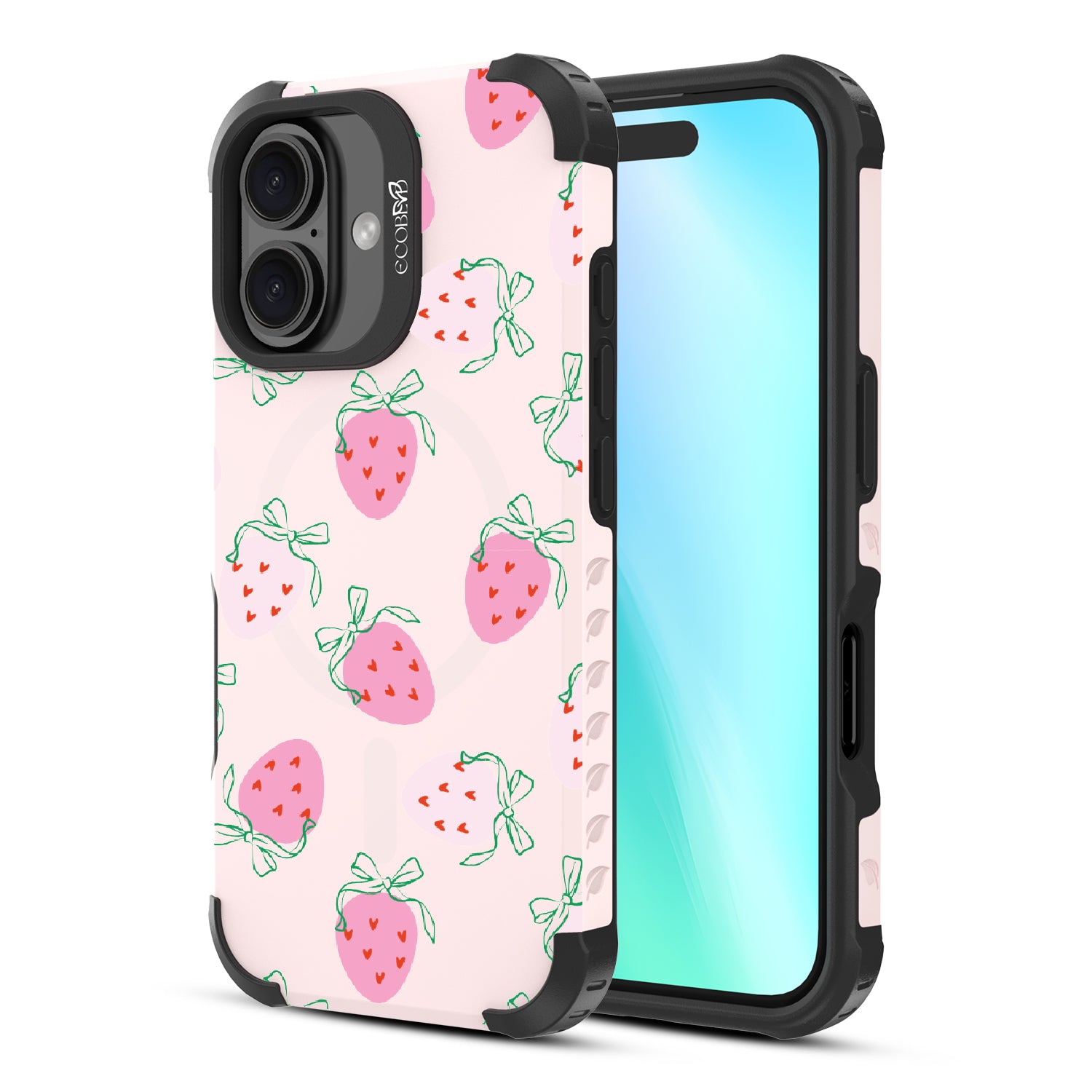 The Berry Cute design on our Reforge rugged iPhone 16 phone case lives up to its name with luscious strawberries and coquettish bows, giving your phone a picked-for-you look. This pattern brings a touch of playful femininity, perfect for any coquette girl. Sweeten things up and show off a truly juicy style. Grab the Berry Cute case and let your phone be the berry best!