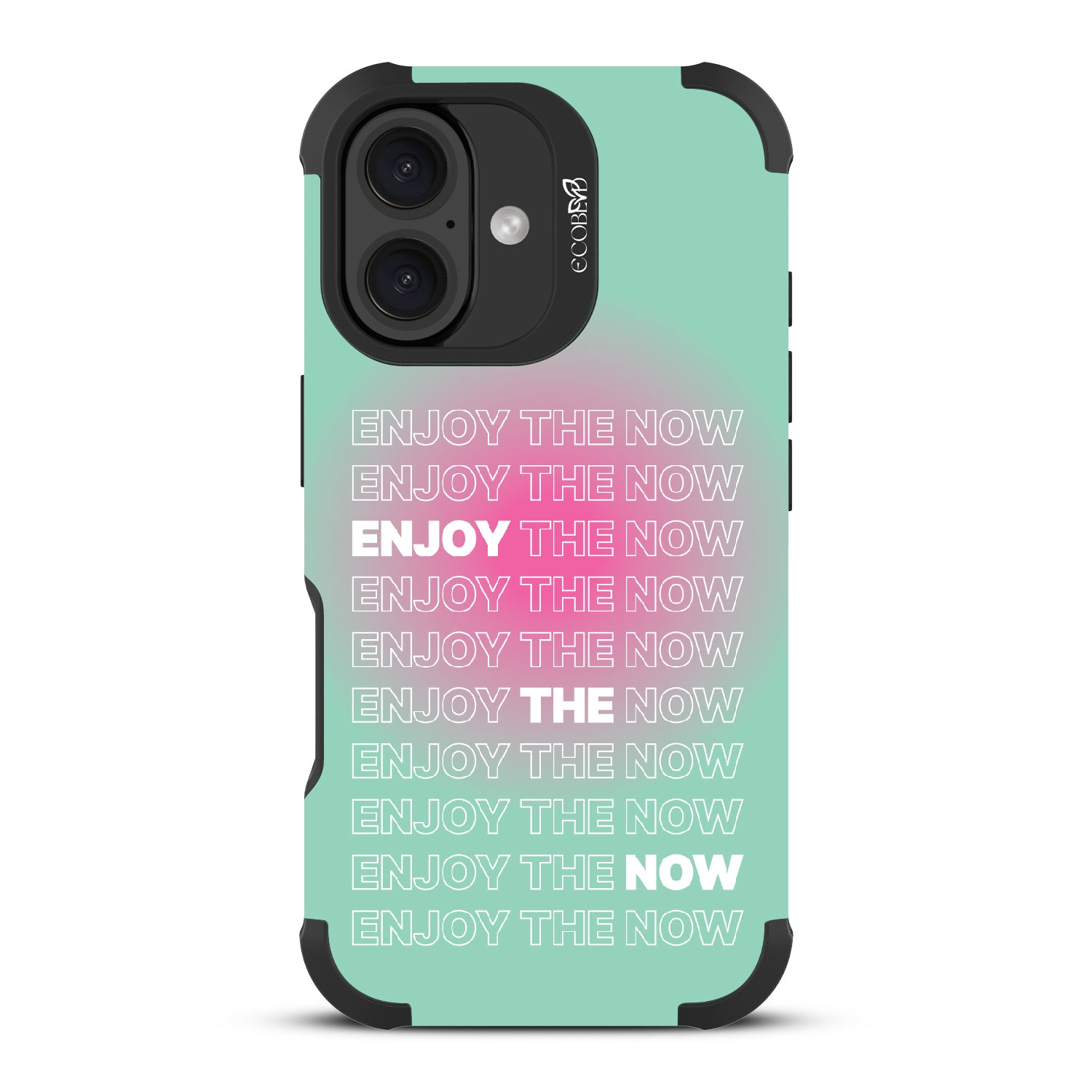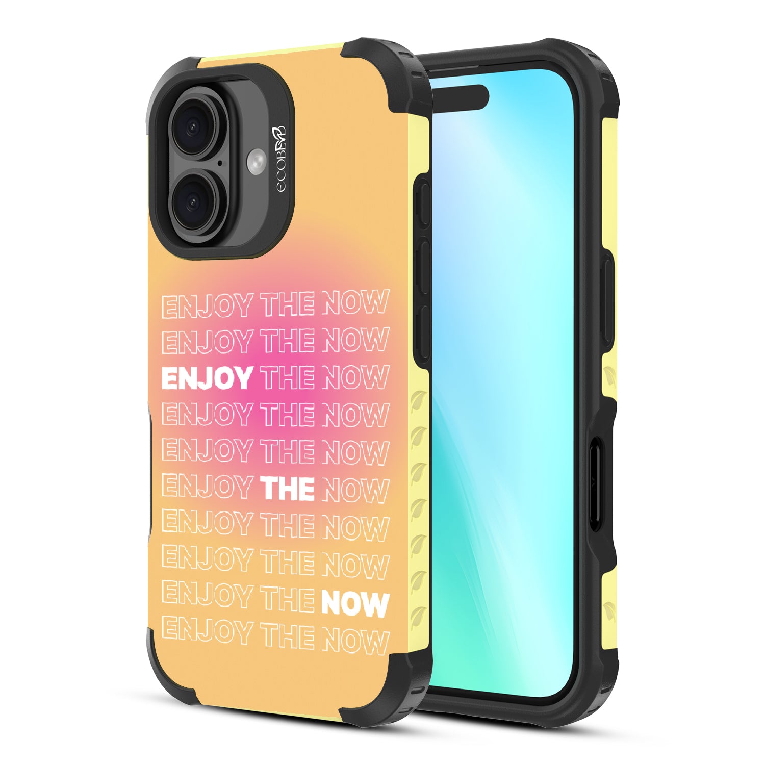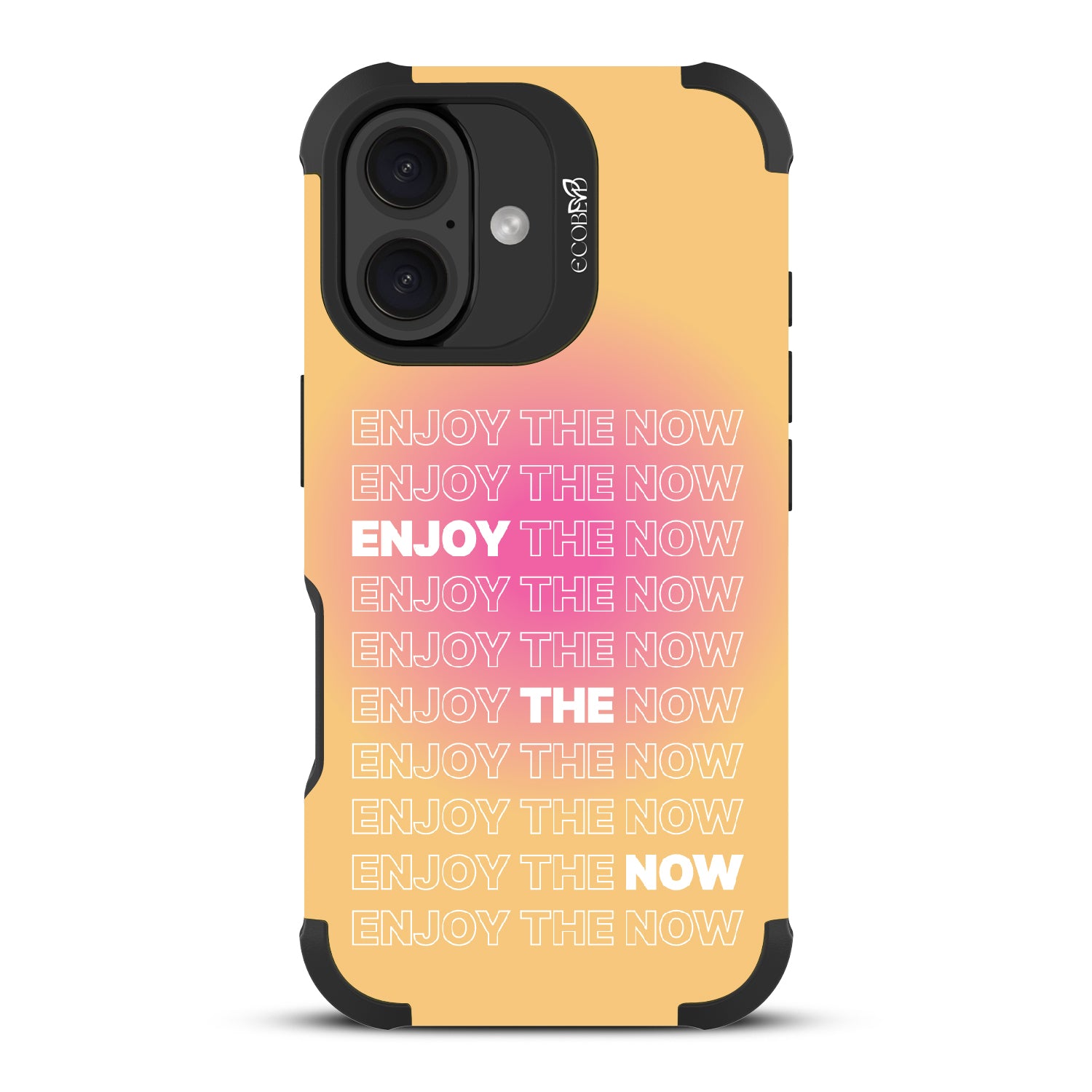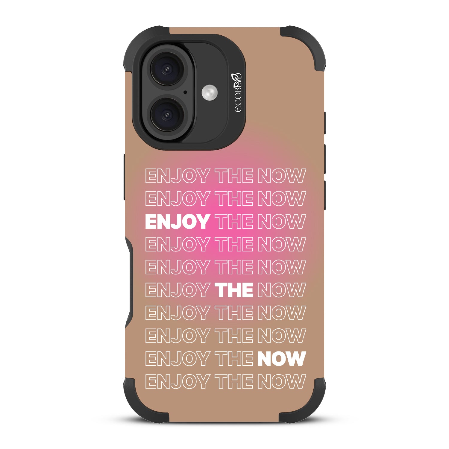 Begin each day with moments of pause from the Enjoy The Now design on our Reforge rugged iPhone 16 phone case. Invite the energy of the present moment into your day, encouraging intentional pauses for reflection and a wholehearted acceptance of your current state. This design is a daily reminder that each moment holds its unique beauty and significance.