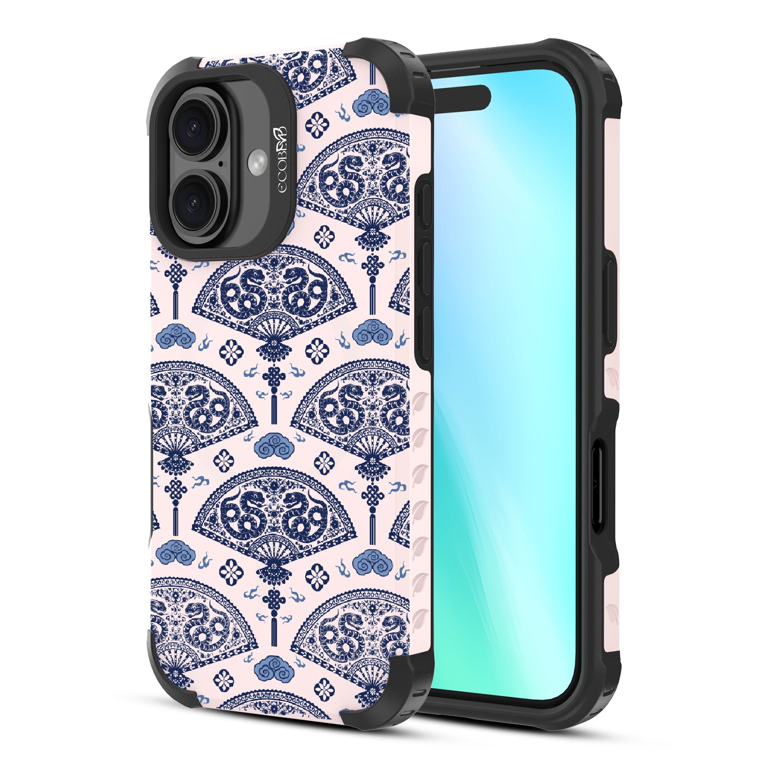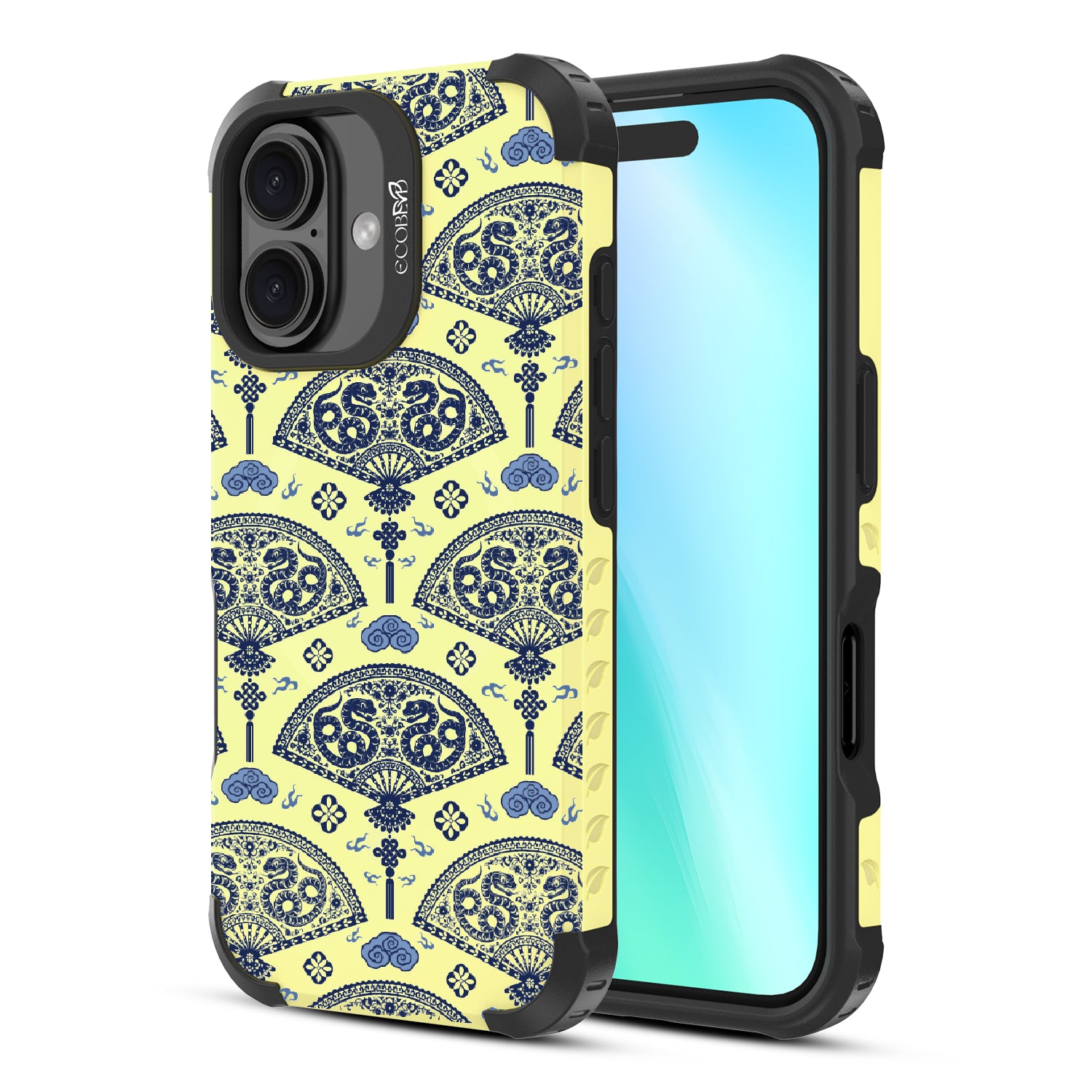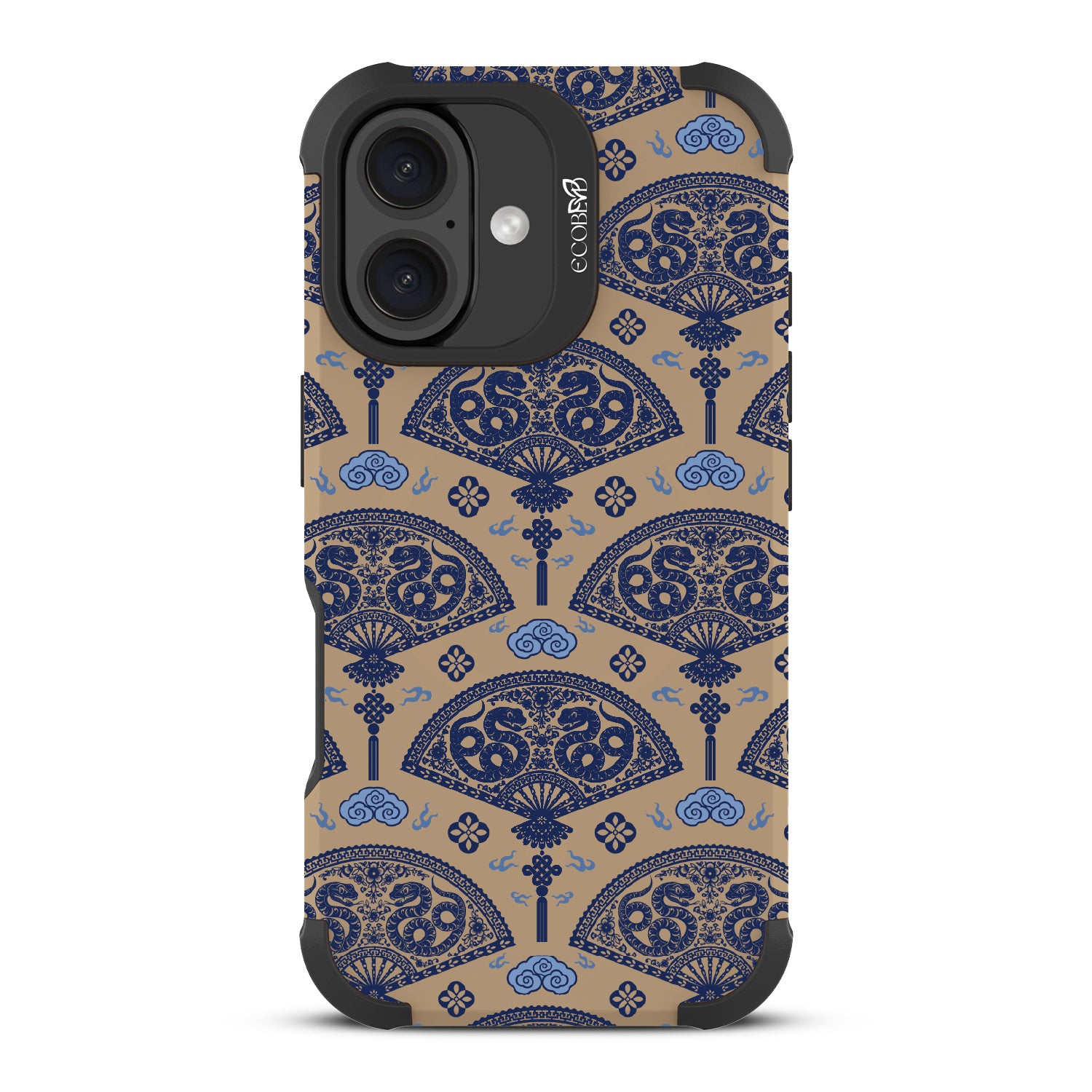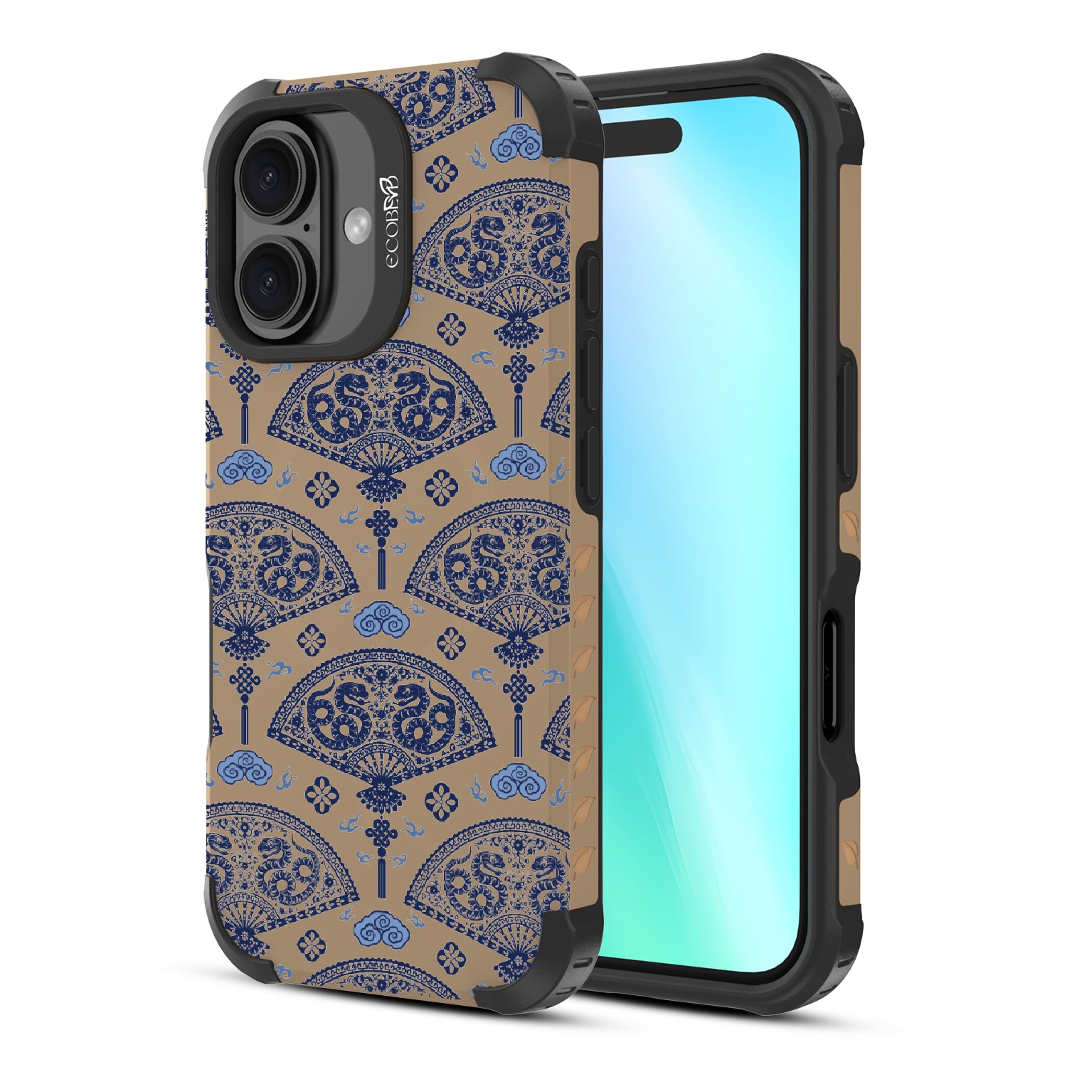 Let the winds of good fortune blow your way with the Fanning Fortune design on our Reforge rugged iPhone 16 phone case. Golden serpents coil through beautifully detailed fans, a symbol of protection and prosperity for the Year of the Snake. The blue and yellow hues reflect the harmony between calmness and vitality, setting the tone for a year filled with new opportunities and growth.